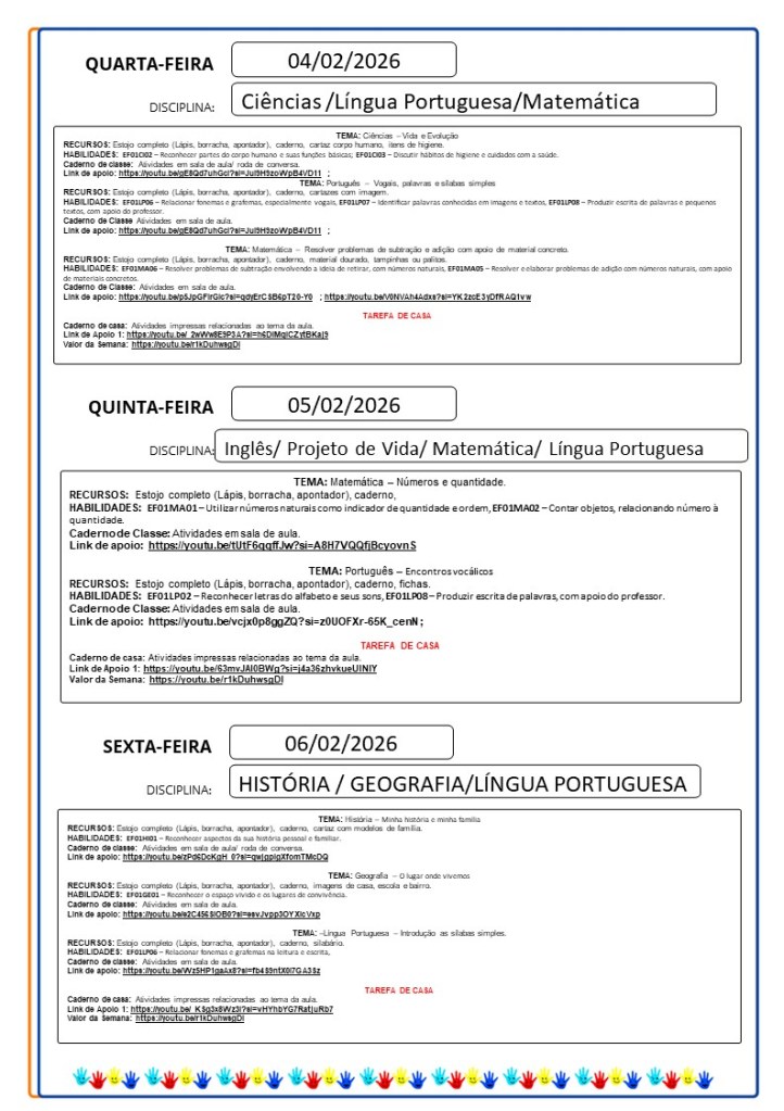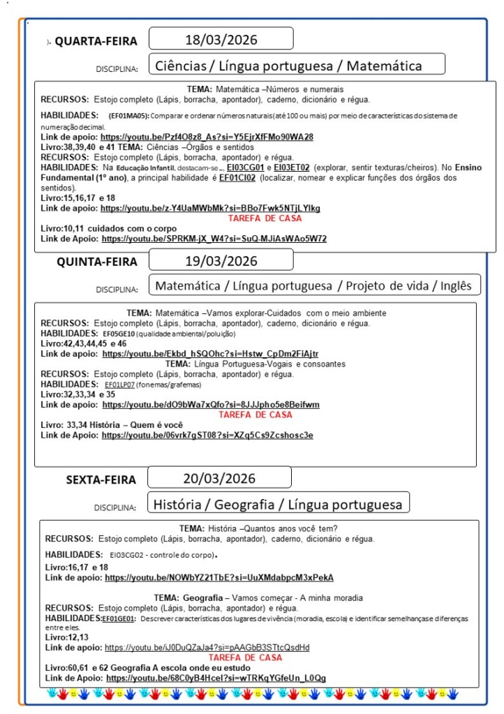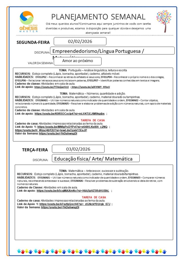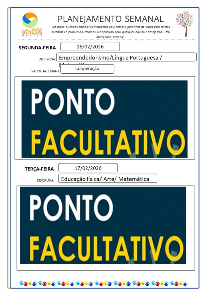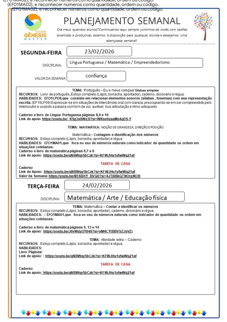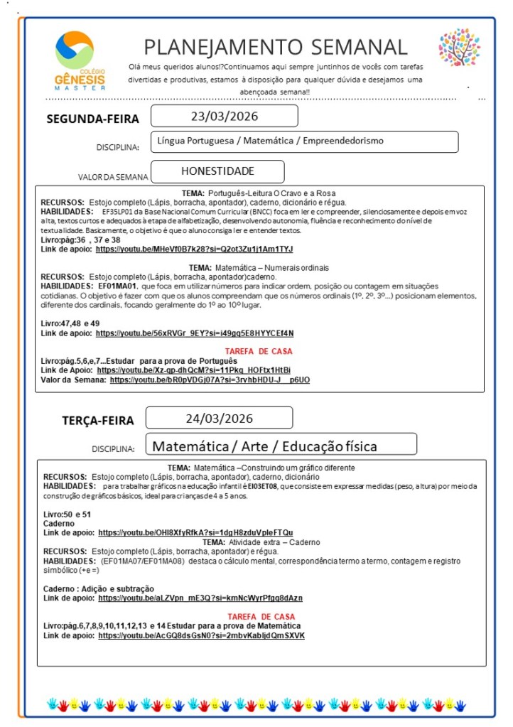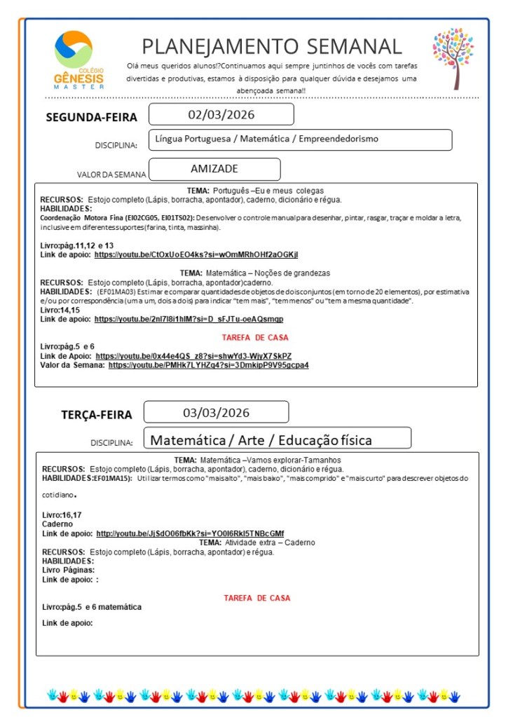 Continuamos aqui sempre juntinhos de vocês com tarefas divertidas e produtivas, estamos à disposição para qualquer dúvida e desejamos uma abençoada semana!!