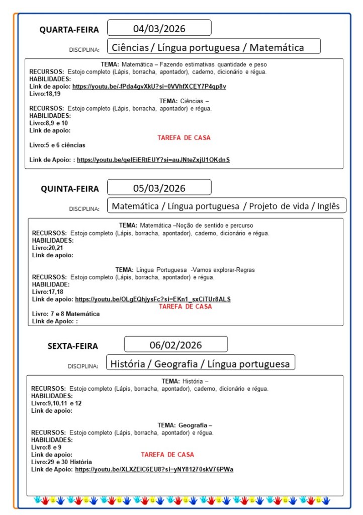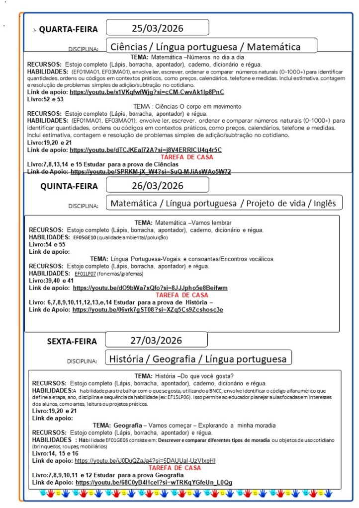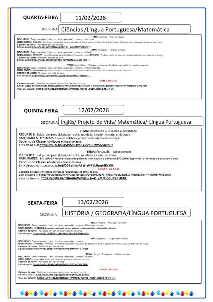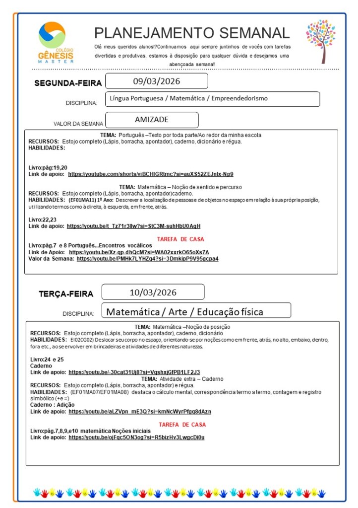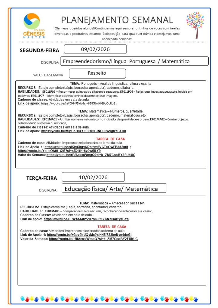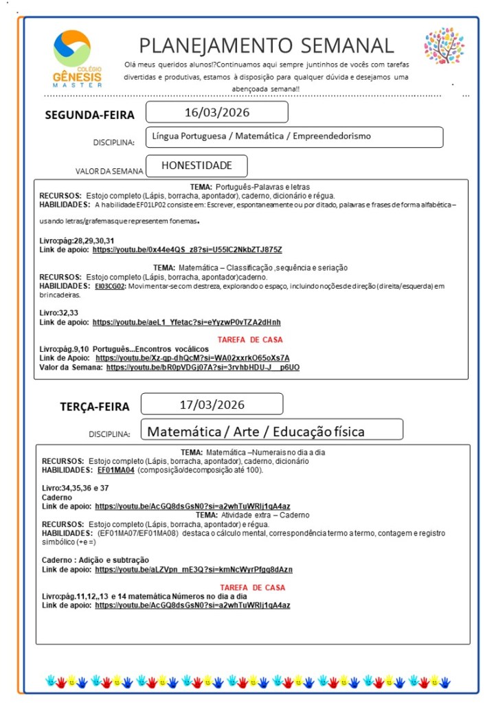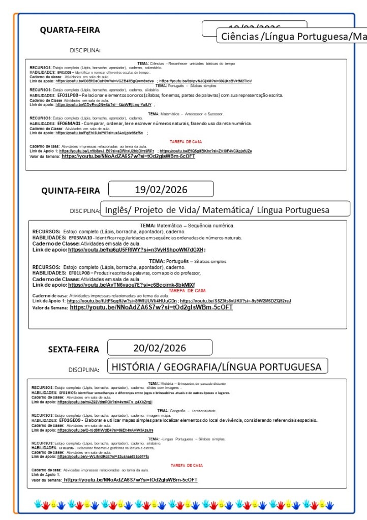 Continuamos aqui sempre juntinhos de vocês com tarefas divertidas e produtivas, estamos à disposição para qualquer dúvida e desejamos uma abençoada semana!!