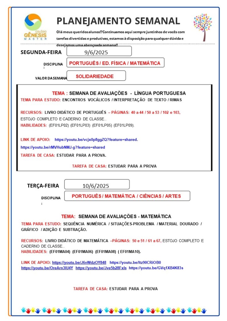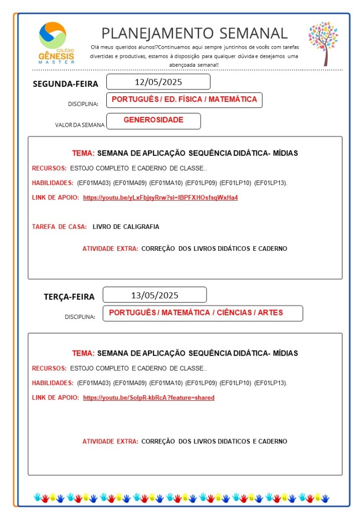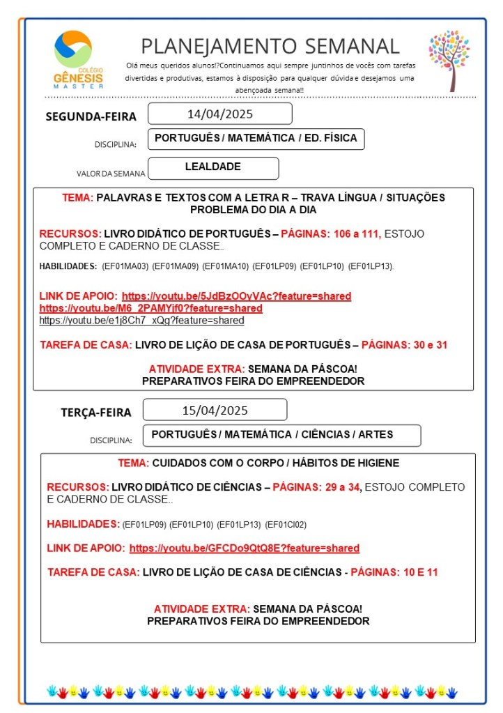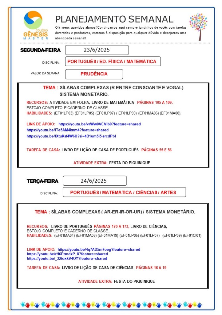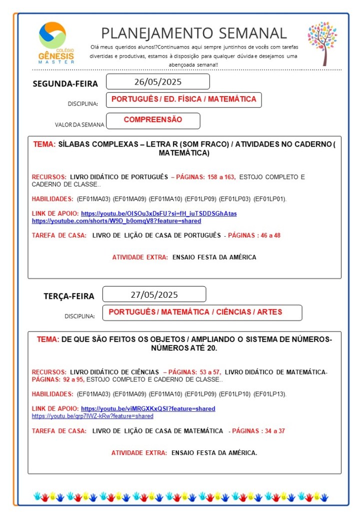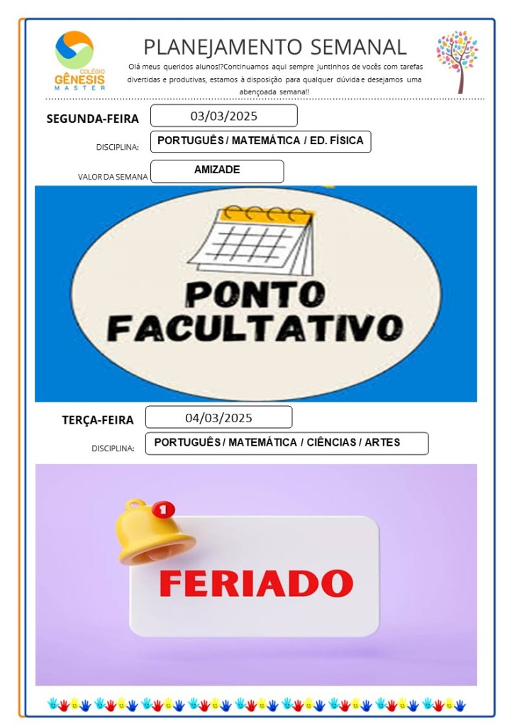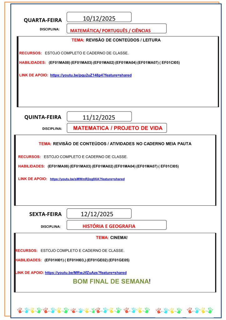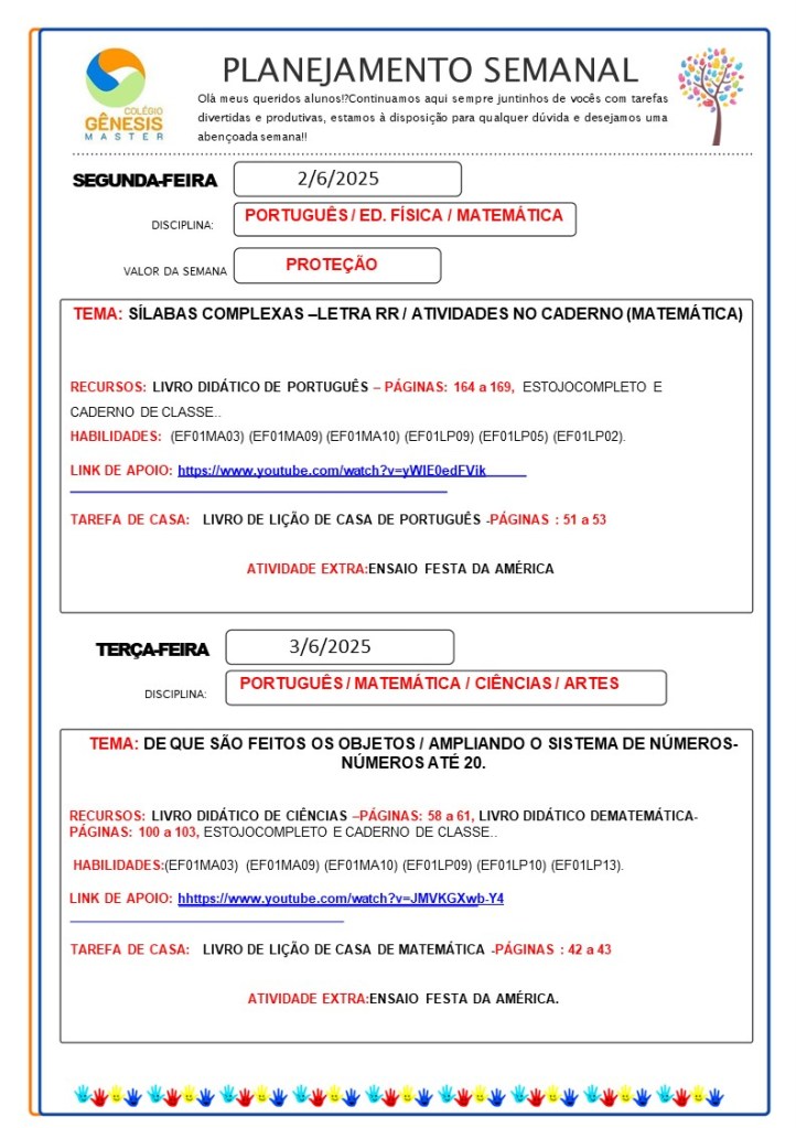 Continuamos aqui sempre juntinhos de vocês com tarefas divertidas e produtivas, estamos à disposição para qualquer dúvida e desejamos uma abençoada semana!!