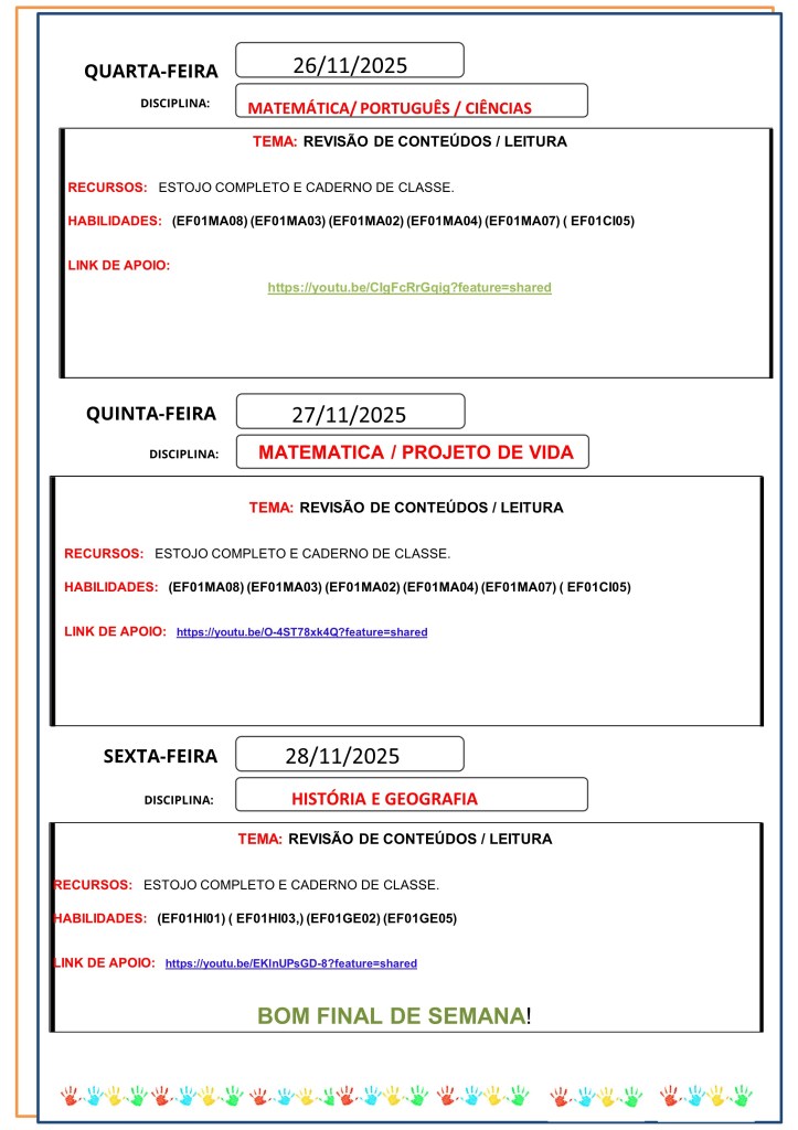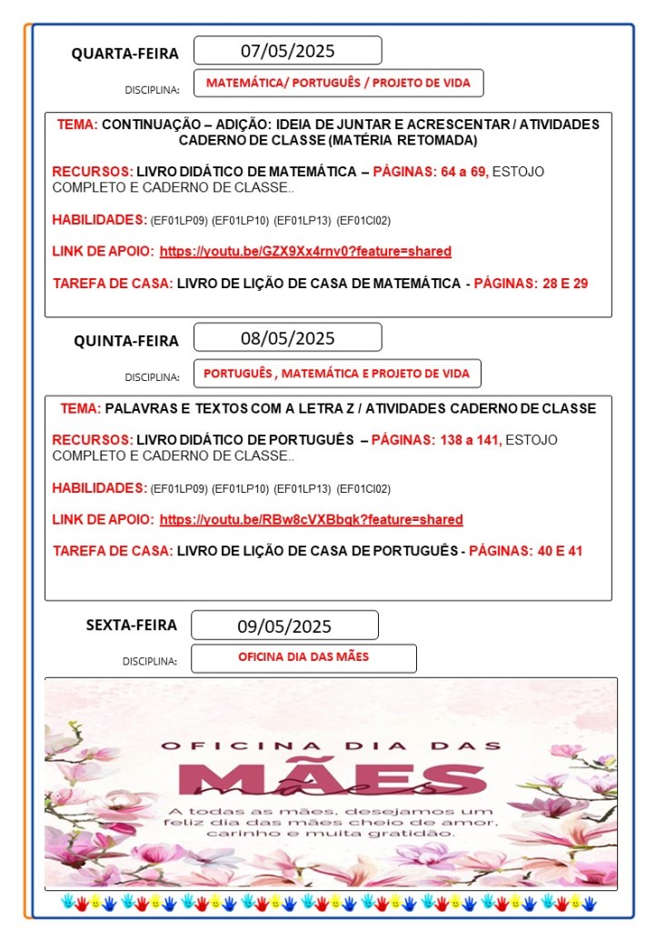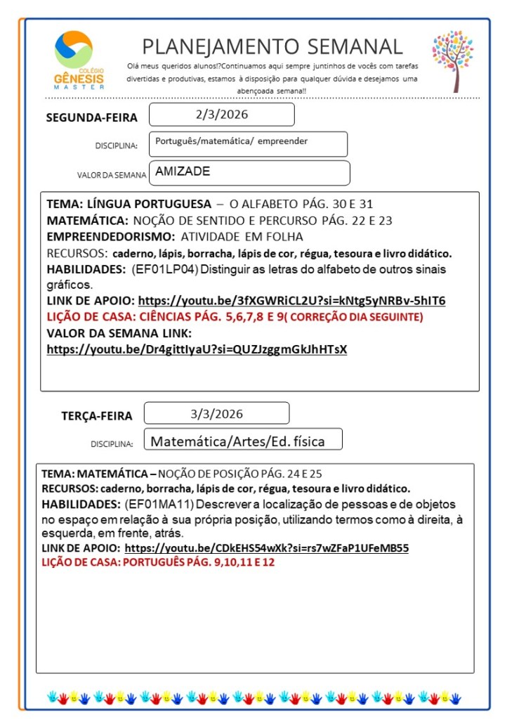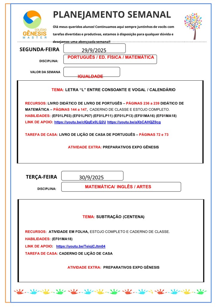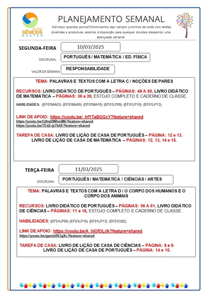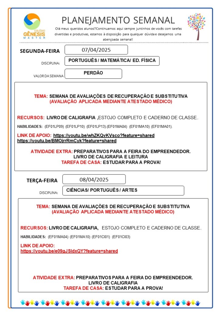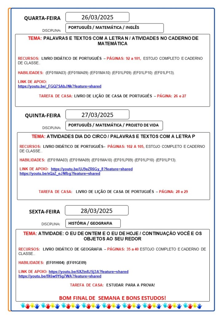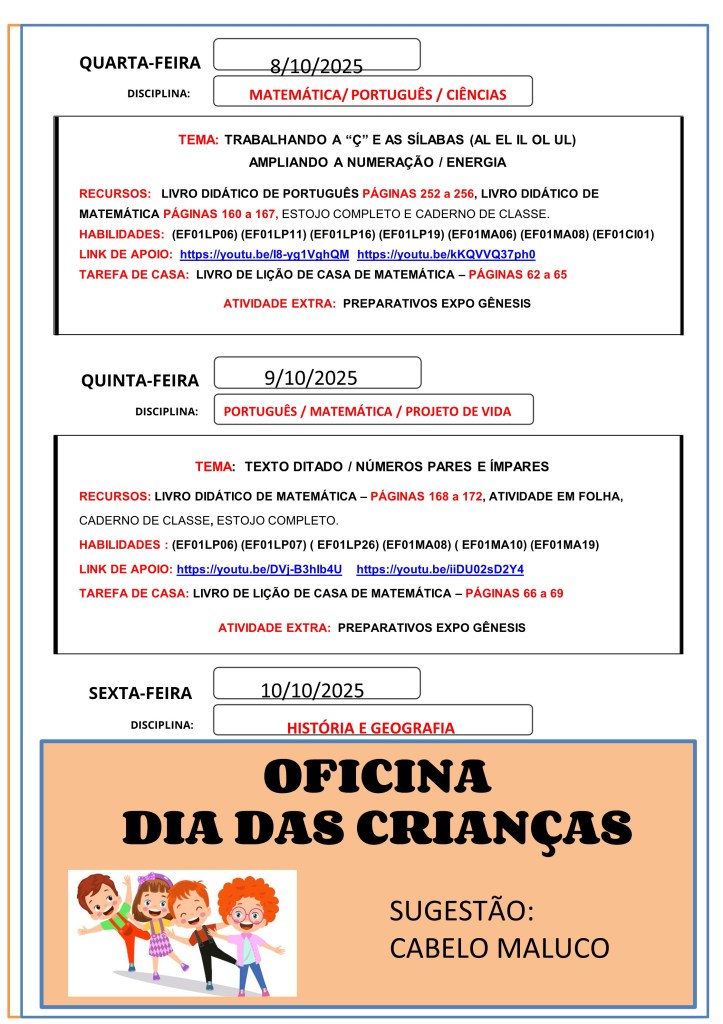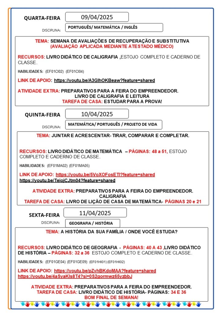 Continuamos aqui sempre juntinhos de vocês com tarefas divertidas e produtivas, estamos à disposição para qualquer dúvida e desejamos uma abençoada semana!!