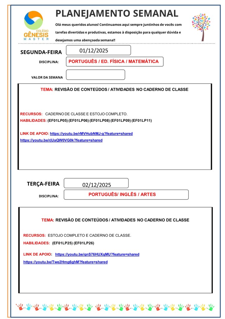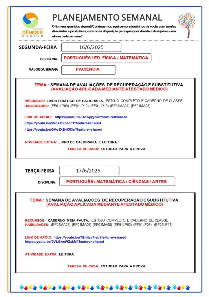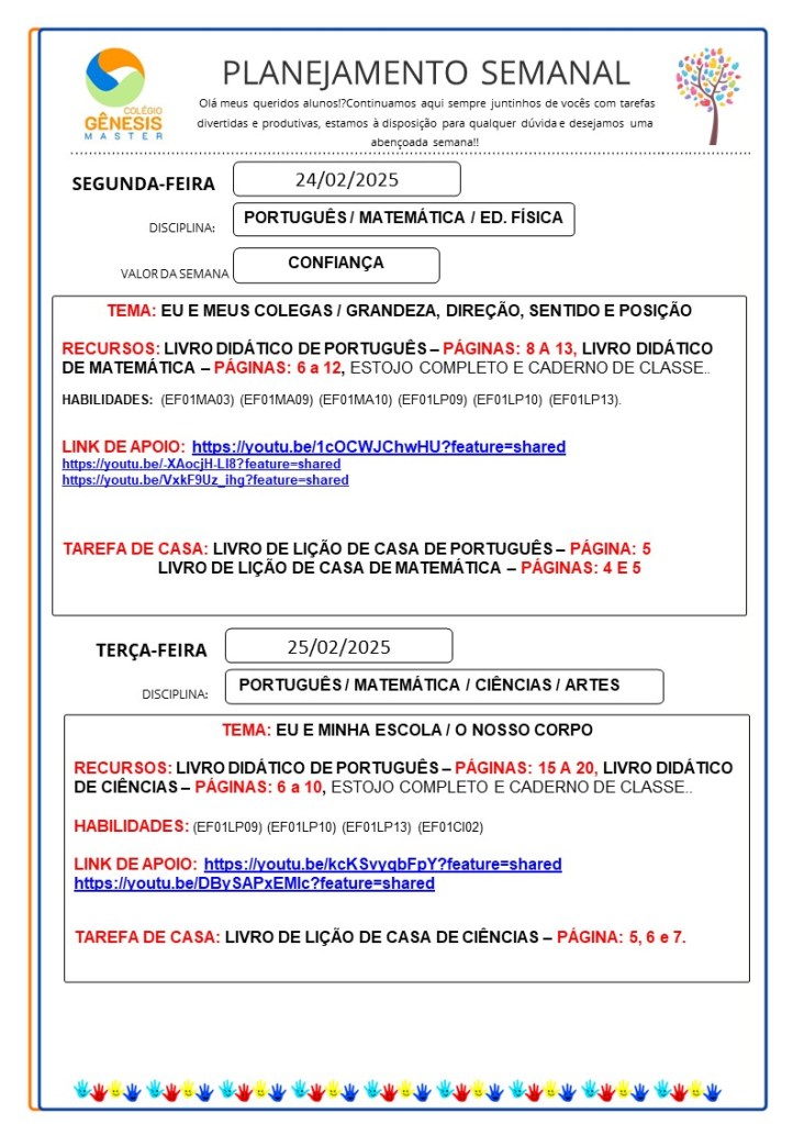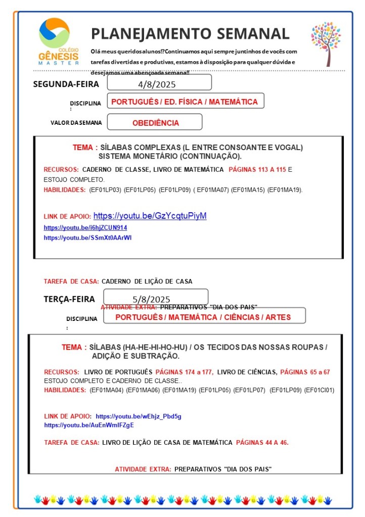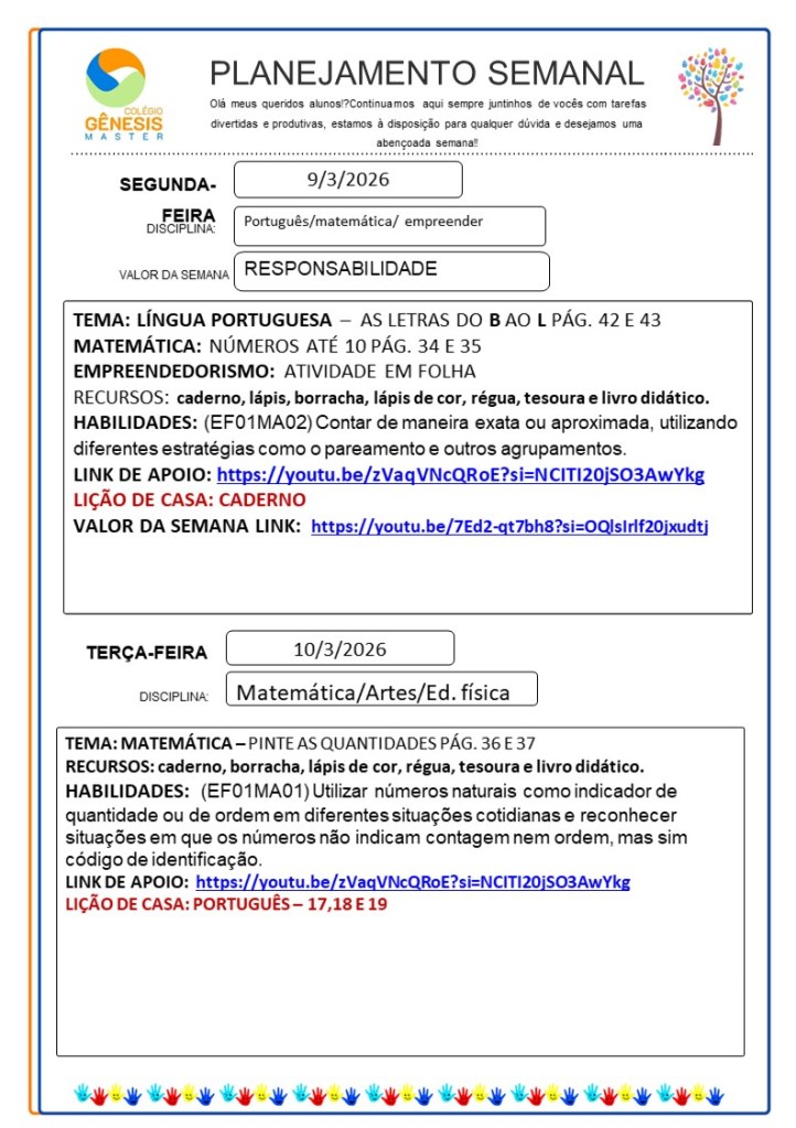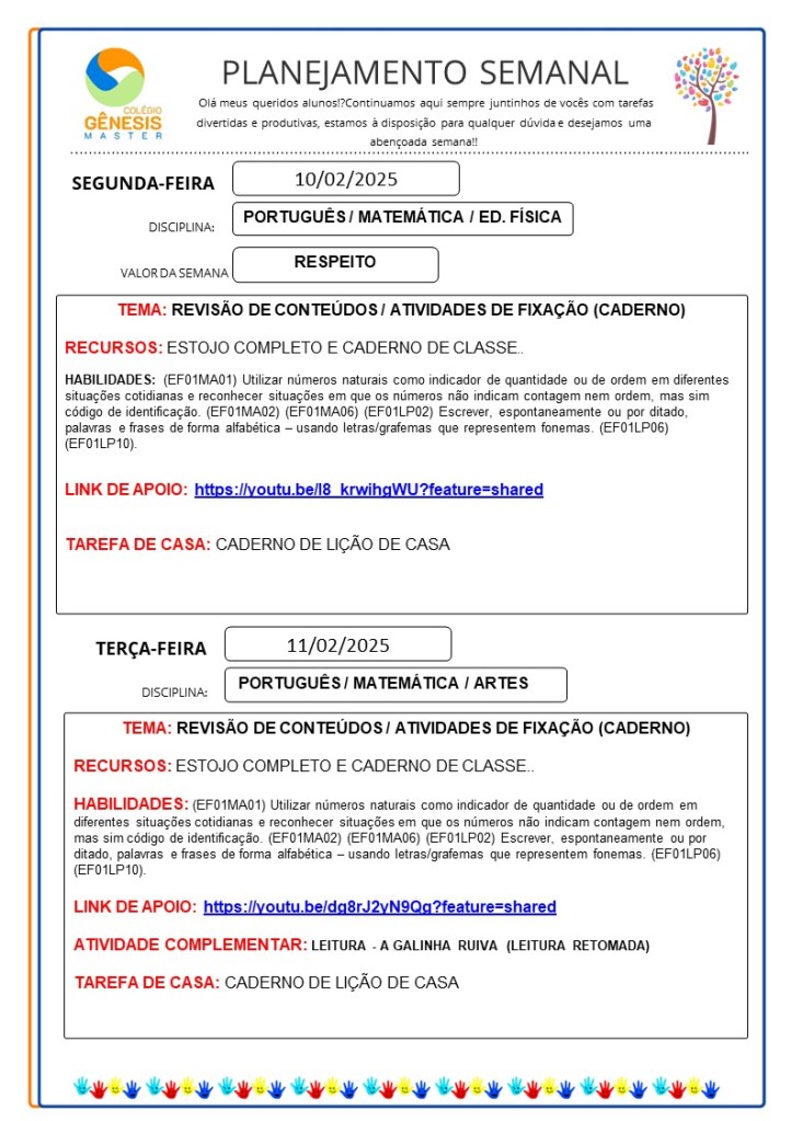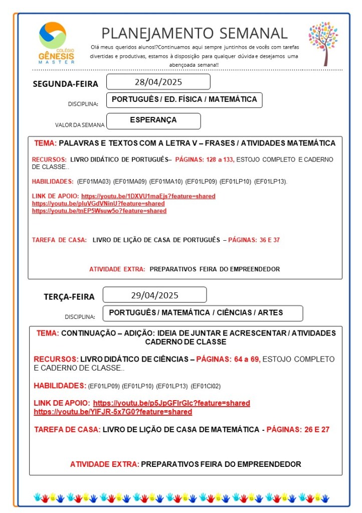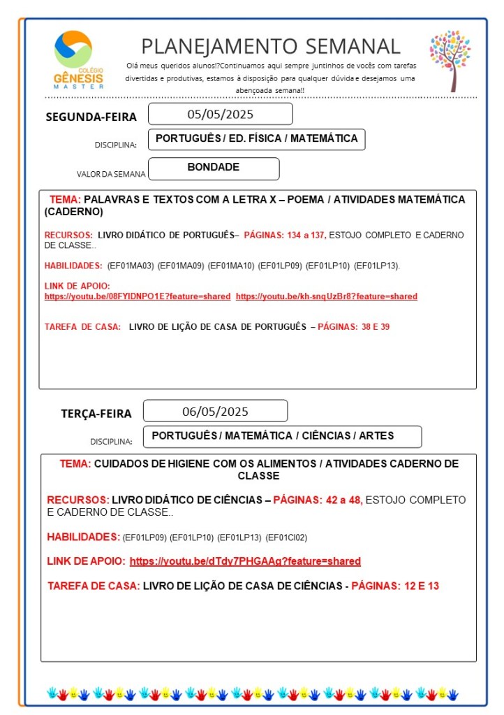 Continuamos aqui sempre juntinhos de vocês com tarefas divertidas e produtivas, estamos à disposição para qualquer dúvida e desejamos uma abençoada semana!!