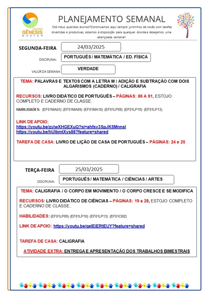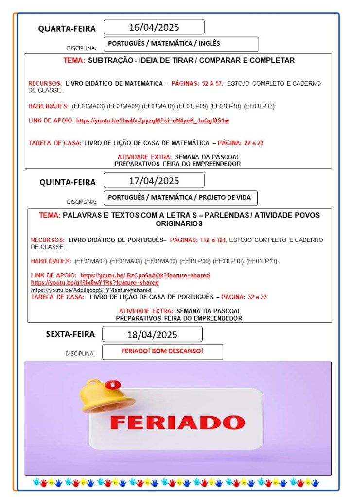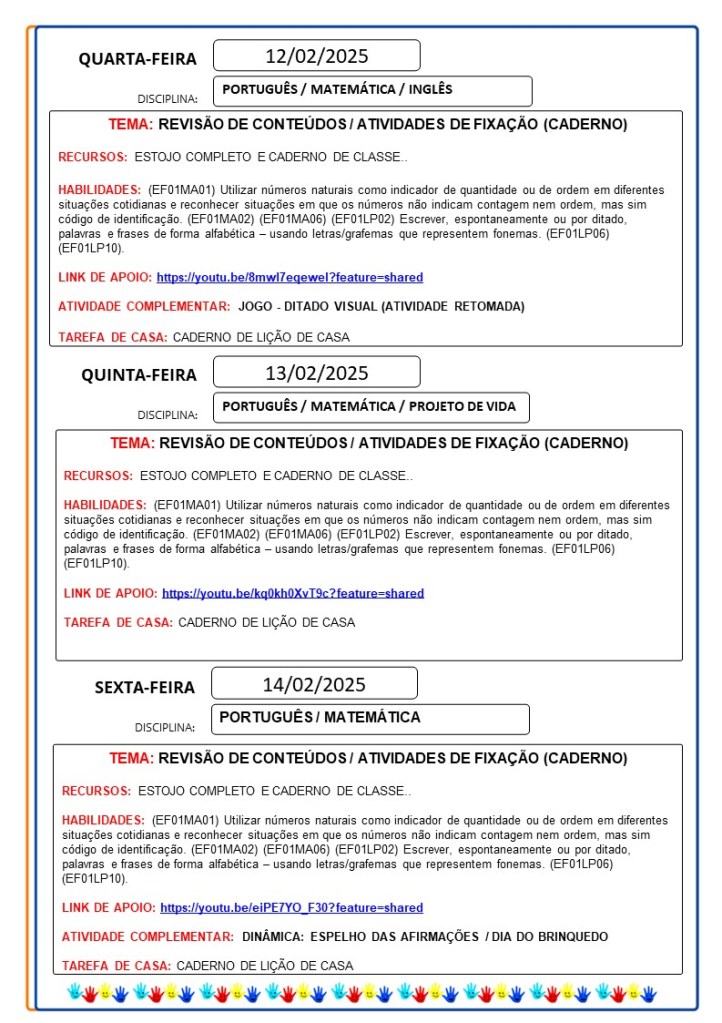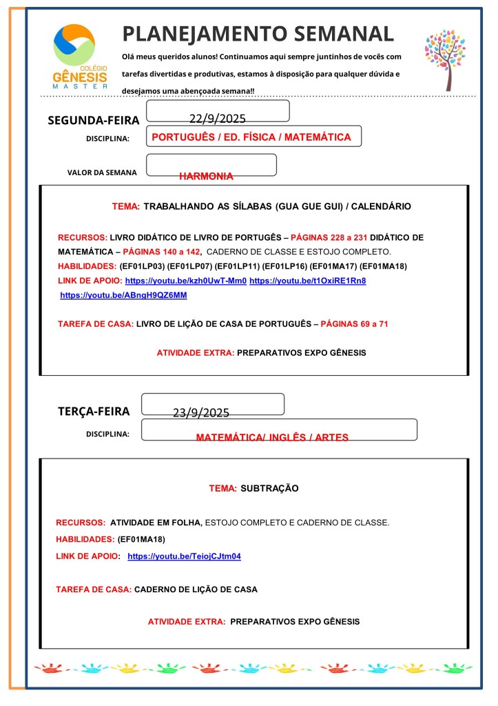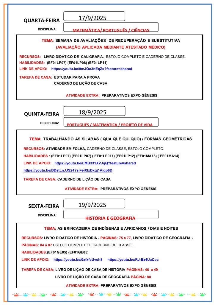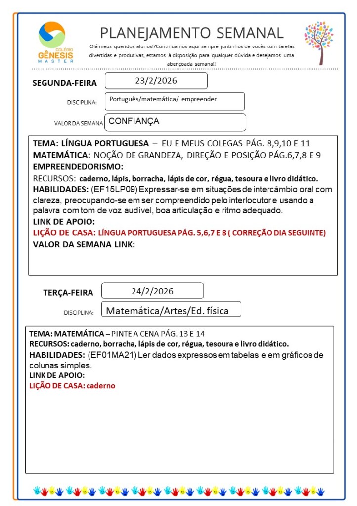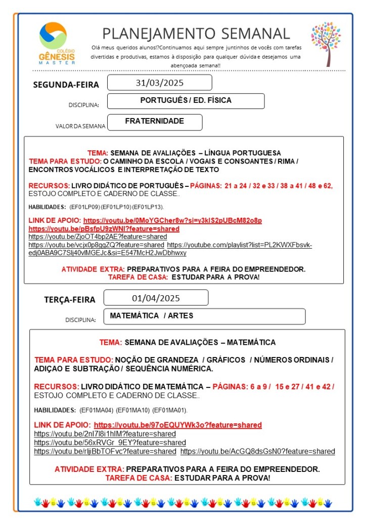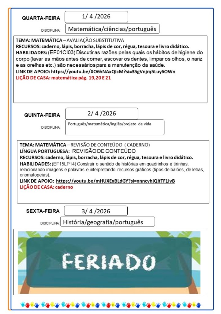Continuamos aqui sempre juntinhos de vocês com tarefas divertidas e produtivas, estamos à disposição para qualquer dúvida e desejamos uma abençoada semana!!