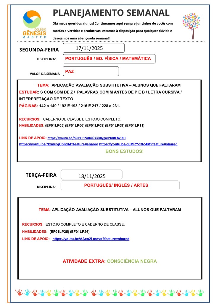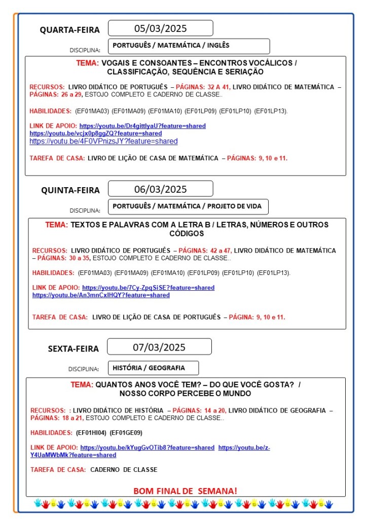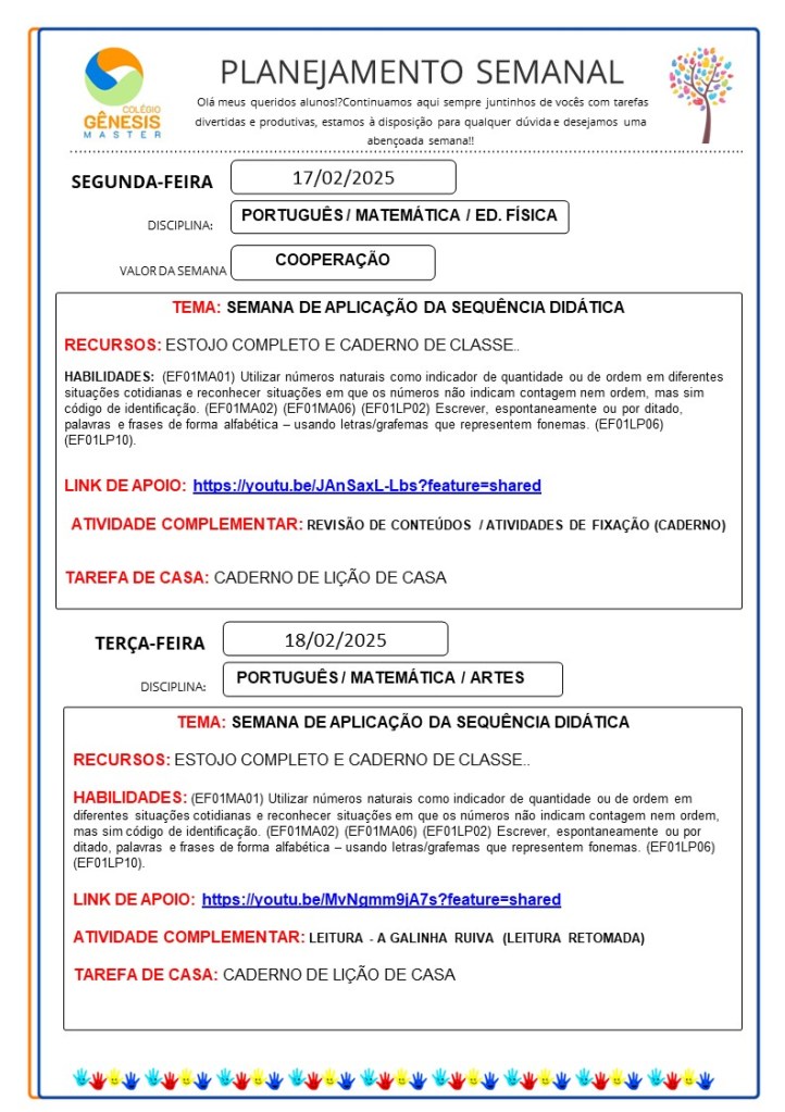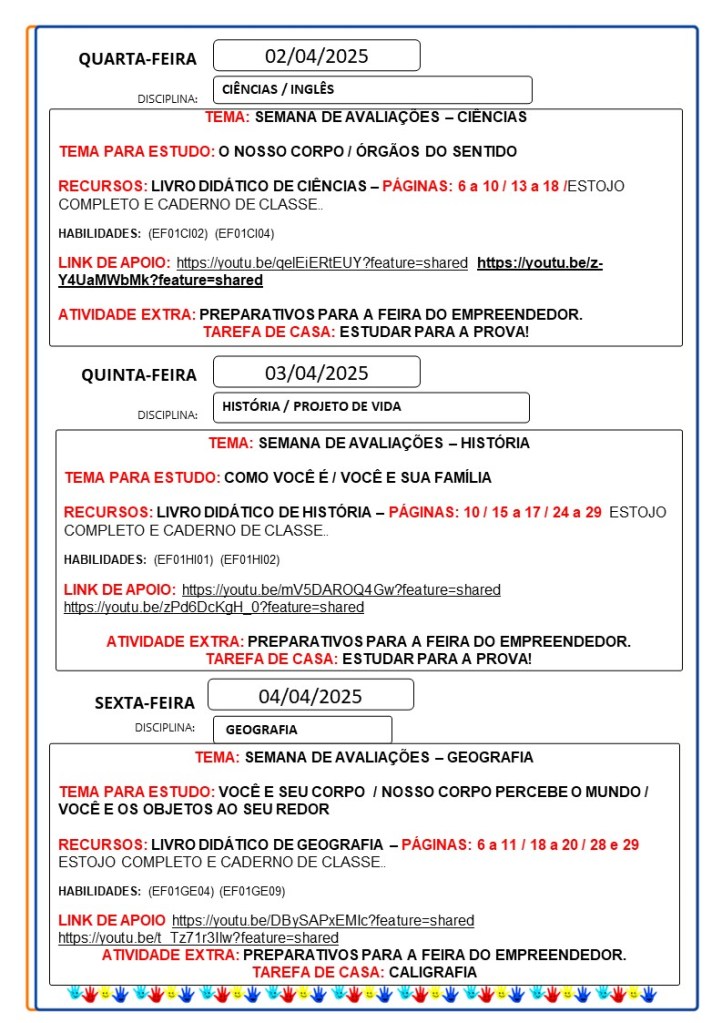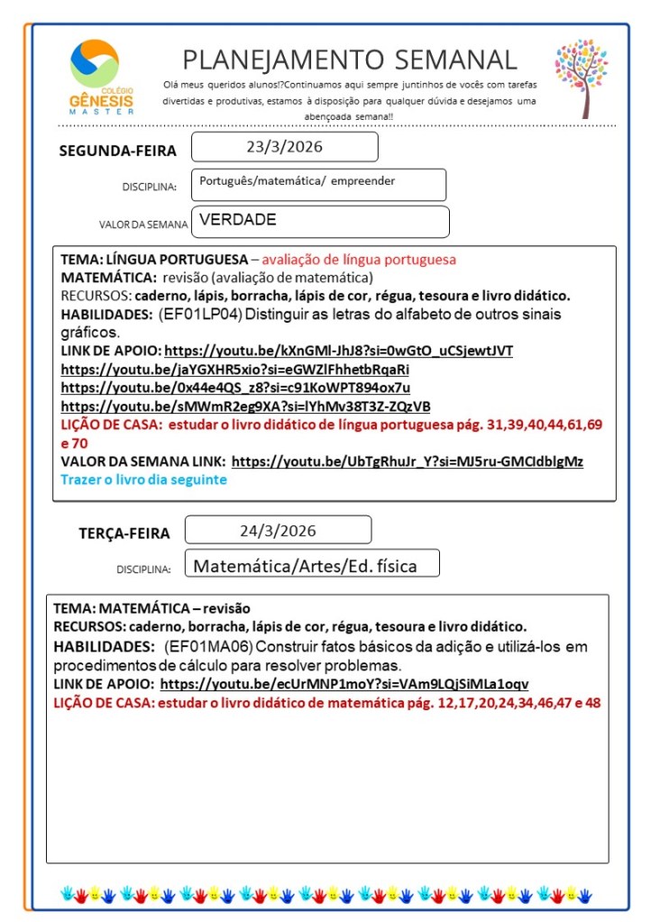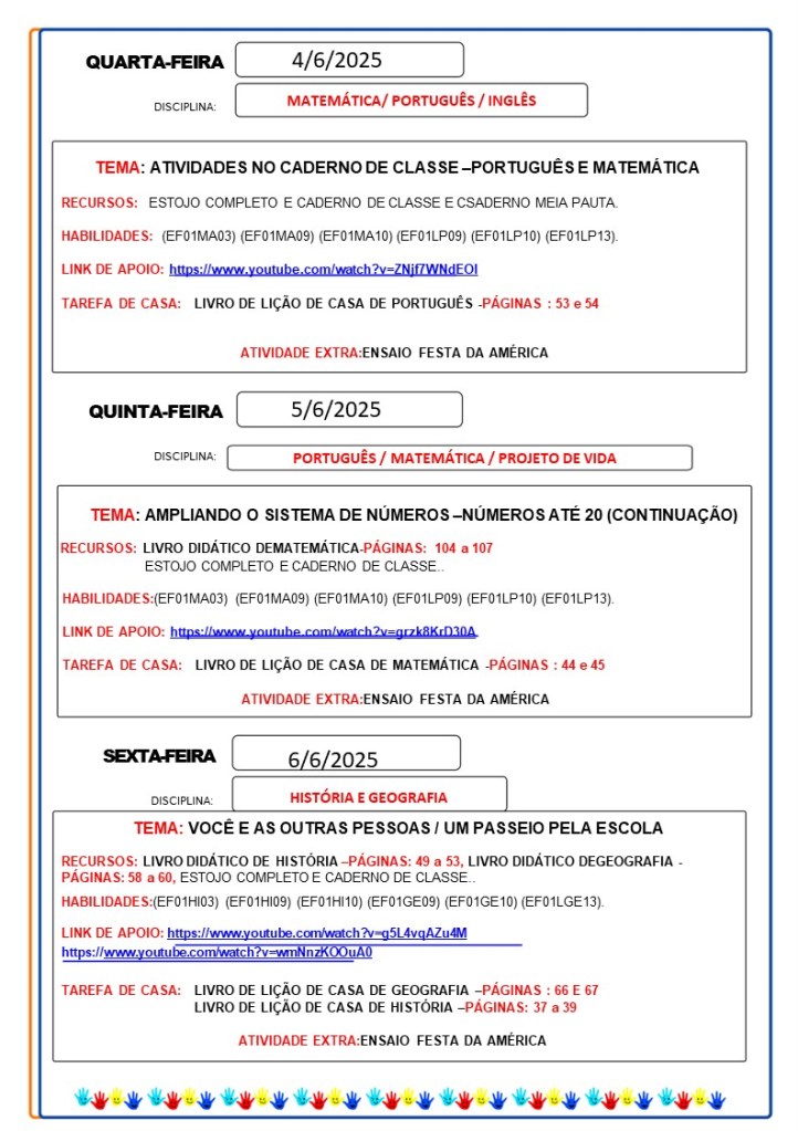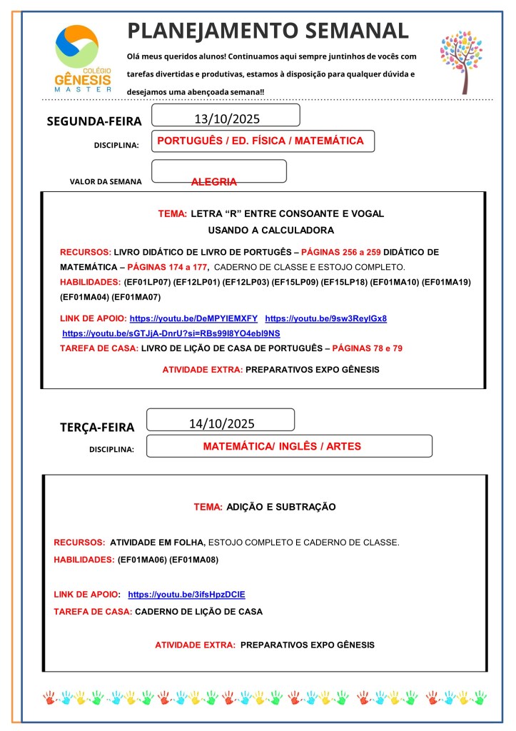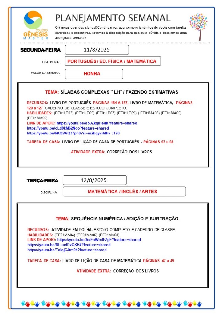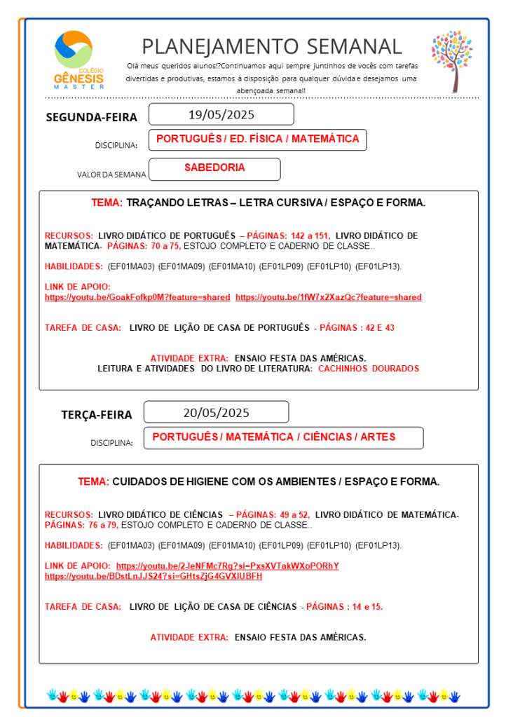Continuamos aqui sempre juntinhos de vocês com tarefas divertidas e produtivas, estamos à disposição para qualquer dúvida e desejamos uma abençoada semana!!