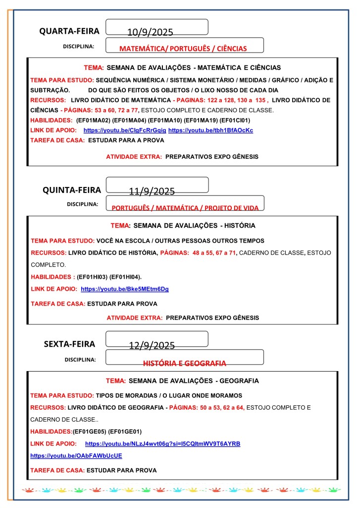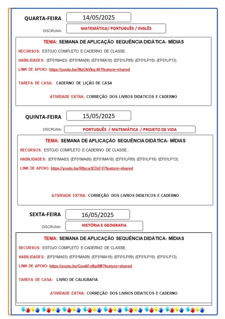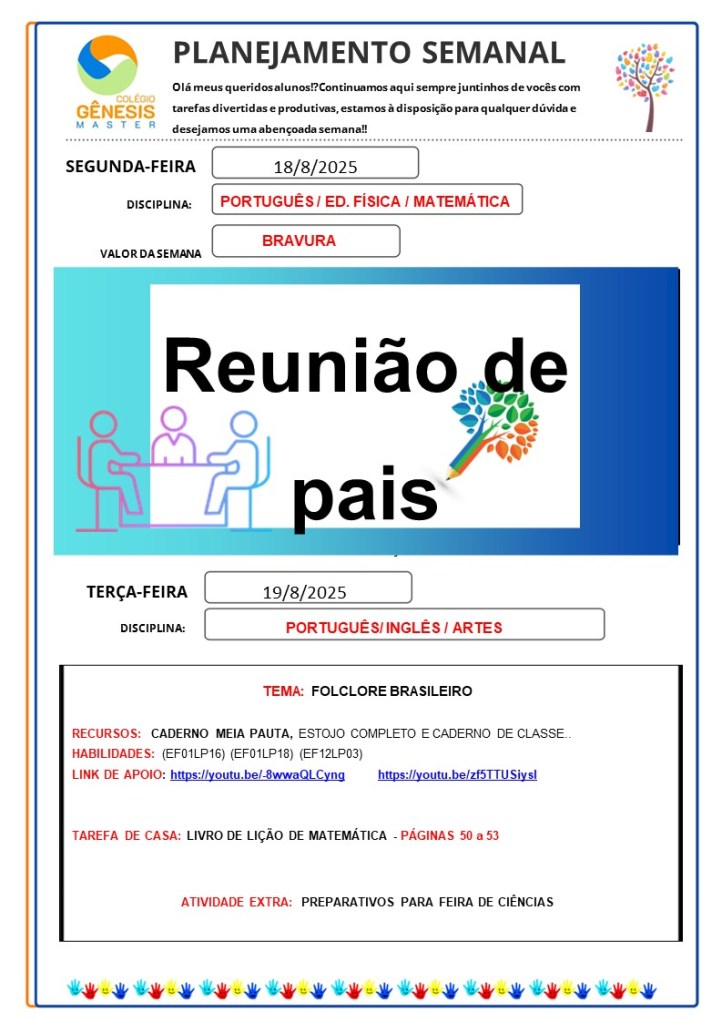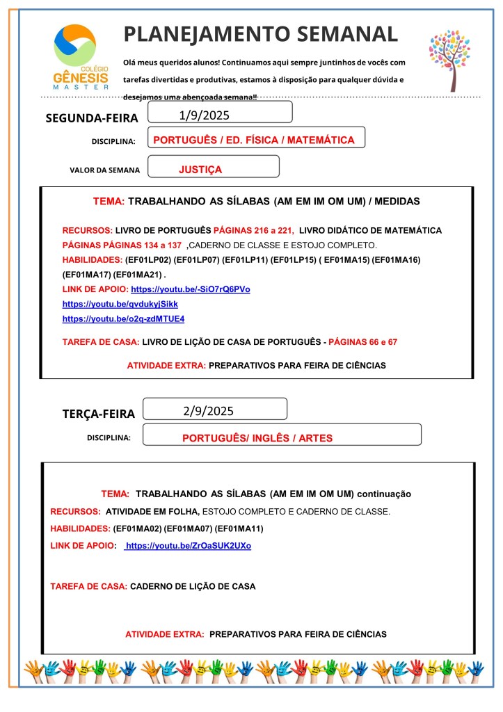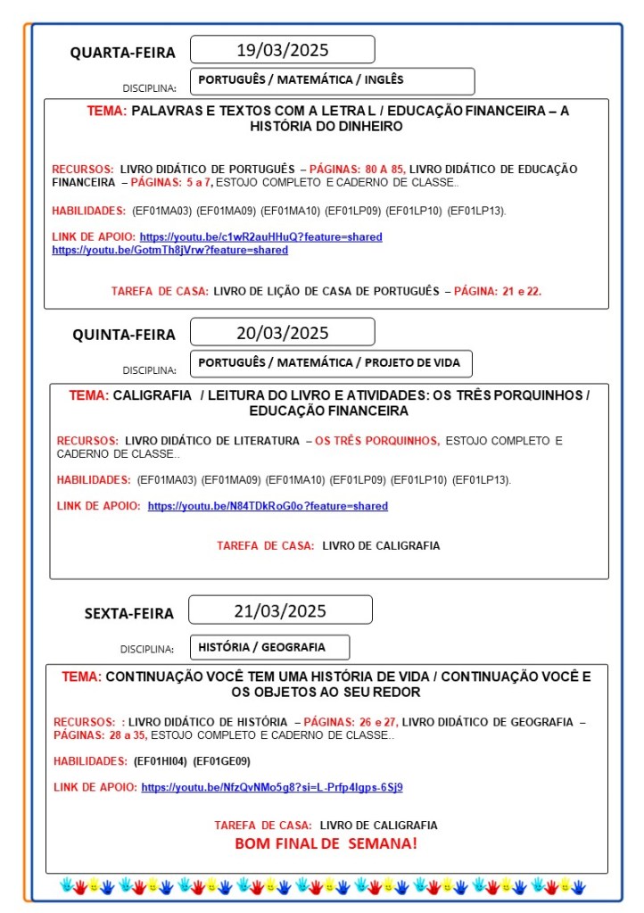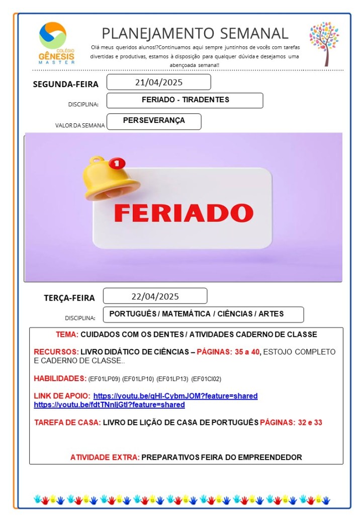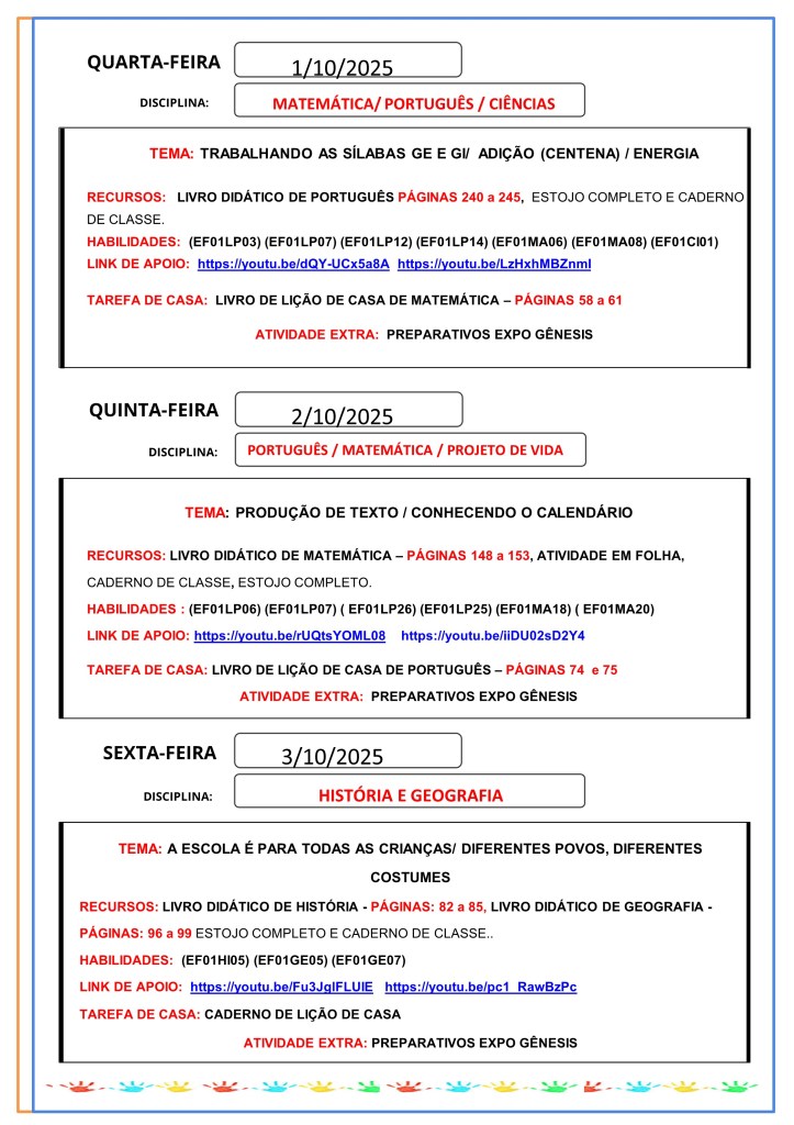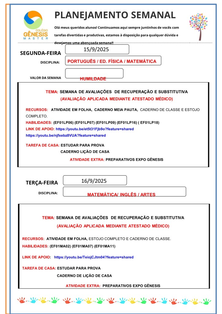 Continuamos aqui sempre juntinhos de vocês com tarefas divertidas e produtivas, estamos à disposição para qualquer dúvida e desejamos uma abençoada semana!!