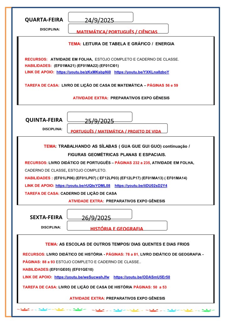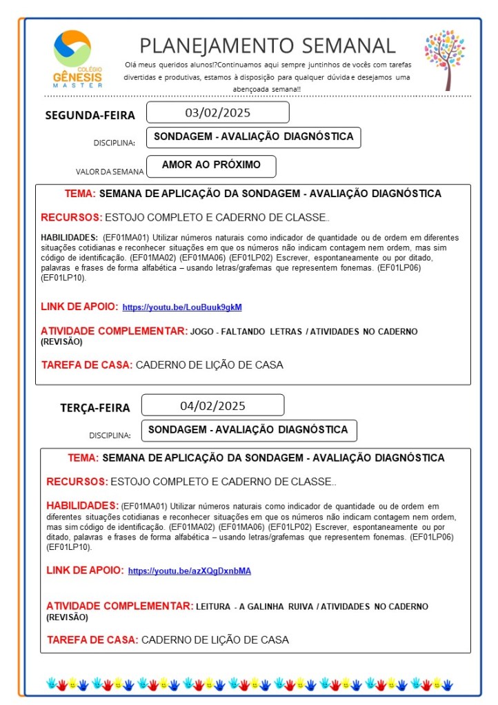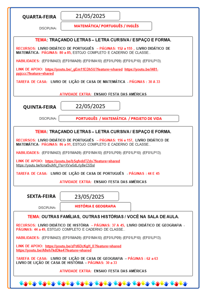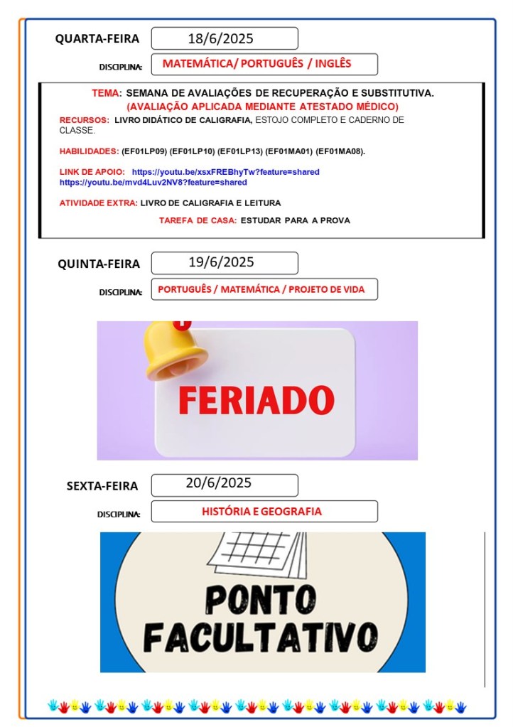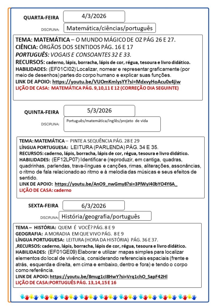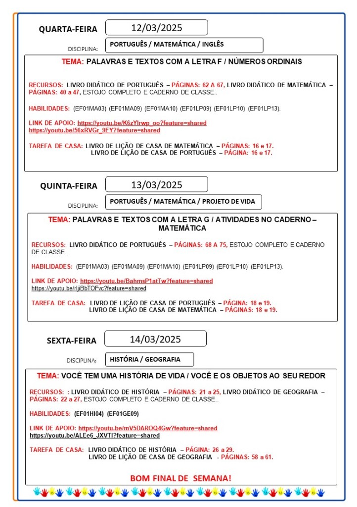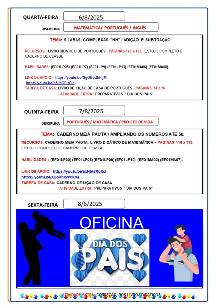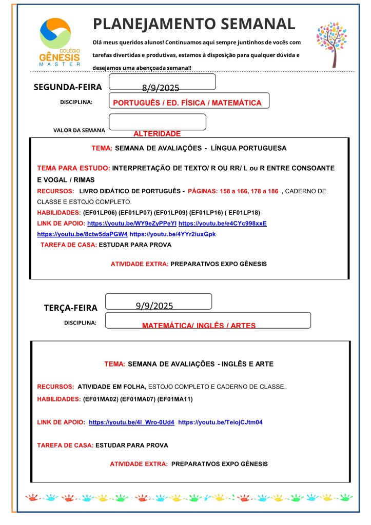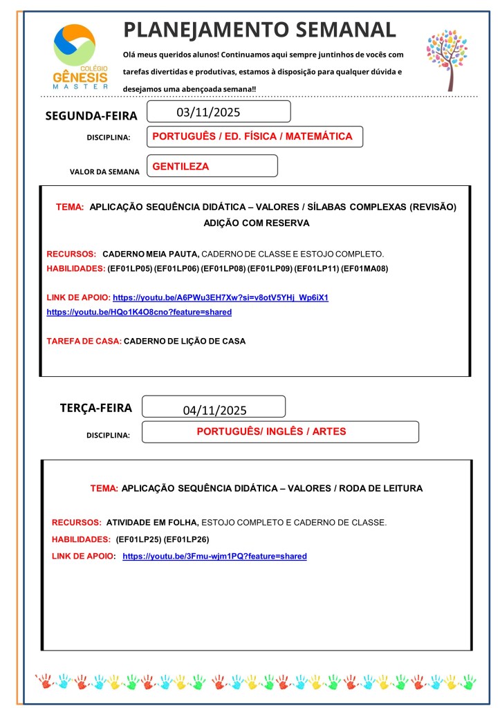Continuamos aqui sempre juntinhos de vocês com tarefas divertidas e produtivas, estamos à disposição para qualquer dúvida e desejamos uma abençoada semana!!