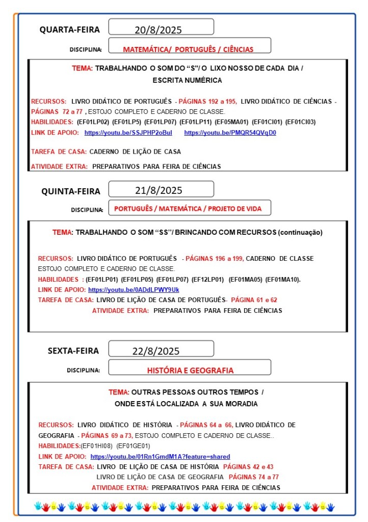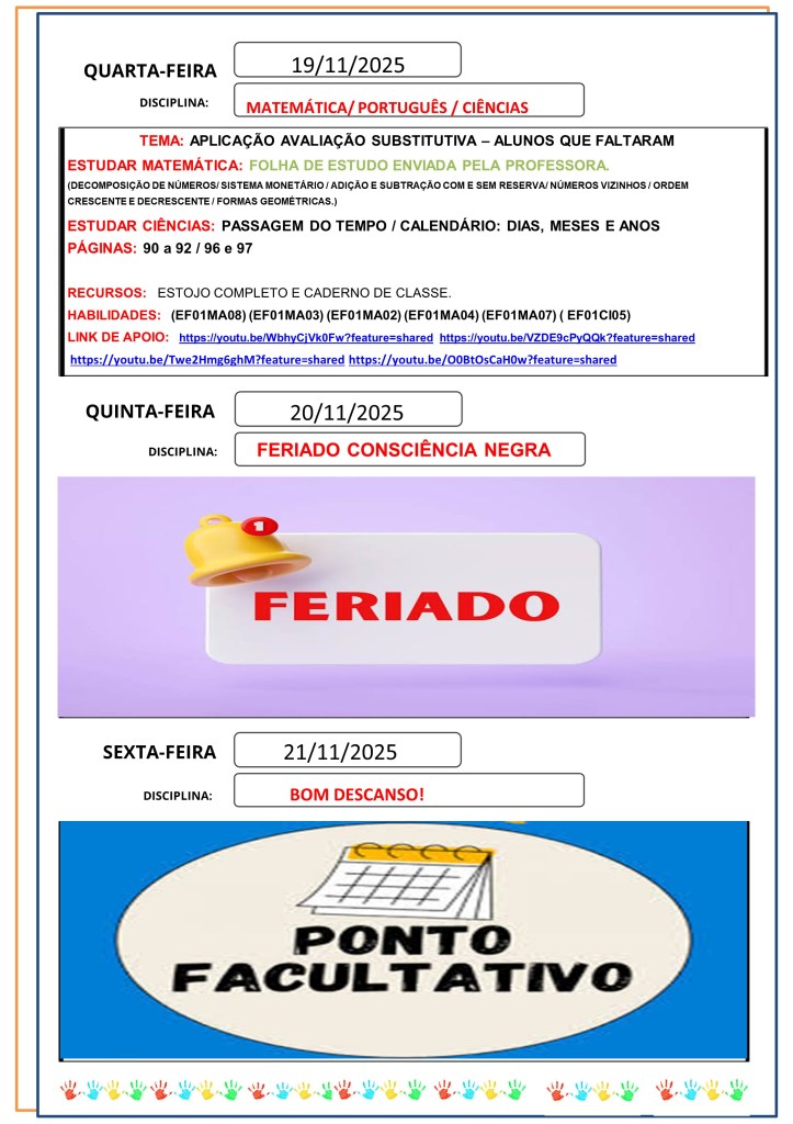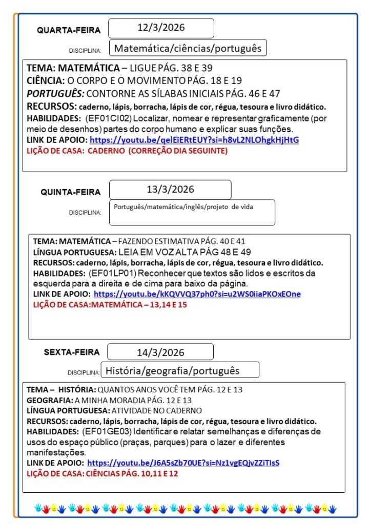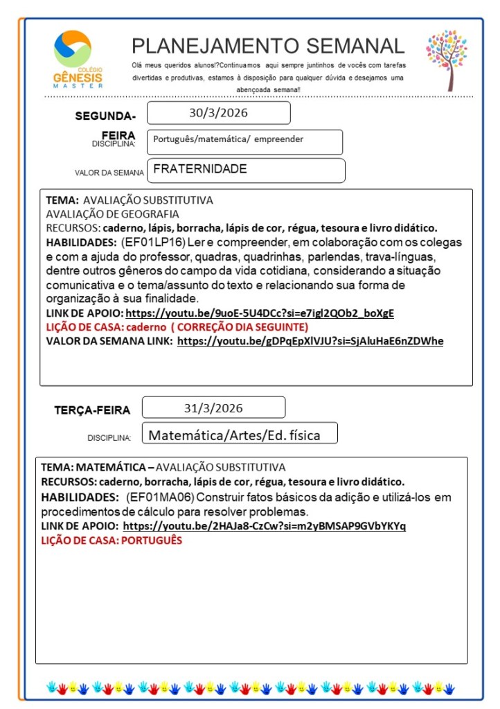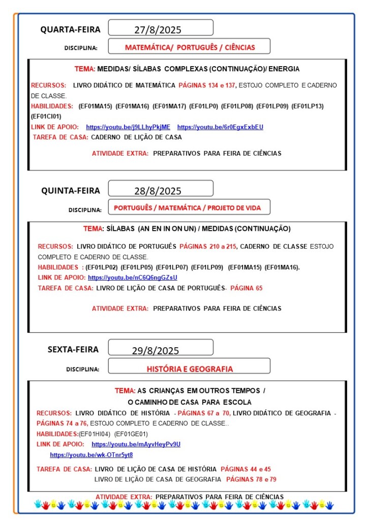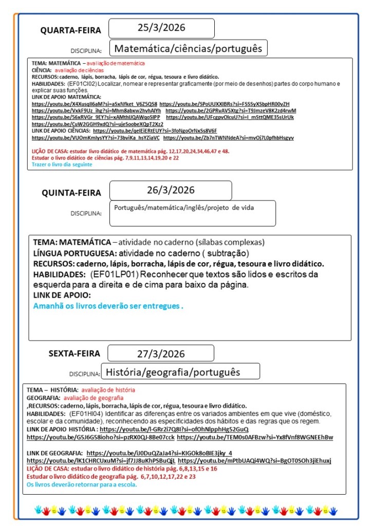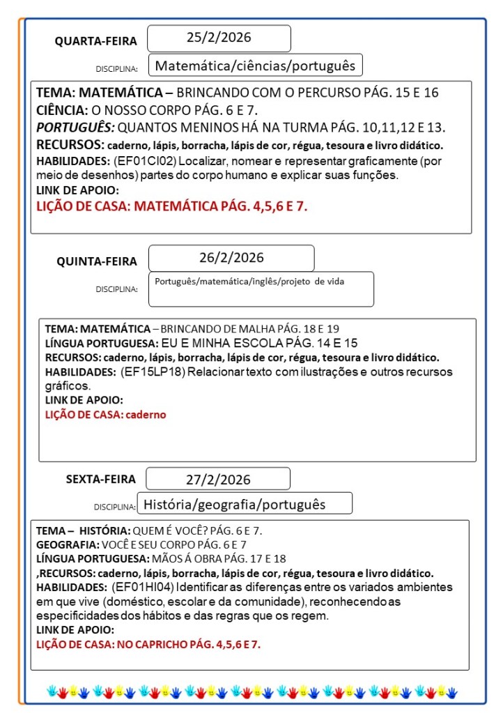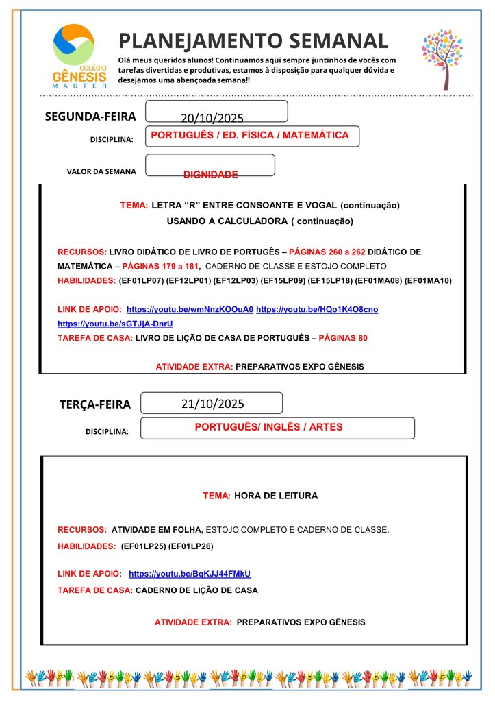 Continuamos aqui sempre juntinhos de vocês com tarefas divertidas e produtivas, estamos à disposição para qualquer dúvida e desejamos uma abençoada semana!!