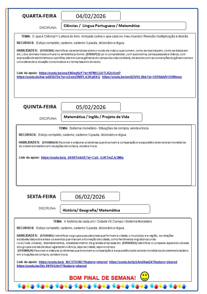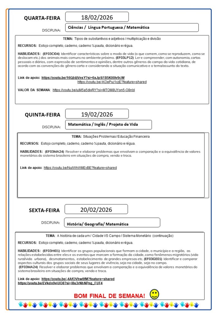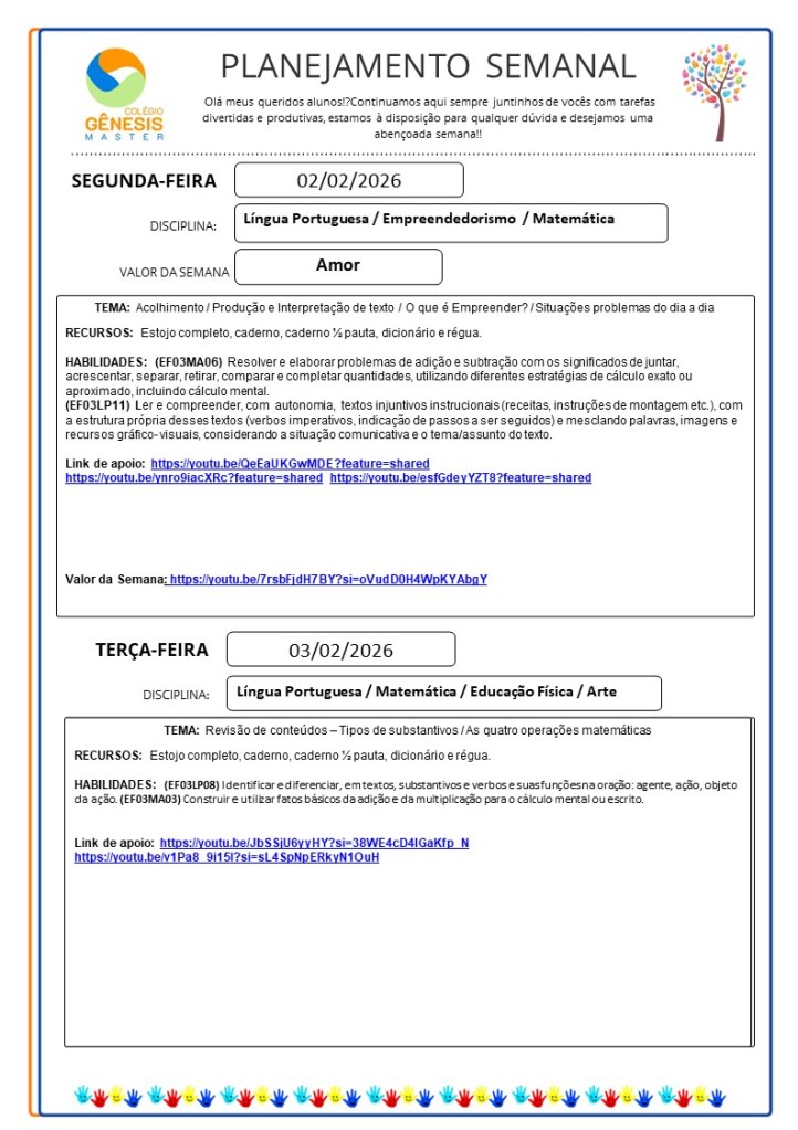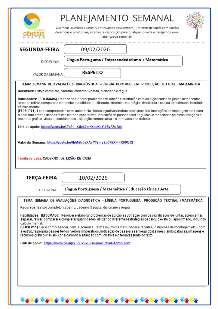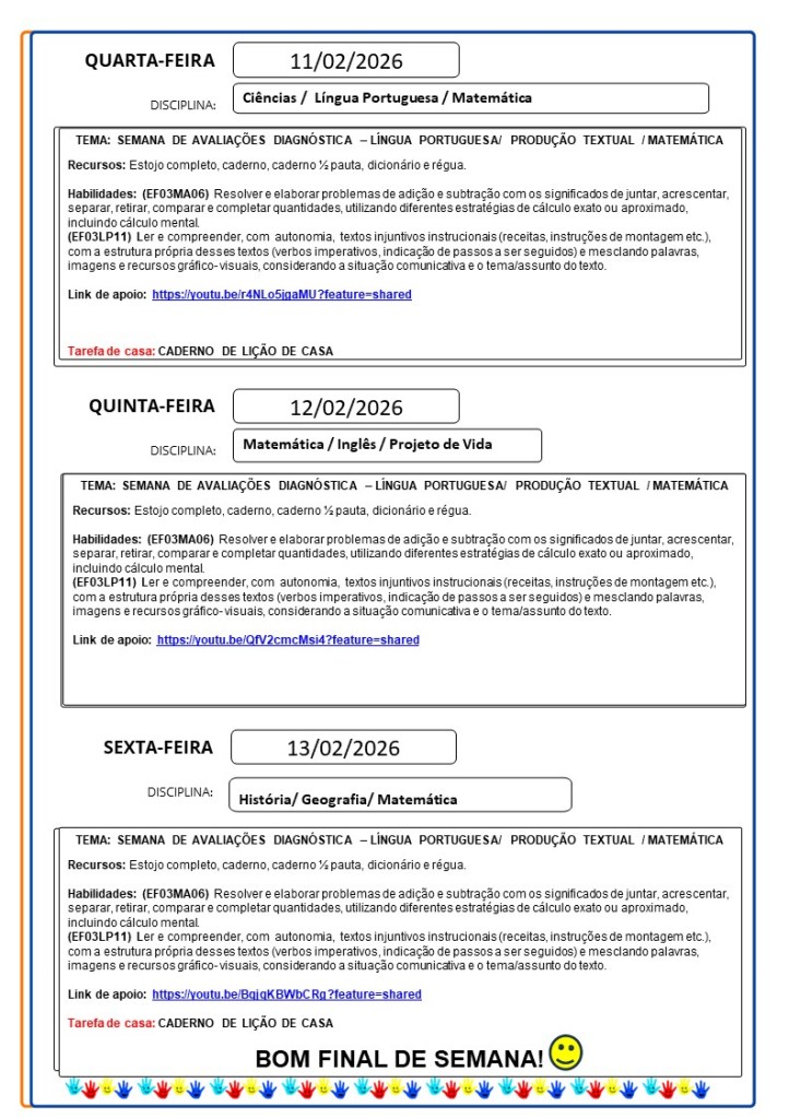 Continuamos aqui sempre juntinhos de vocês com tarefas divertidas e produtivas, estamos à disposição para qualquer dúvida e desejamos uma abençoada semana!!