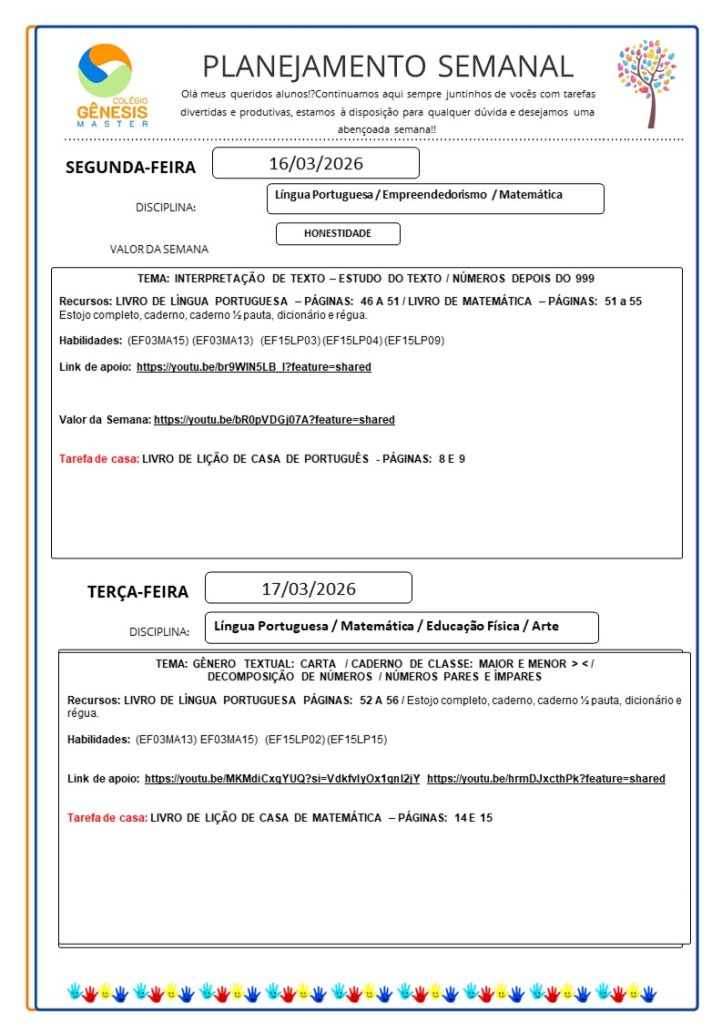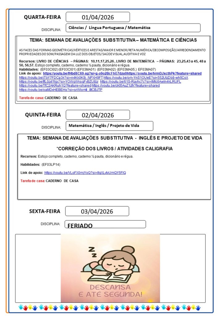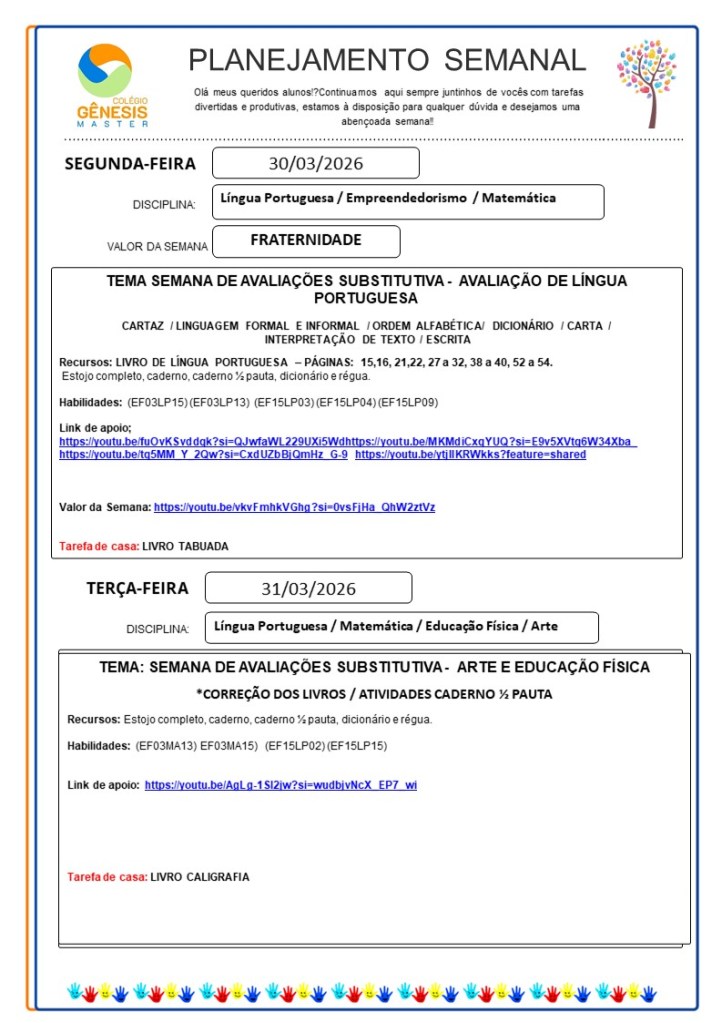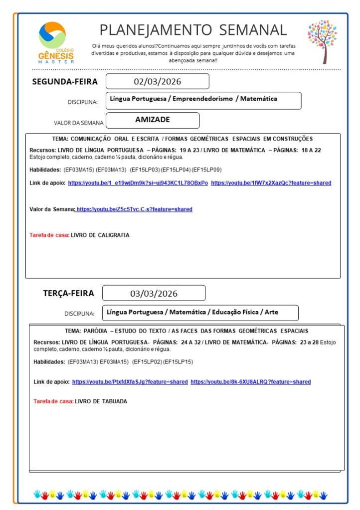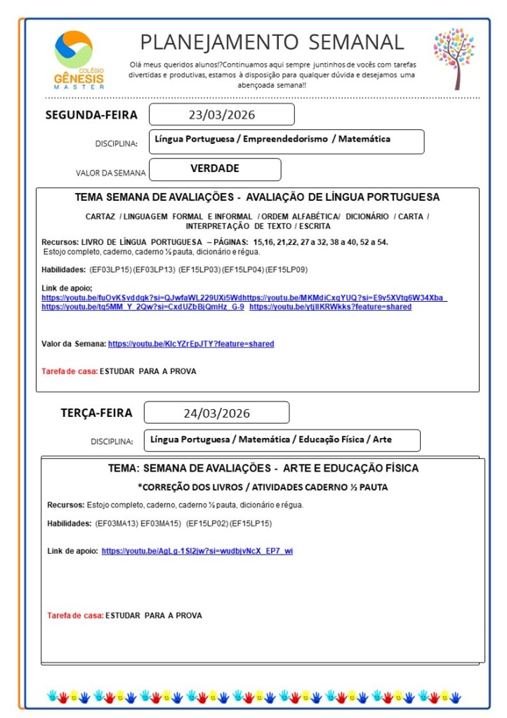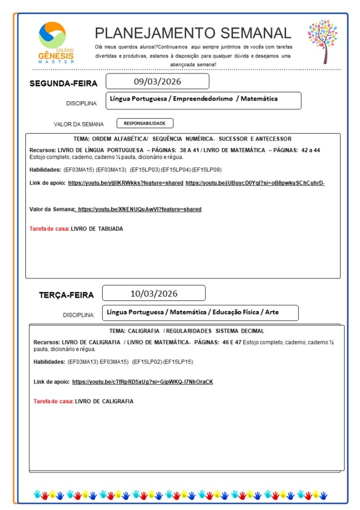 Continuamos aqui sempre juntinhos de vocês com tarefas divertidas e produtivas, estamos à disposição para qualquer dúvida e desejamos uma abençoada semana!!