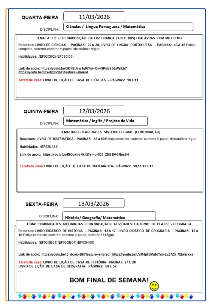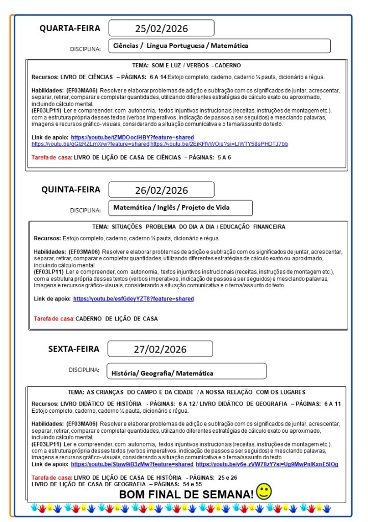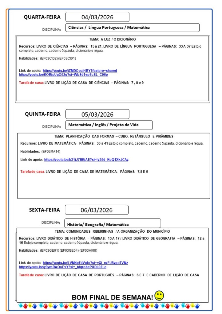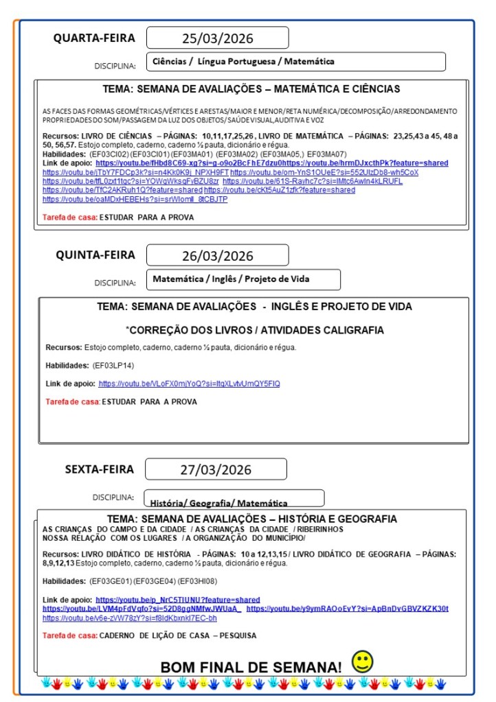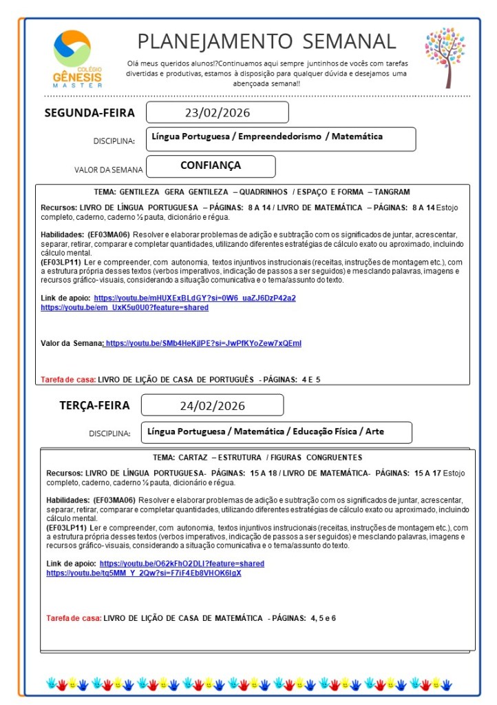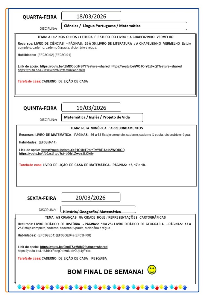 Continuamos aqui sempre juntinhos de vocês com tarefas divertidas e produtivas, estamos à disposição para qualquer dúvida e desejamos uma abençoada semana!!