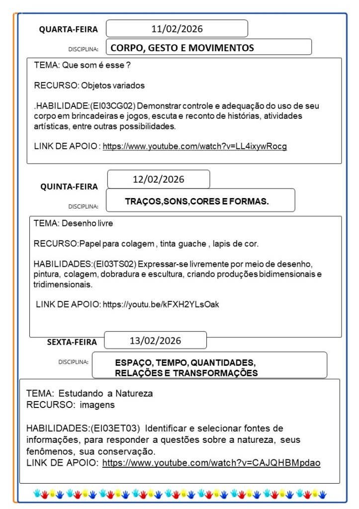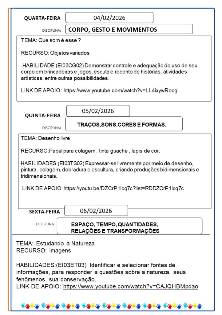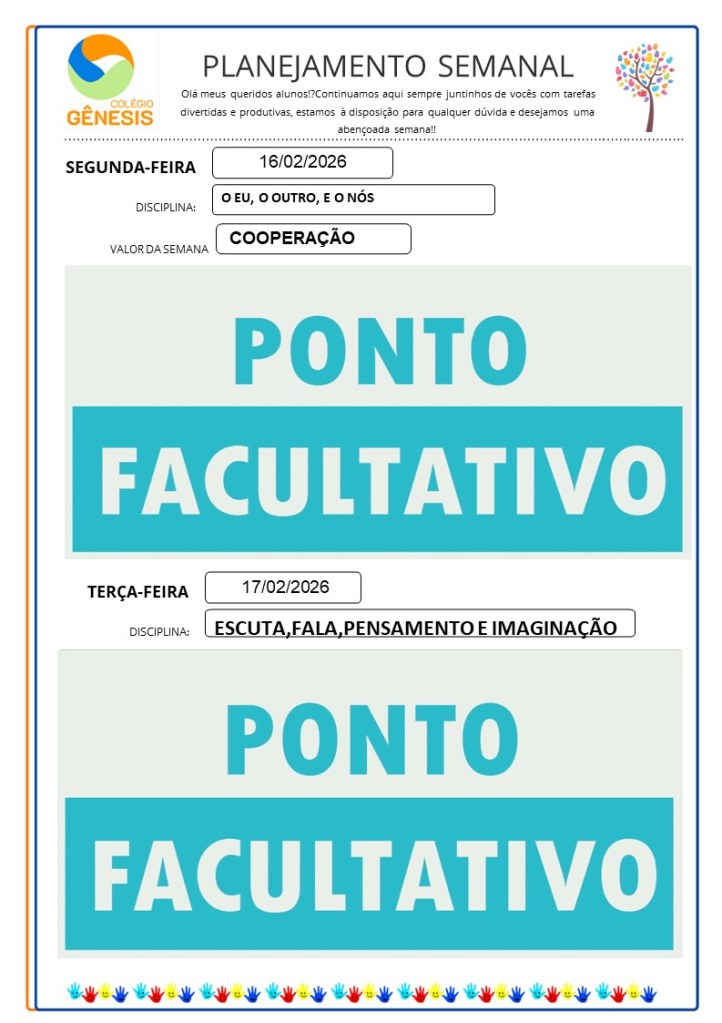 Continuamos aqui sempre juntinhos de vocês com tarefas divertidas e produtivas, estamos à disposição para qualquer dúvida e desejamos uma abençoada semana!!