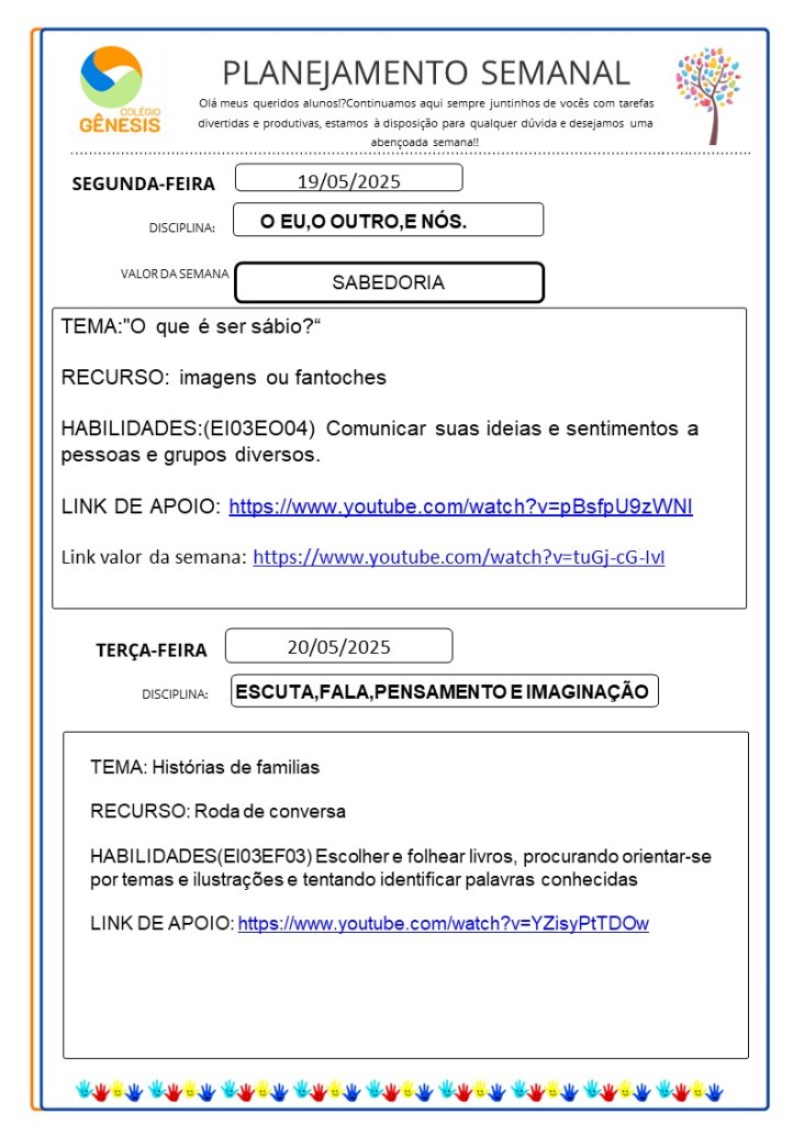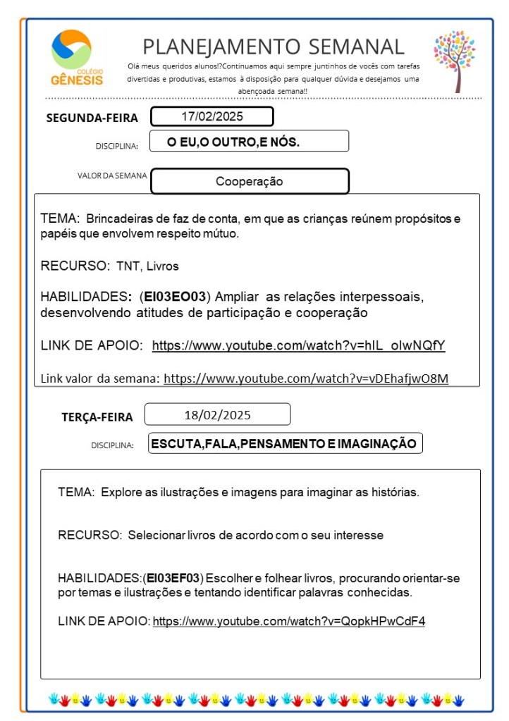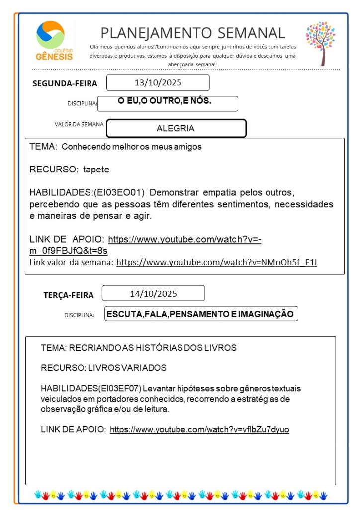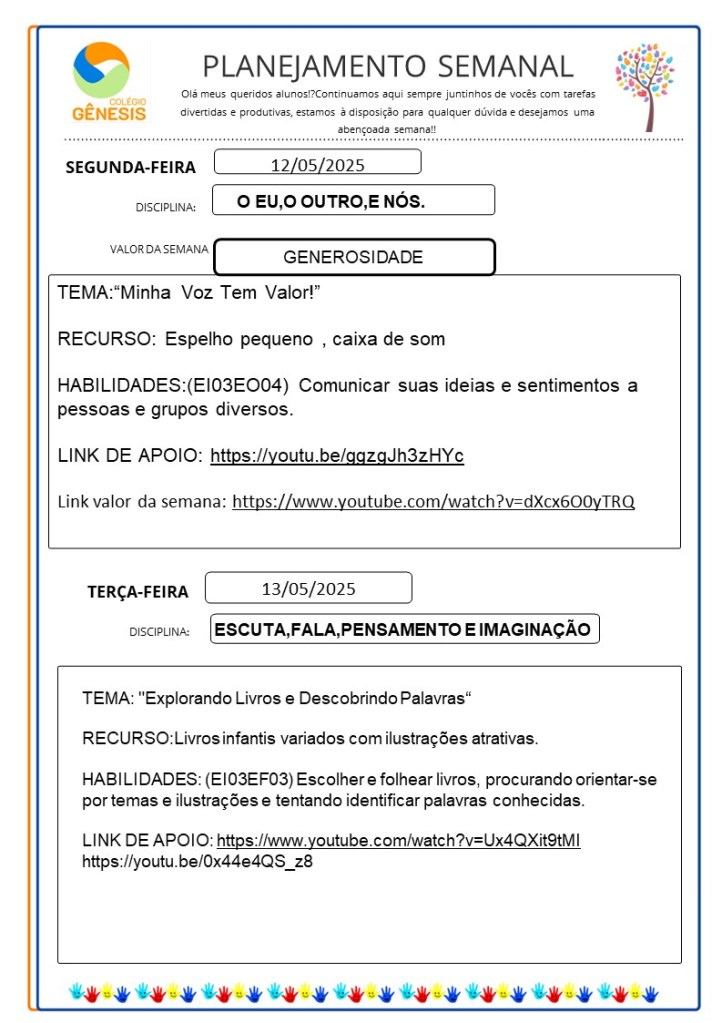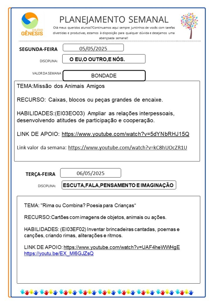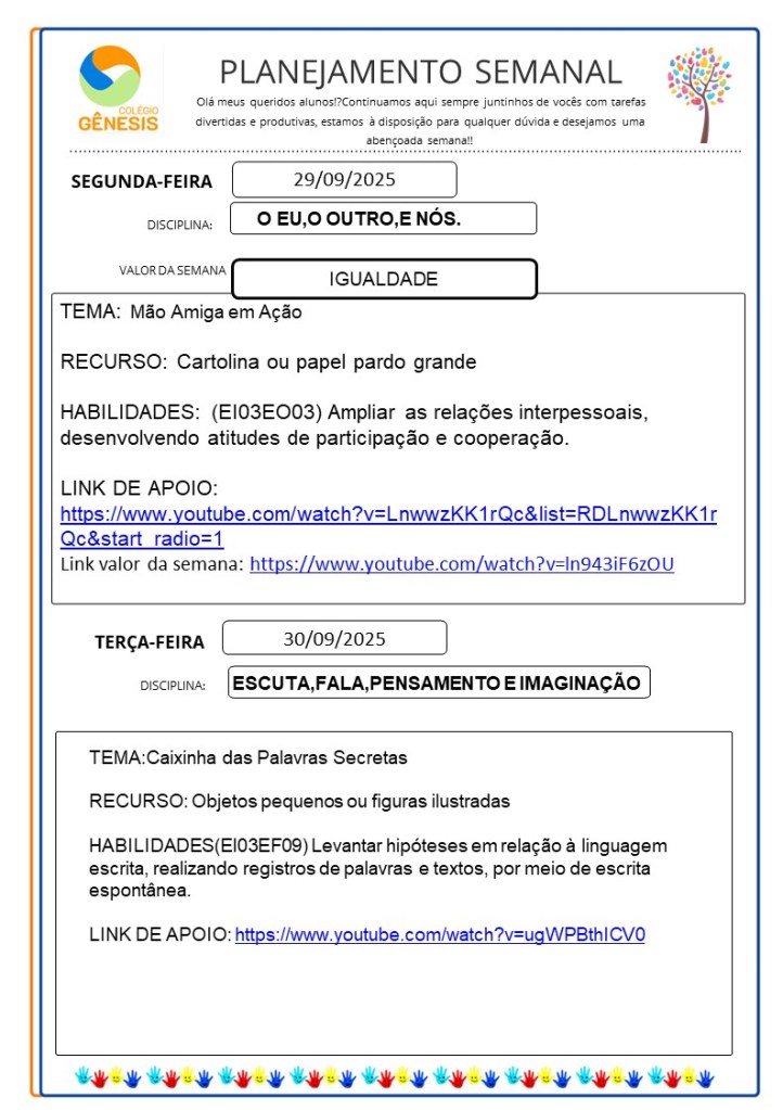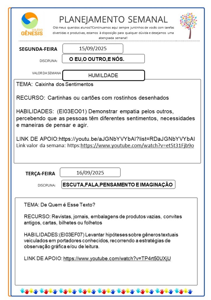 Continuamos aqui sempre juntinhos de vocês com tarefas divertidas e produtivas, estamos à disposição para qualquer dúvida e desejamos uma abençoada semana!!