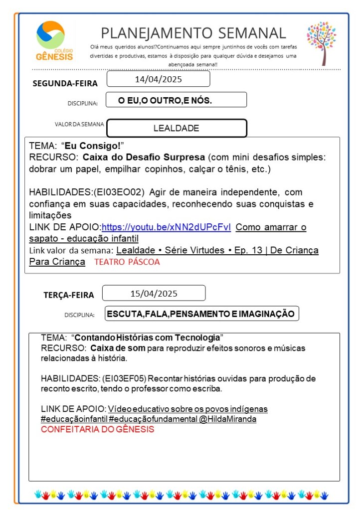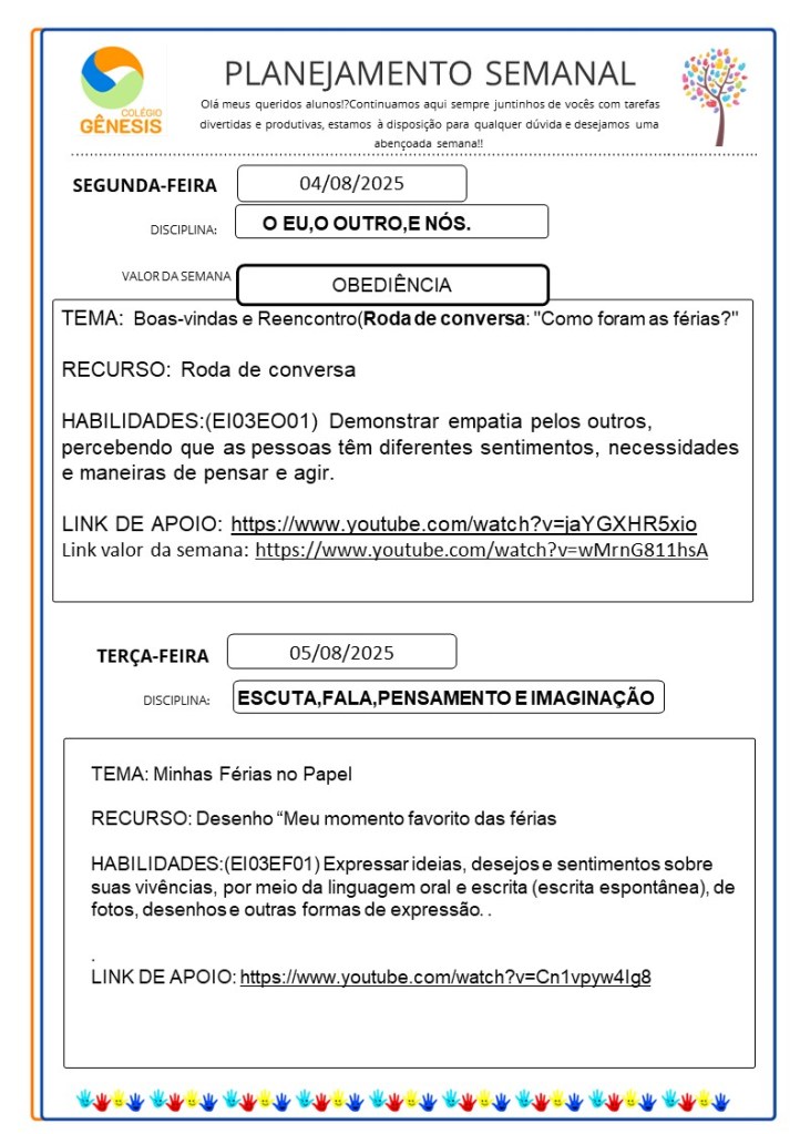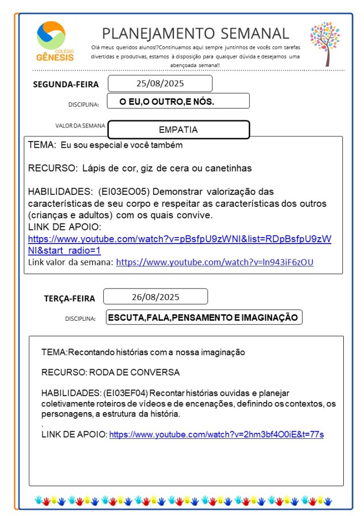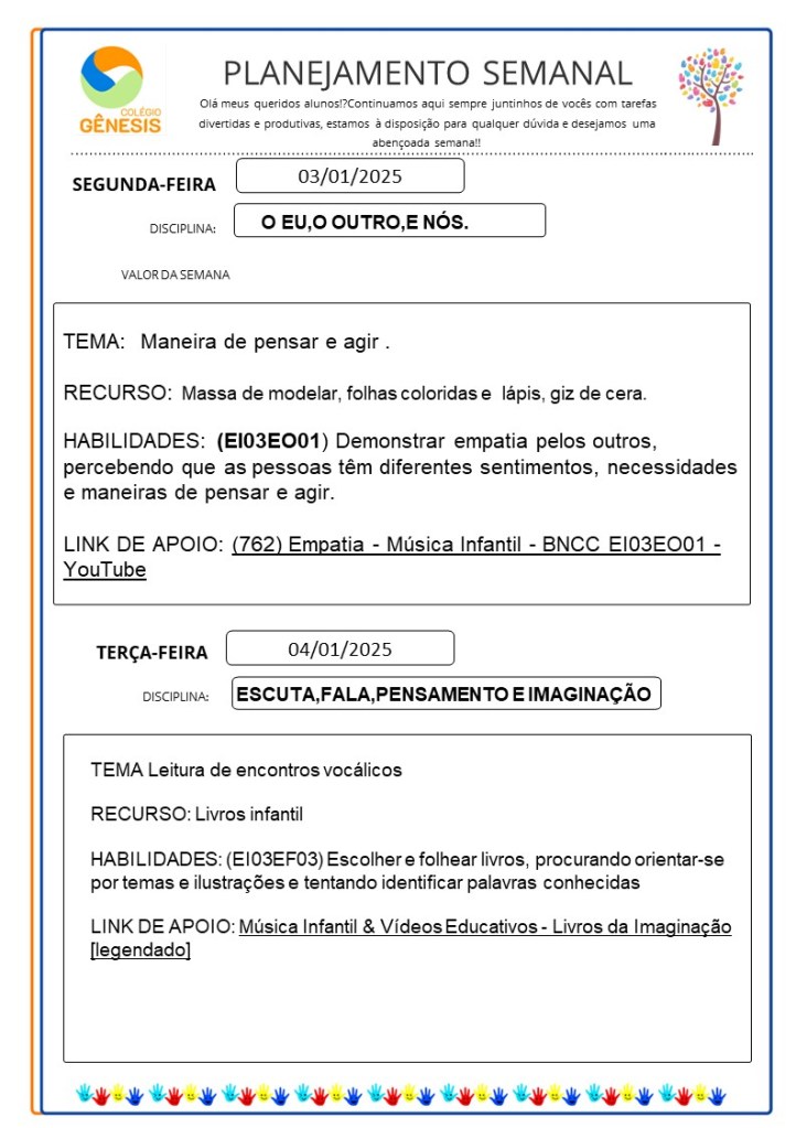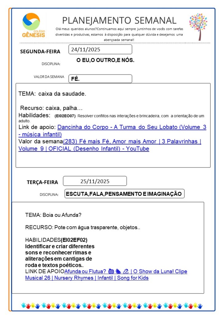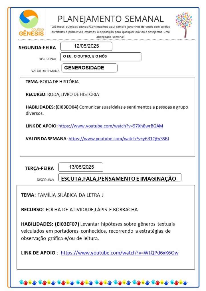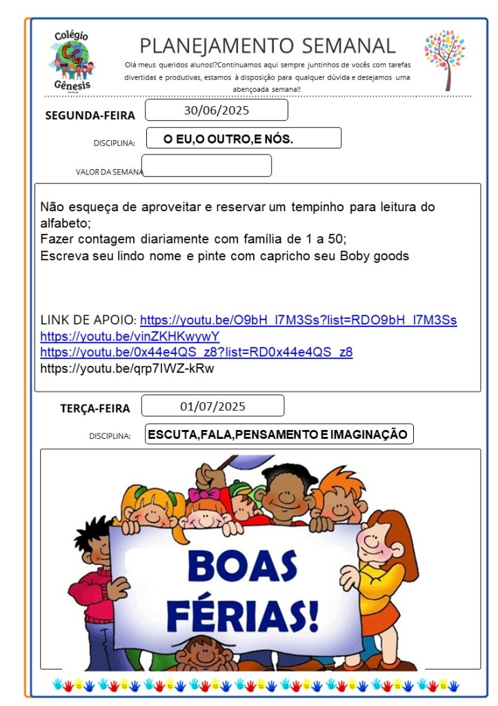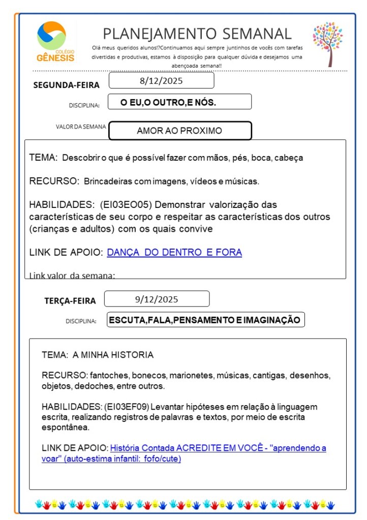 Continuamos aqui sempre juntinhos de vocês com tarefas divertidas e produtivas, estamos à disposição para qualquer dúvida e desejamos uma abençoada semana!!