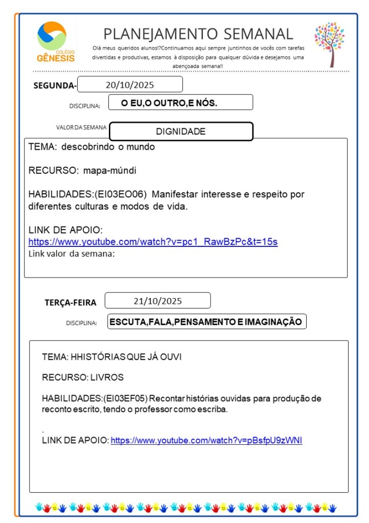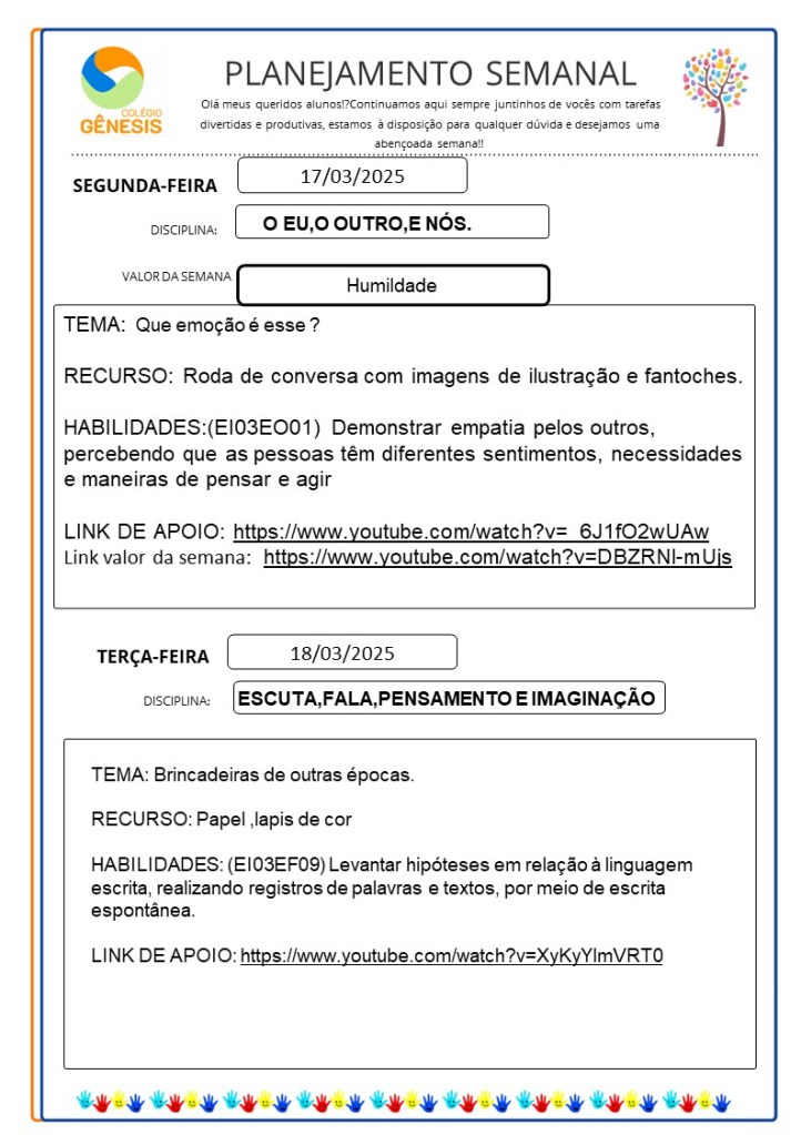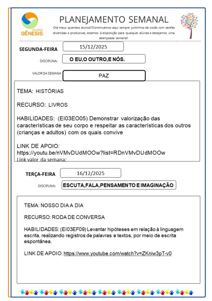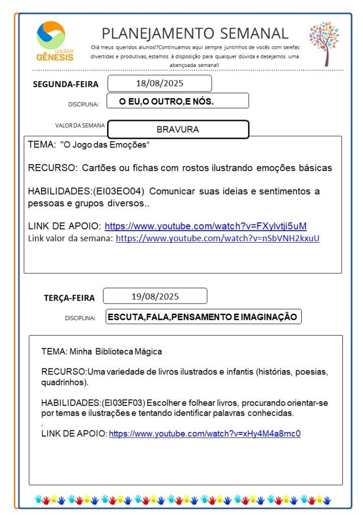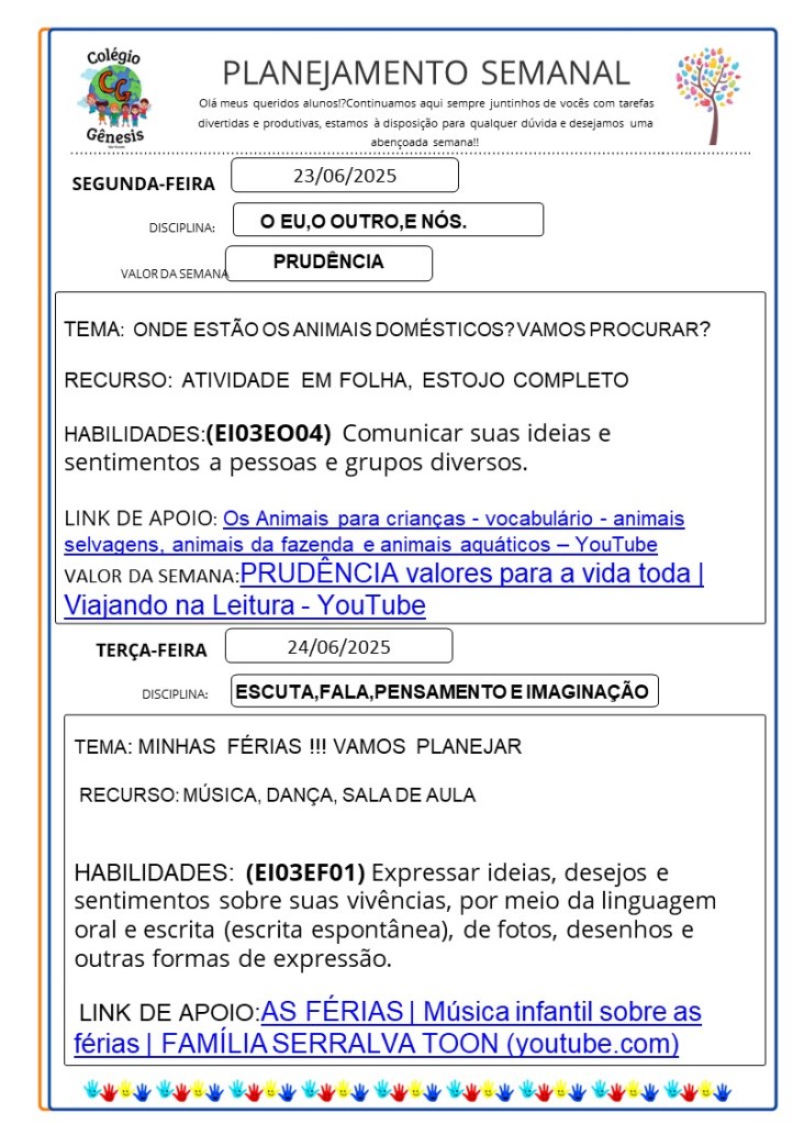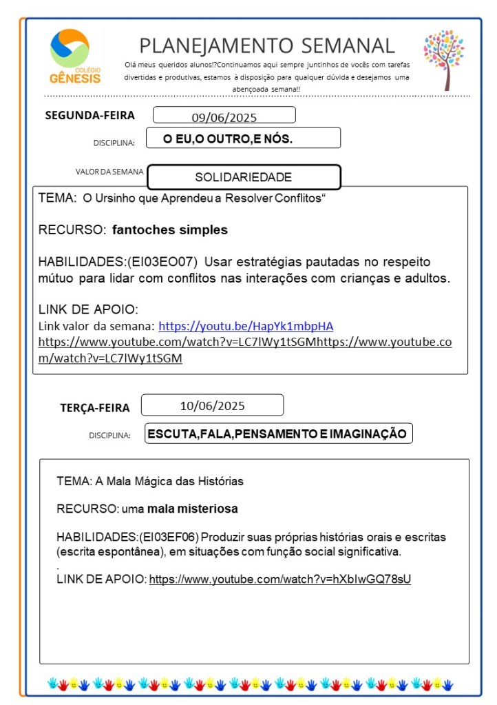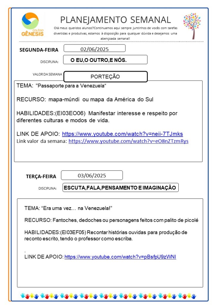 Continuamos aqui sempre juntinhos de vocês com tarefas divertidas e produtivas, estamos à disposição para qualquer dúvida e desejamos uma abençoada semana!!