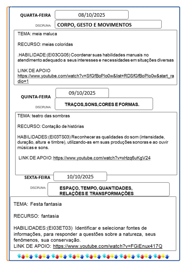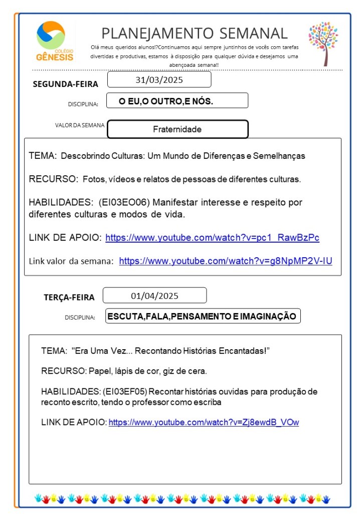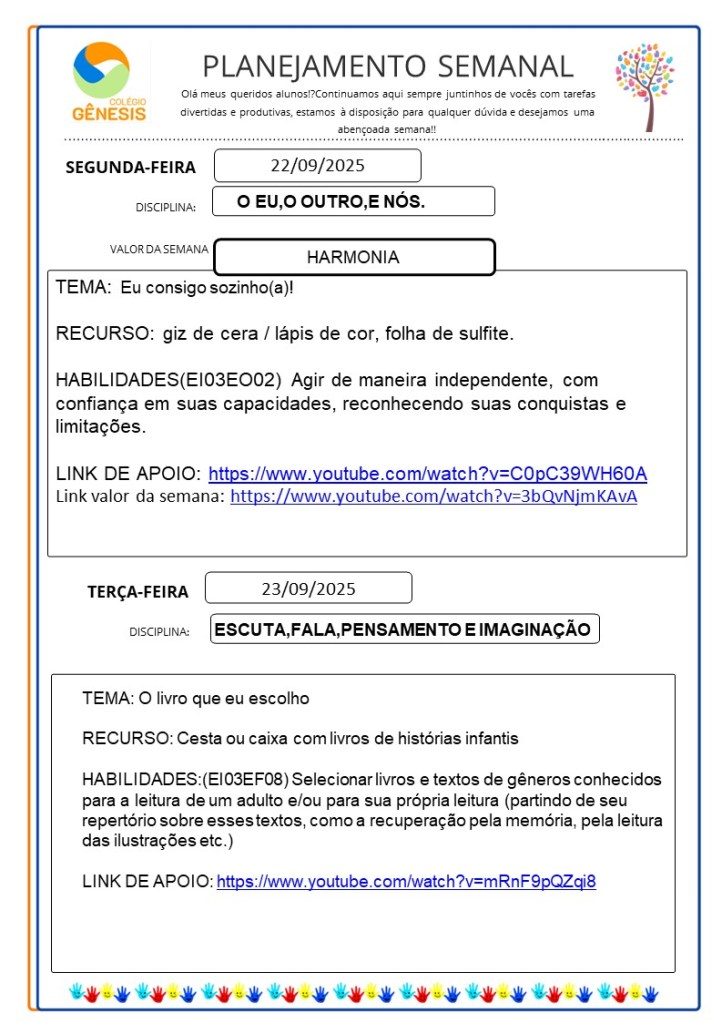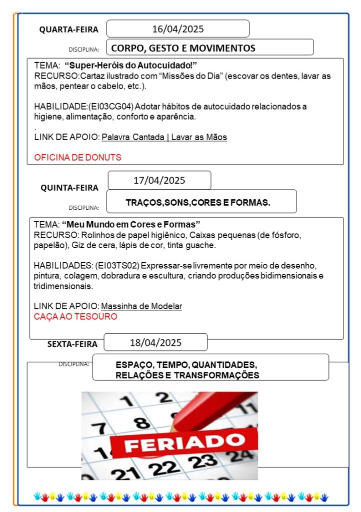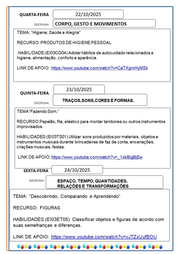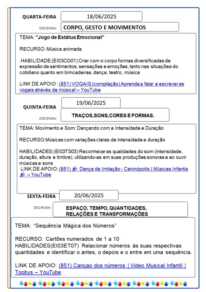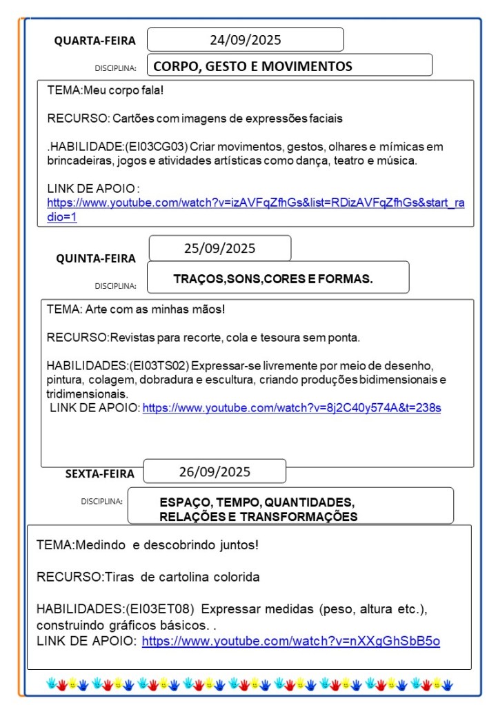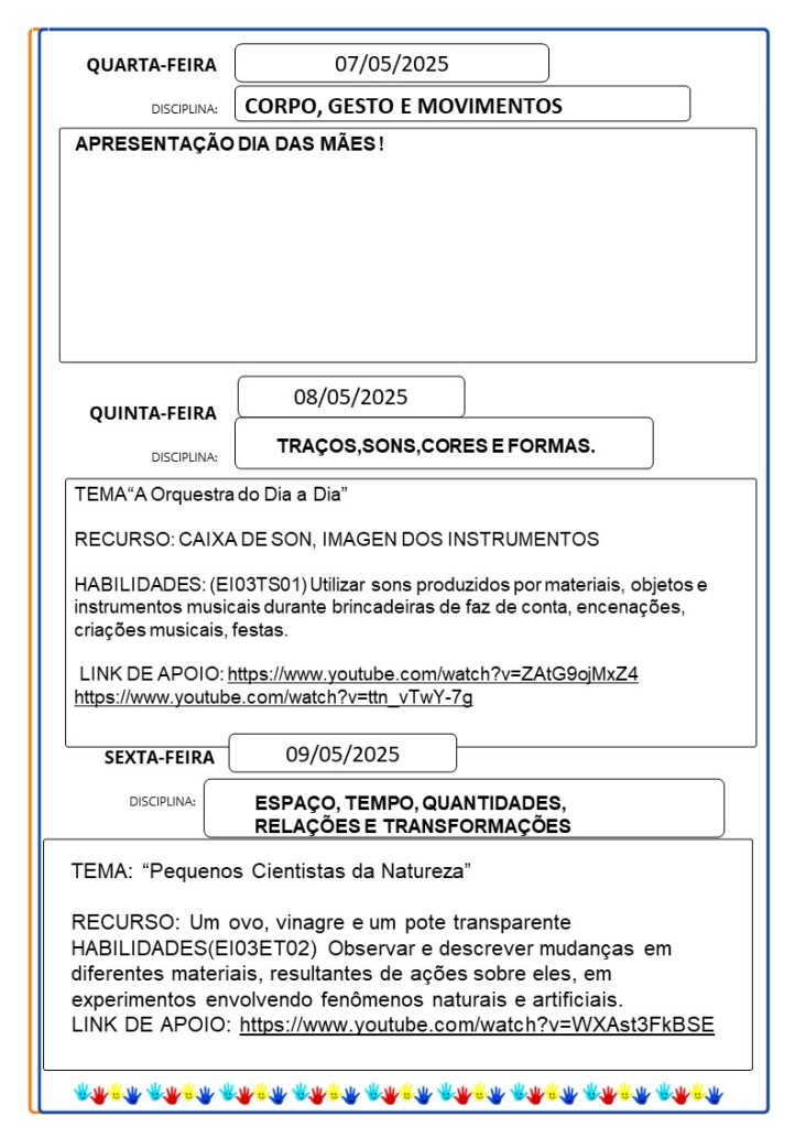 Continuamos aqui sempre juntinhos de vocês com tarefas divertidas e produtivas, estamos à disposição para qualquer dúvida e desejamos uma abençoada semana!!