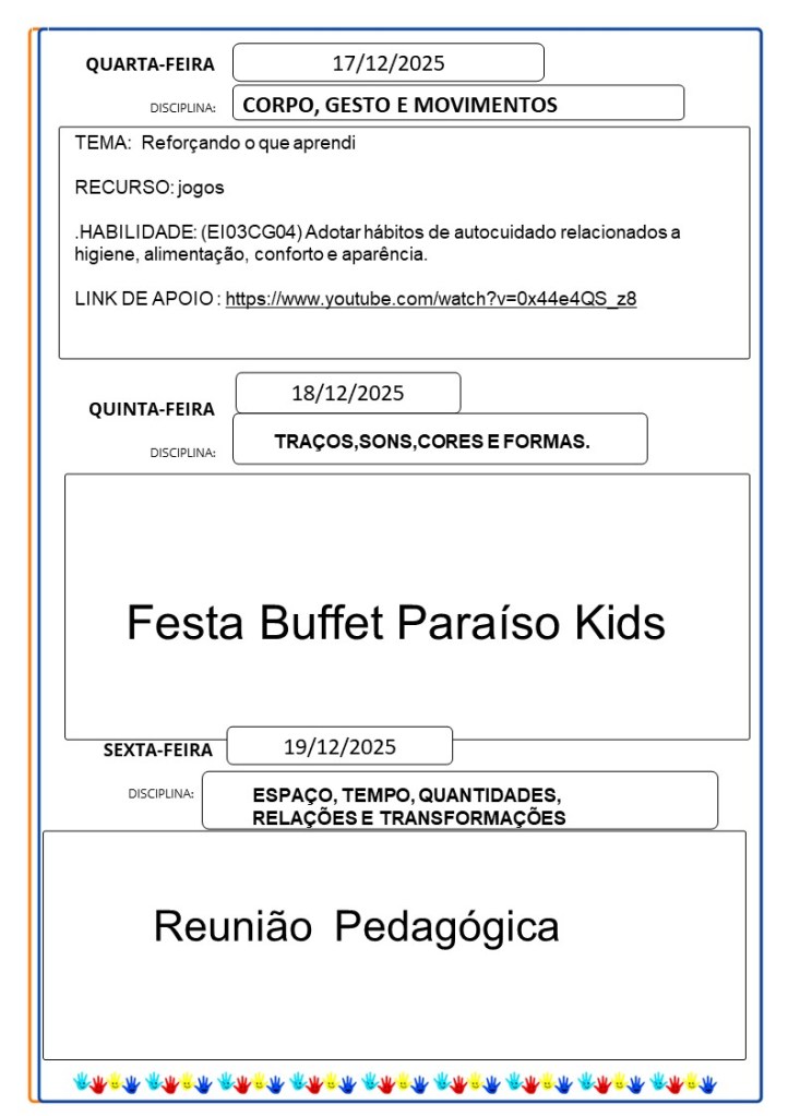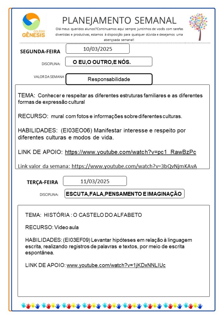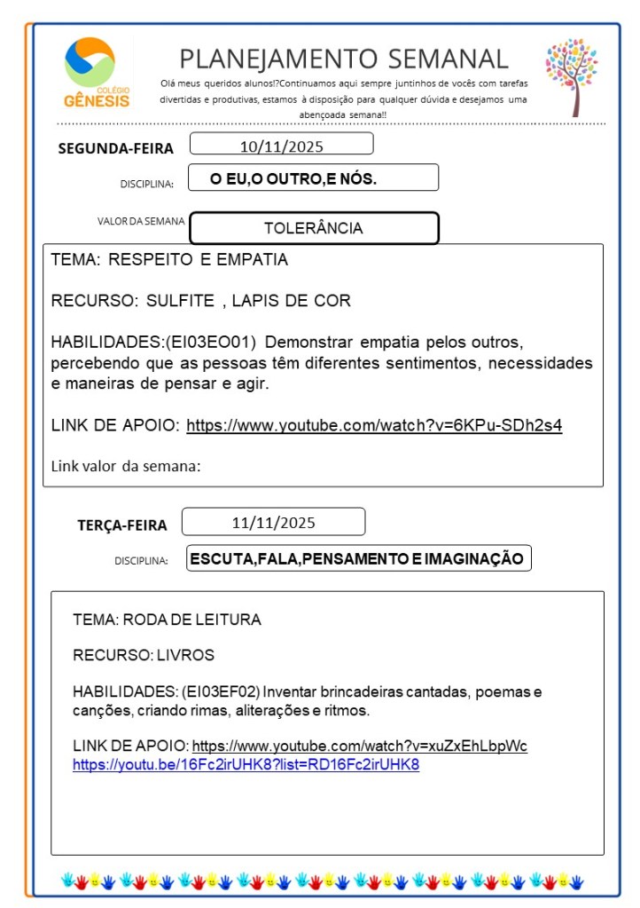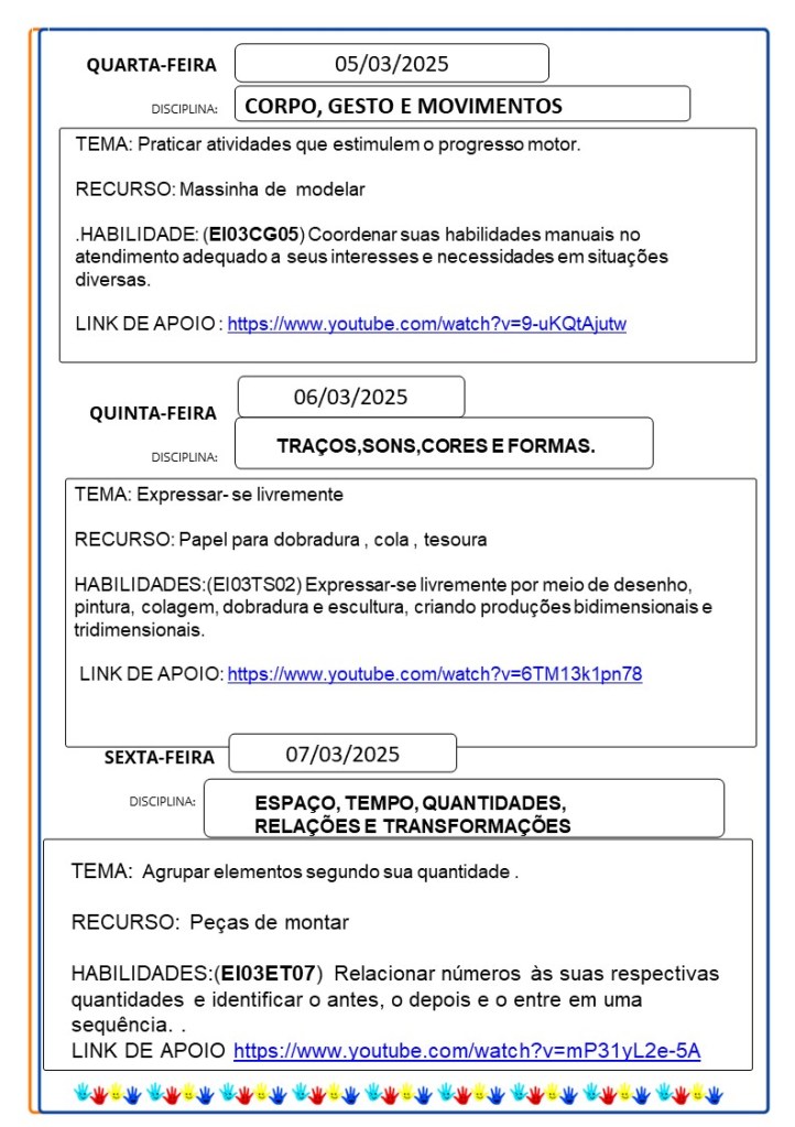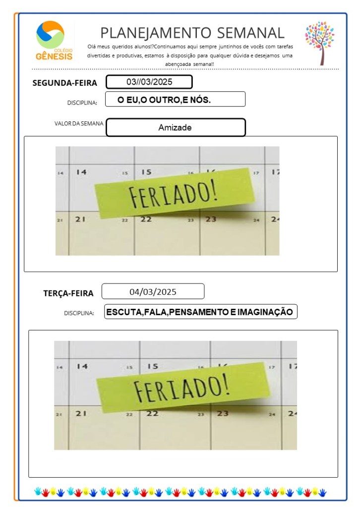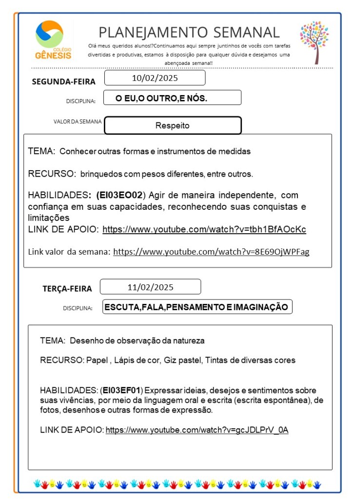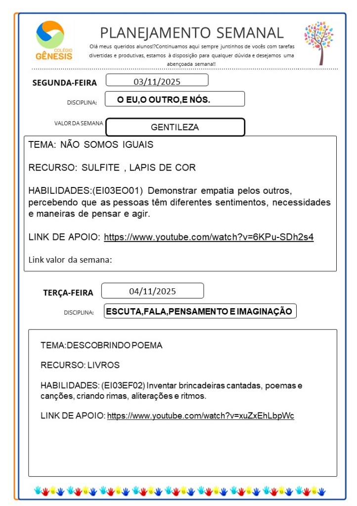 Continuamos aqui sempre juntinhos de vocês com tarefas divertidas e produtivas, estamos à disposição para qualquer dúvida e desejamos uma abençoada semana!!