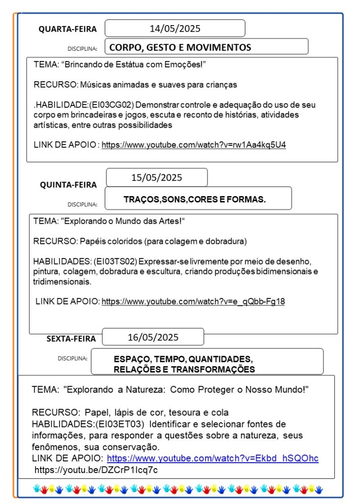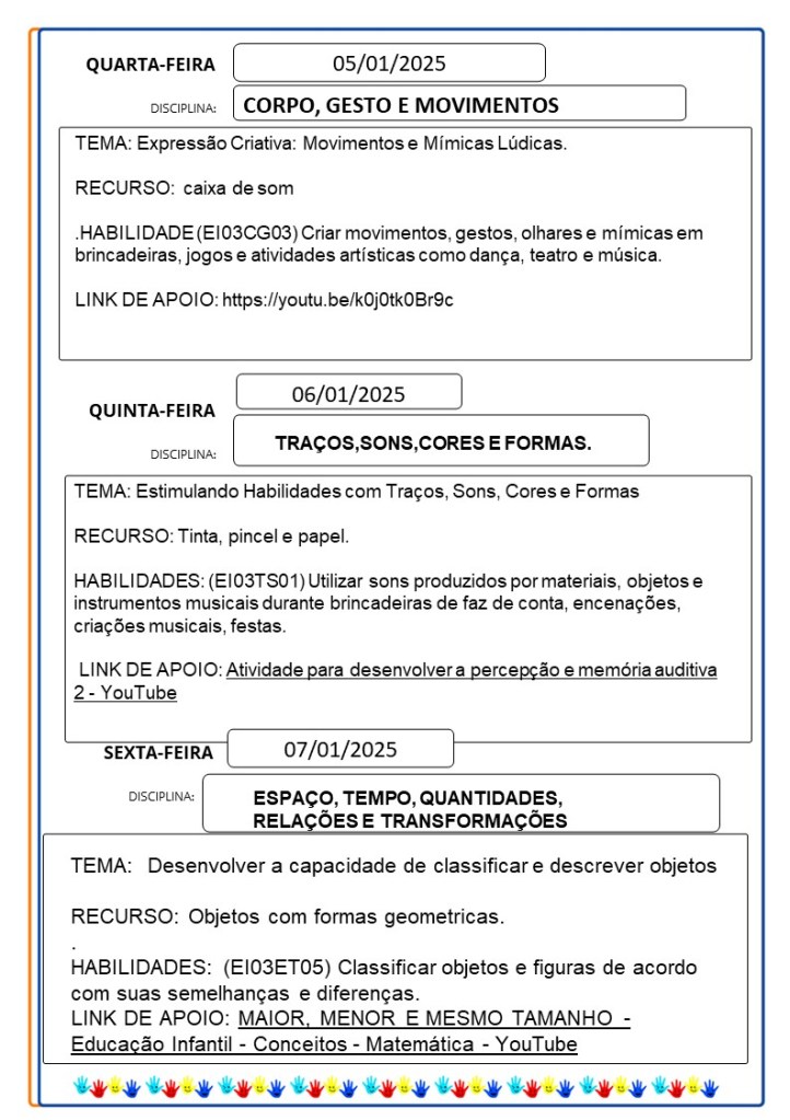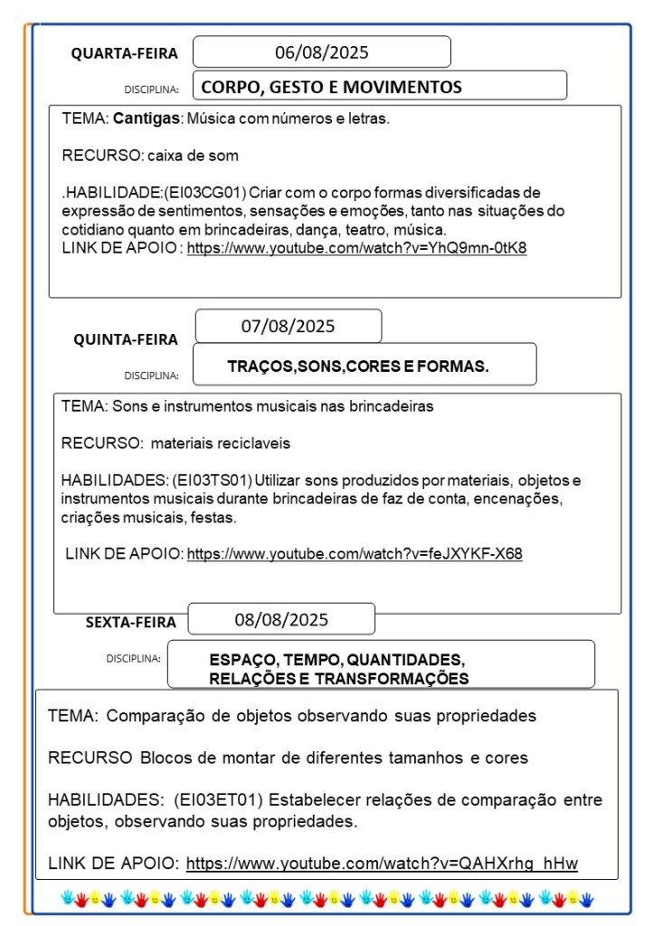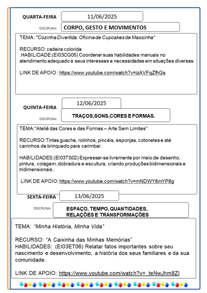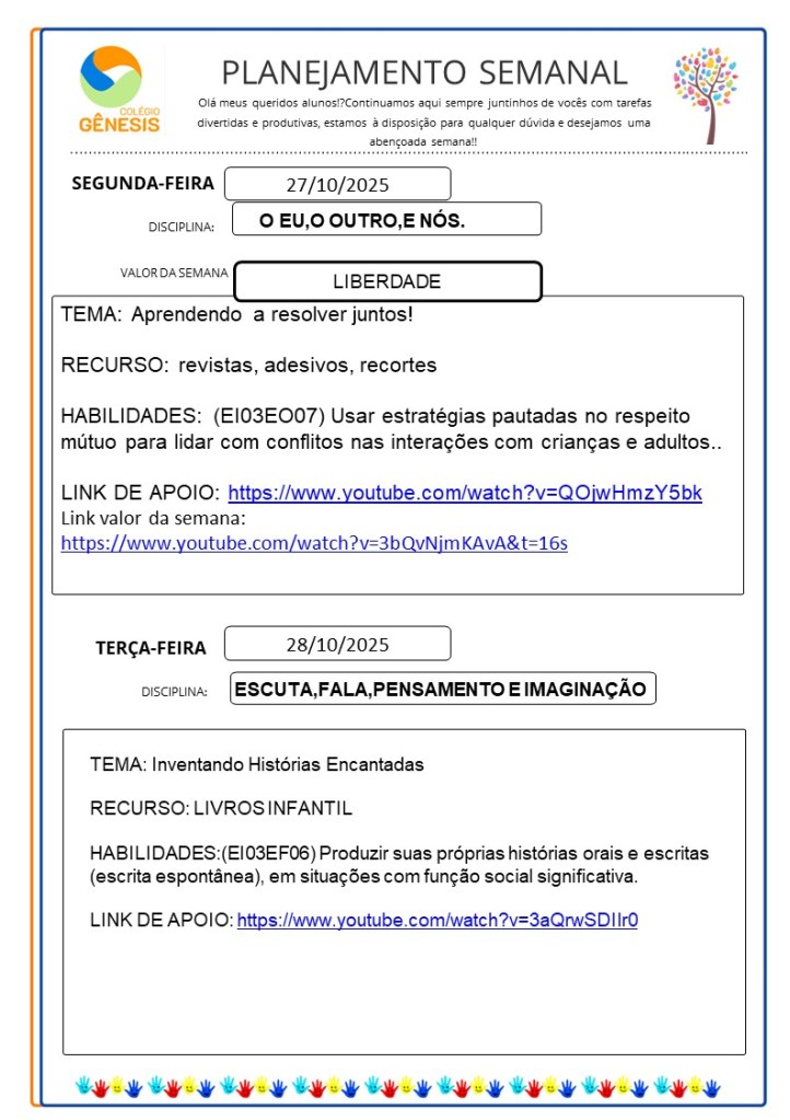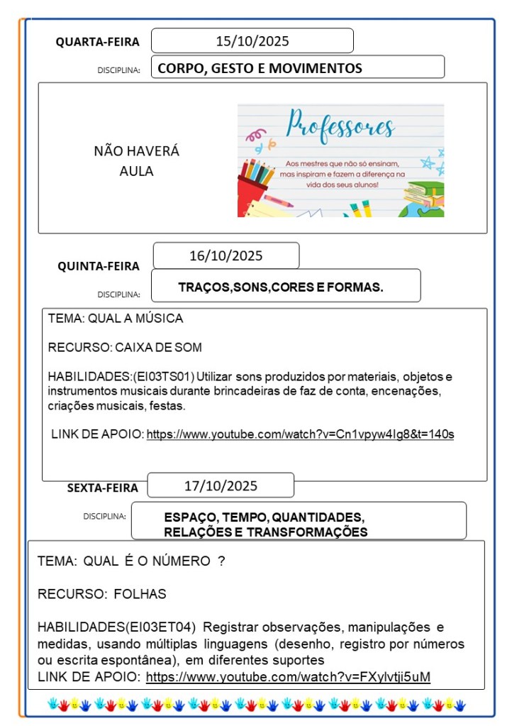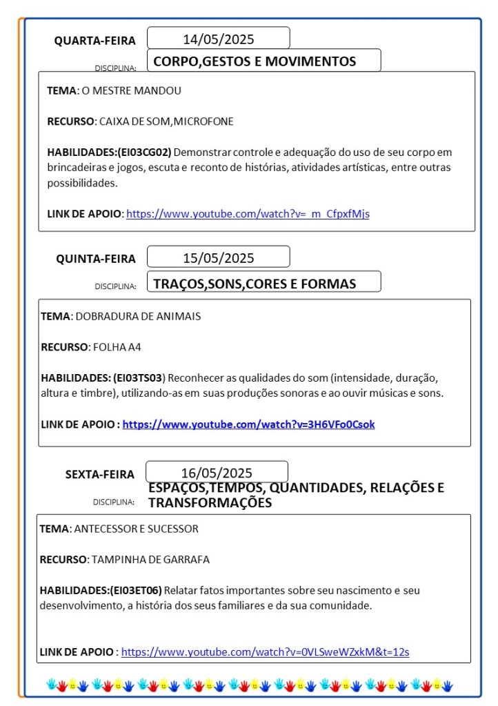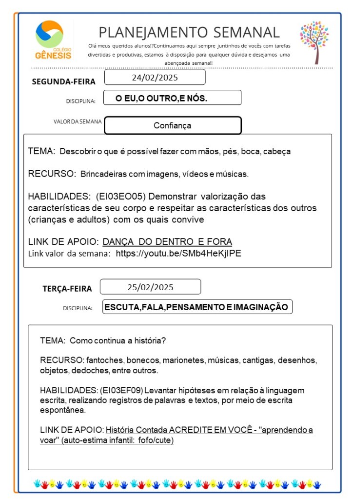 Continuamos aqui sempre juntinhos de vocês com tarefas divertidas e produtivas, estamos à disposição para qualquer dúvida e desejamos uma abençoada semana!!
