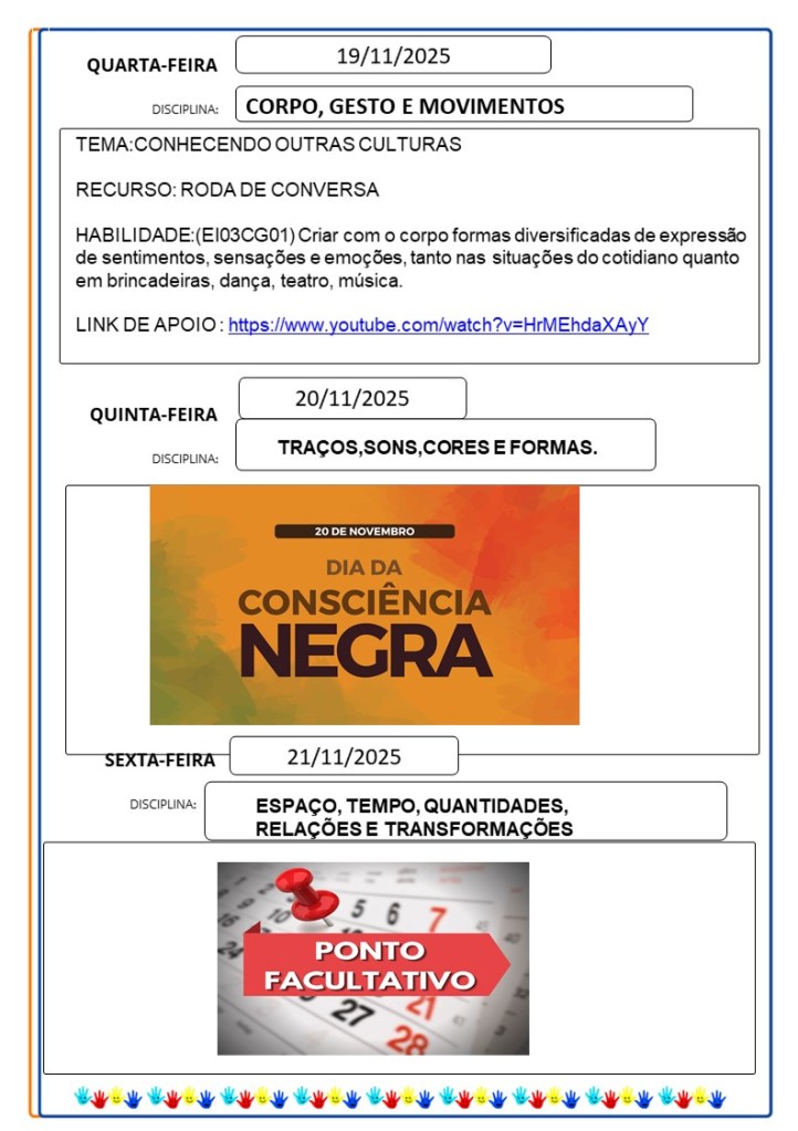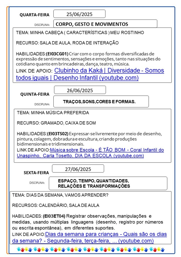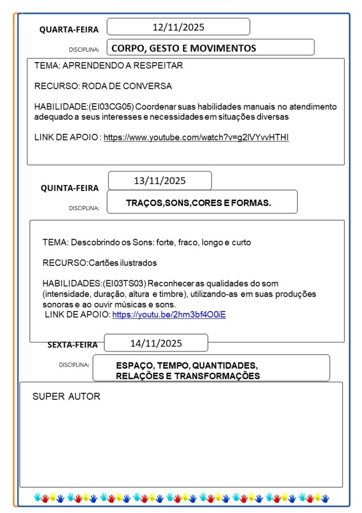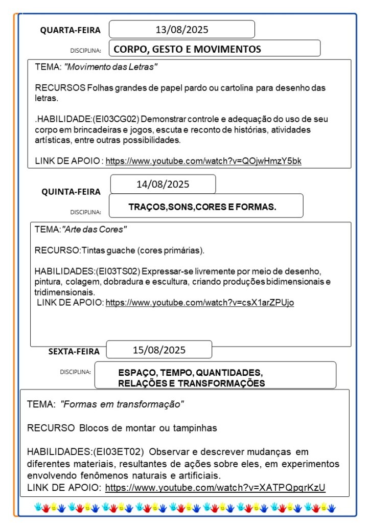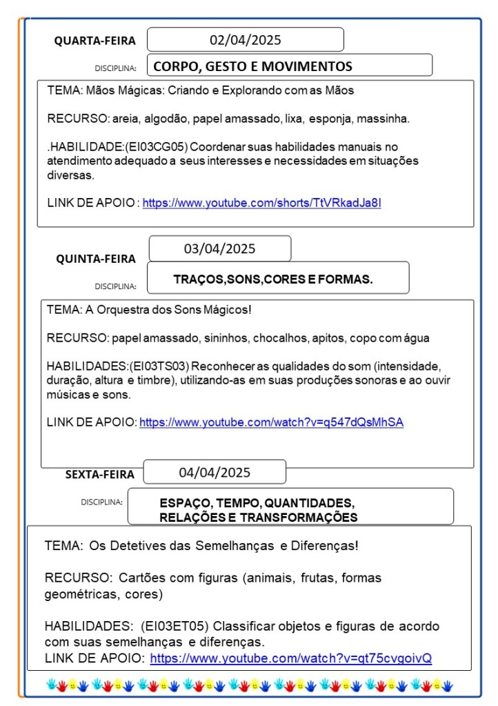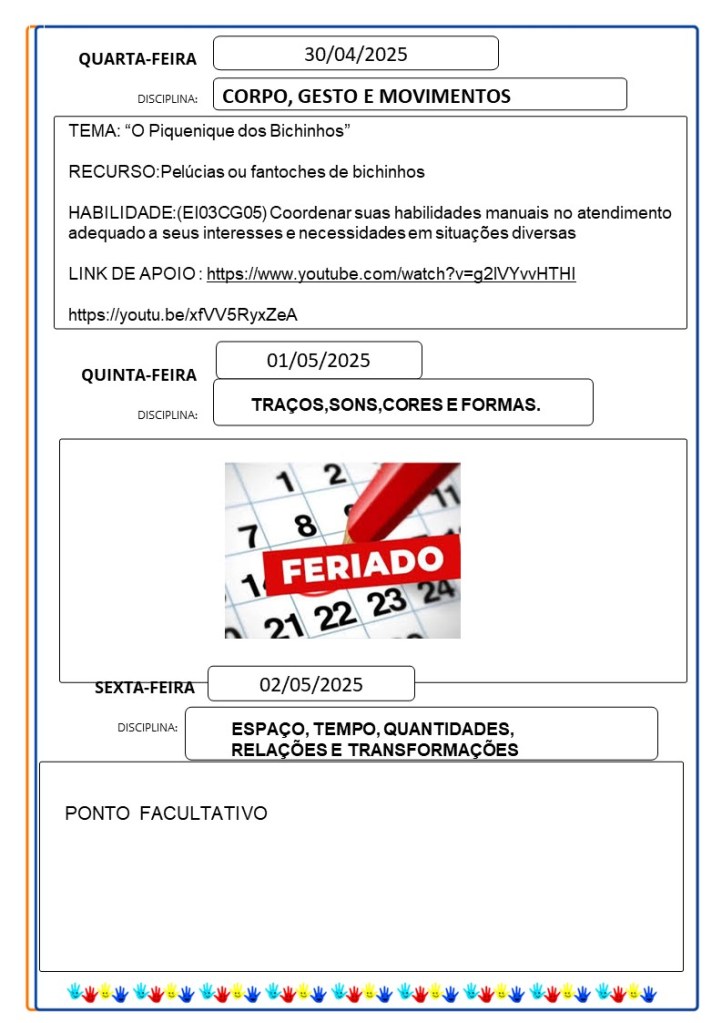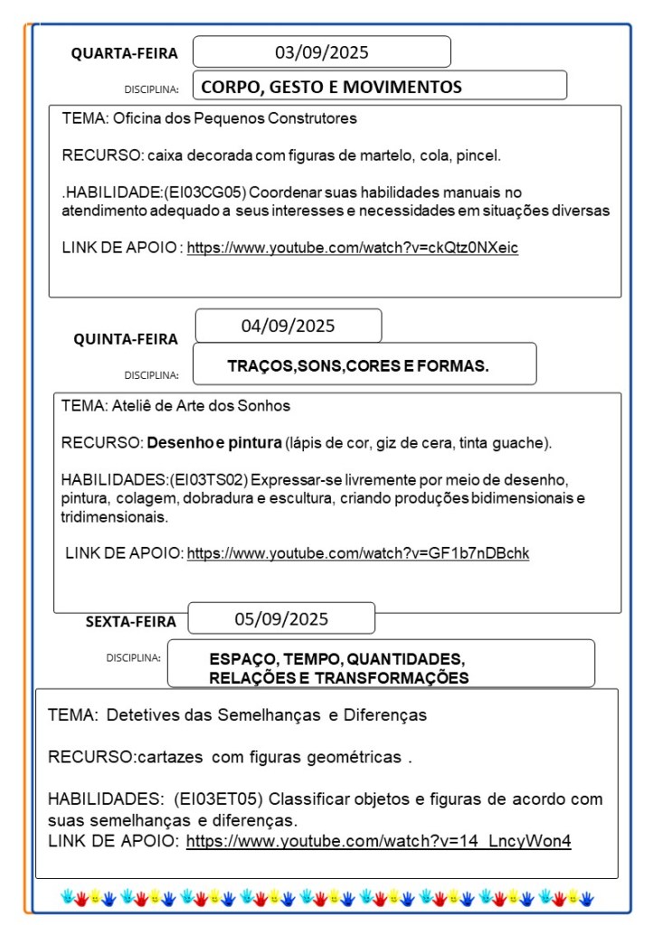 Continuamos aqui sempre juntinhos de vocês com tarefas divertidas e produtivas, estamos à disposição para qualquer dúvida e desejamos uma abençoada semana!!
