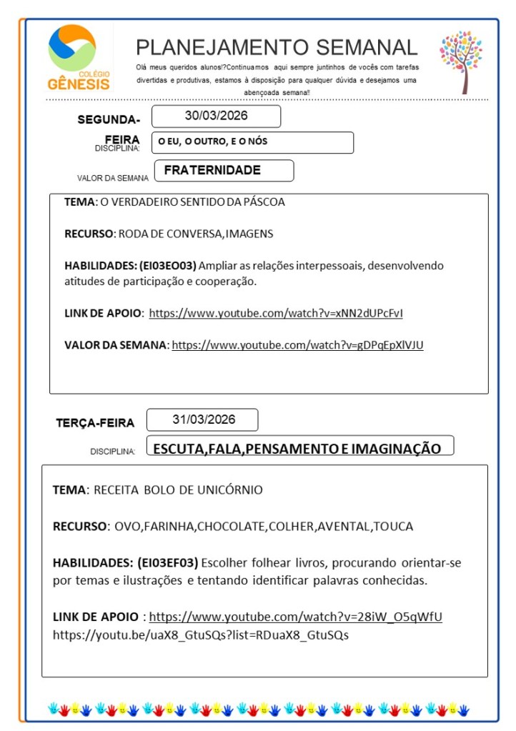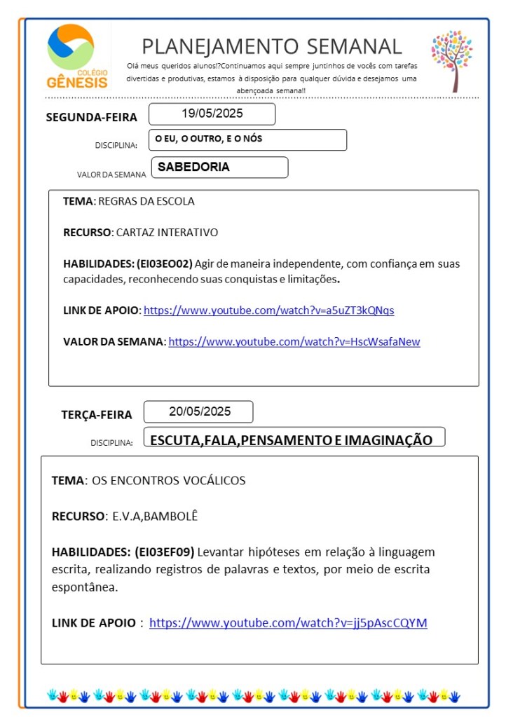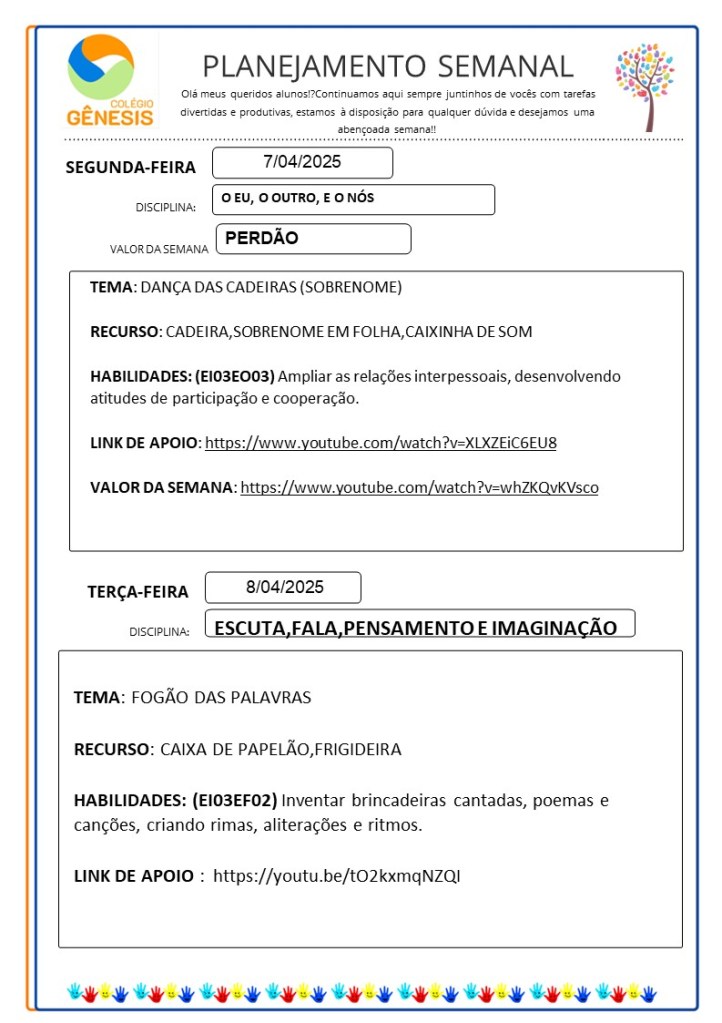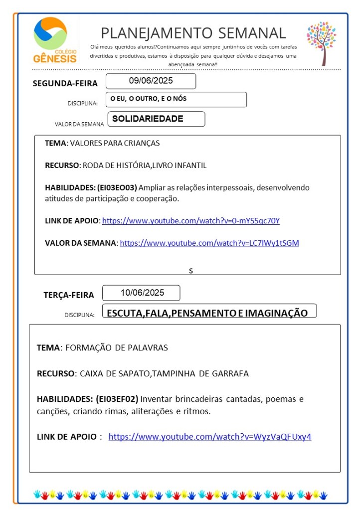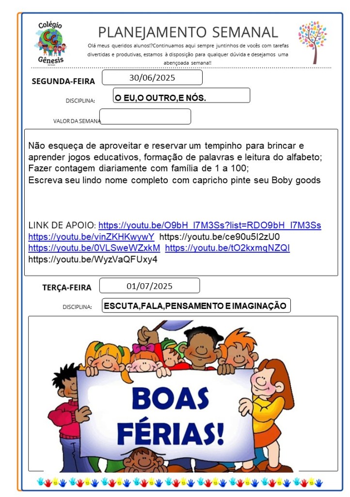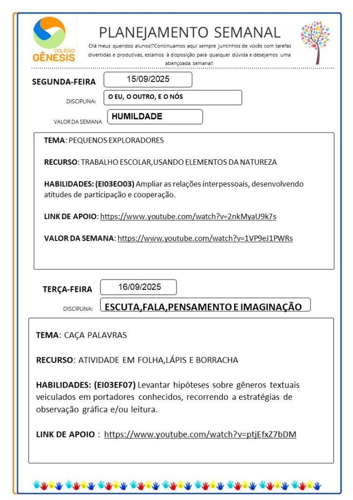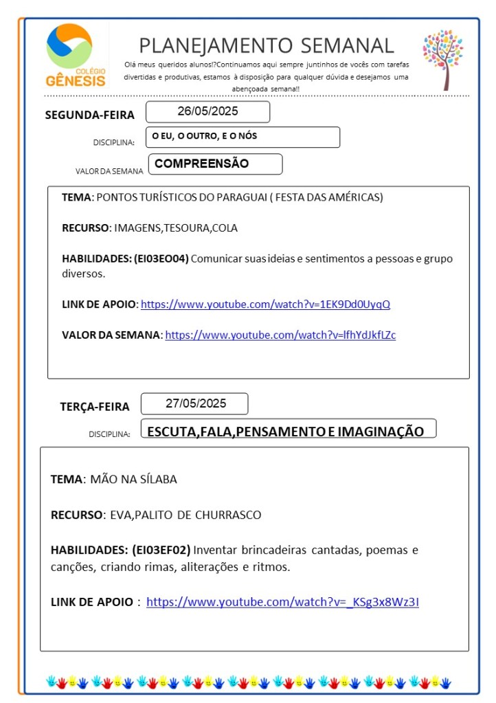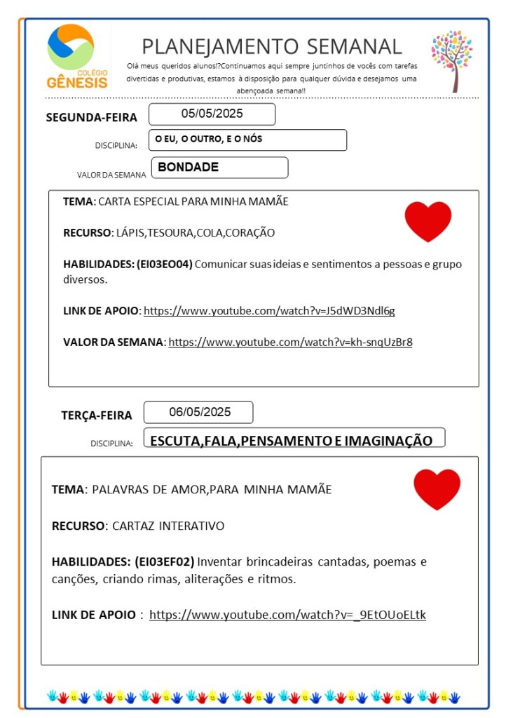 Continuamos aqui sempre juntinhos de vocês com tarefas divertidas e produtivas, estamos à disposição para qualquer dúvida e desejamos uma abençoada semana!!