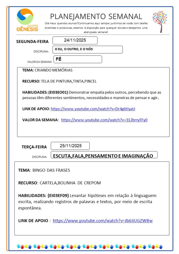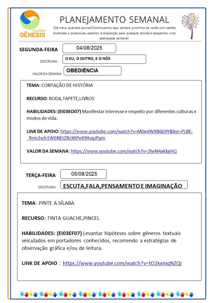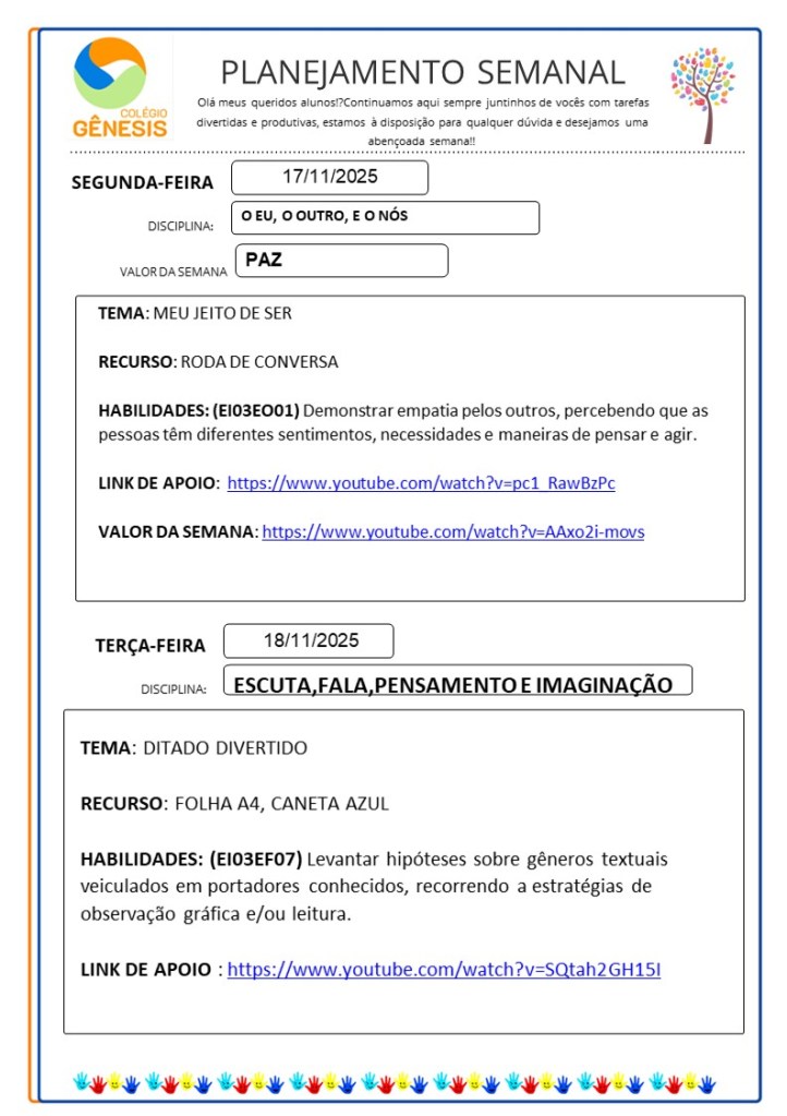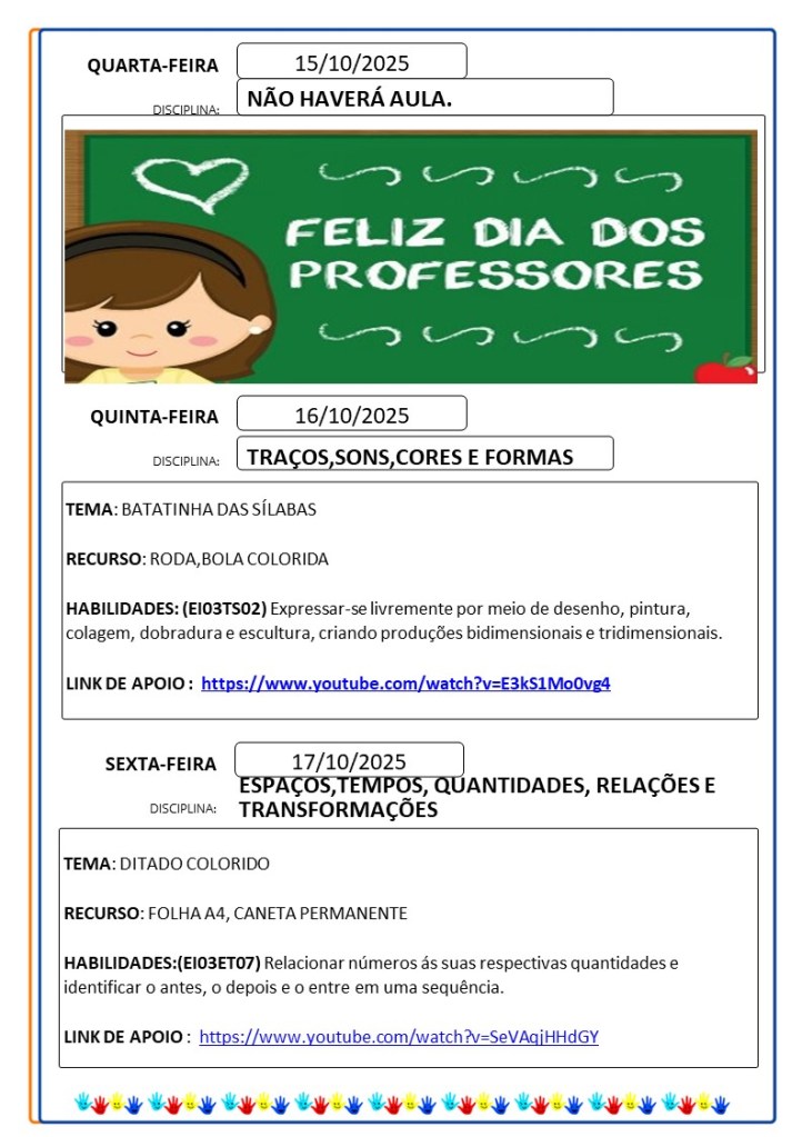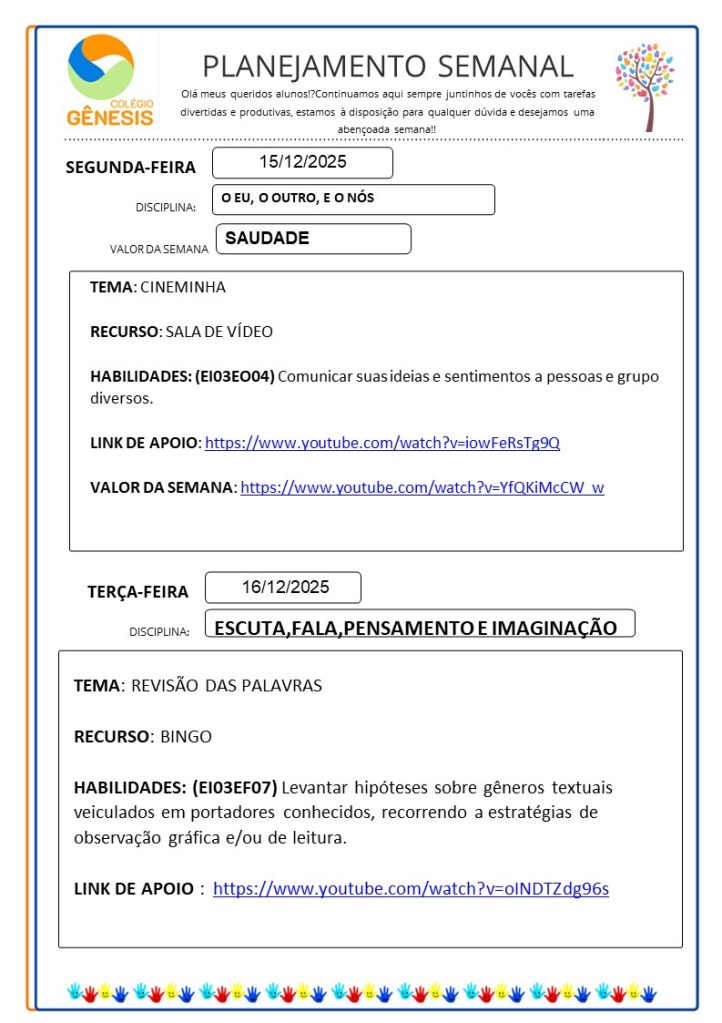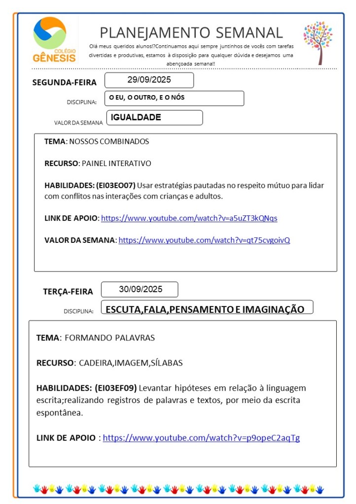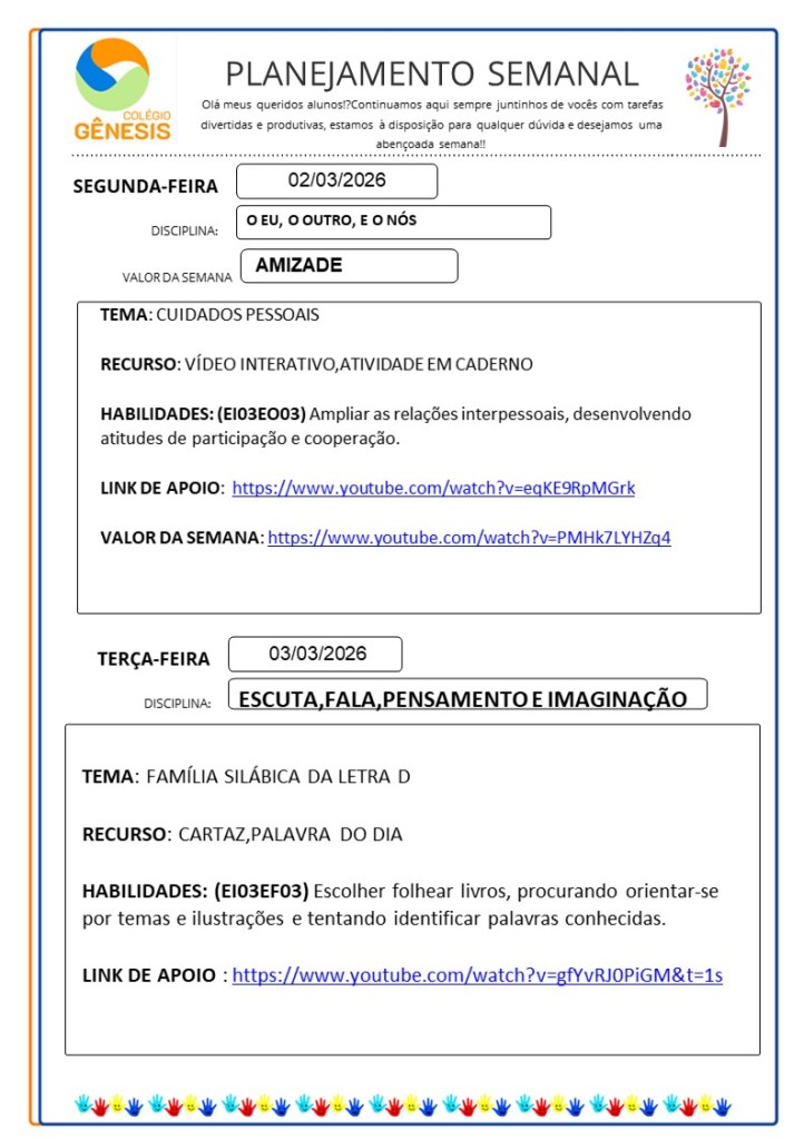 Continuamos aqui sempre juntinhos de vocês com tarefas divertidas e produtivas, estamos à disposição para qualquer dúvida e desejamos uma abençoada semana!!