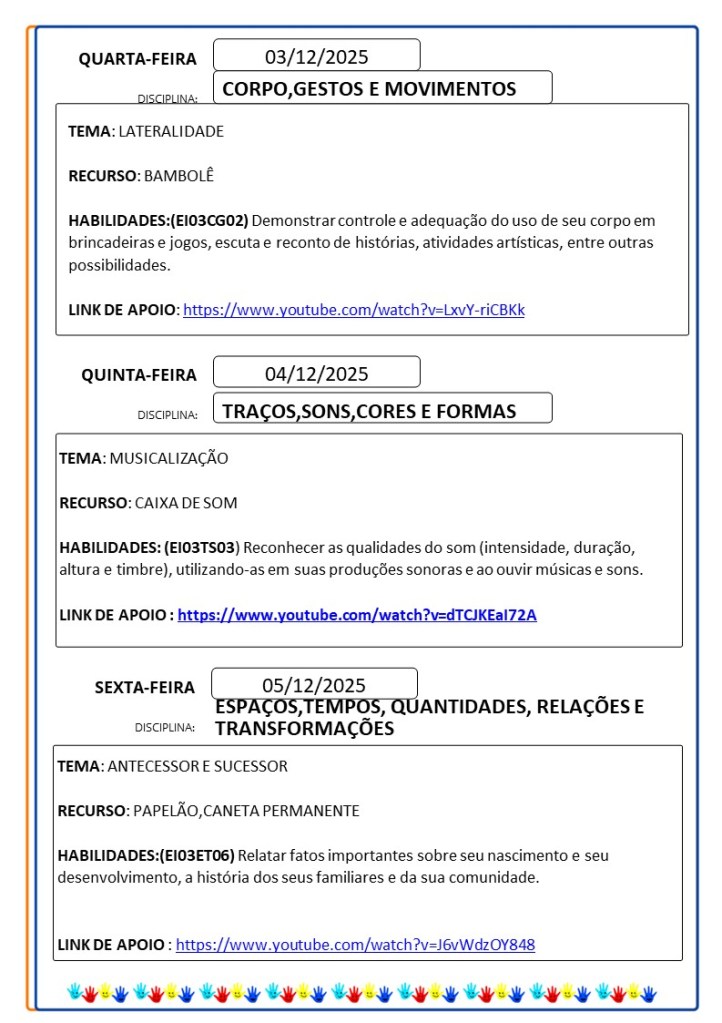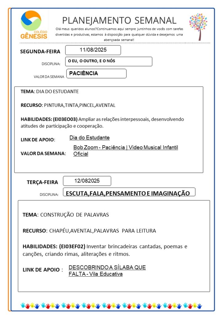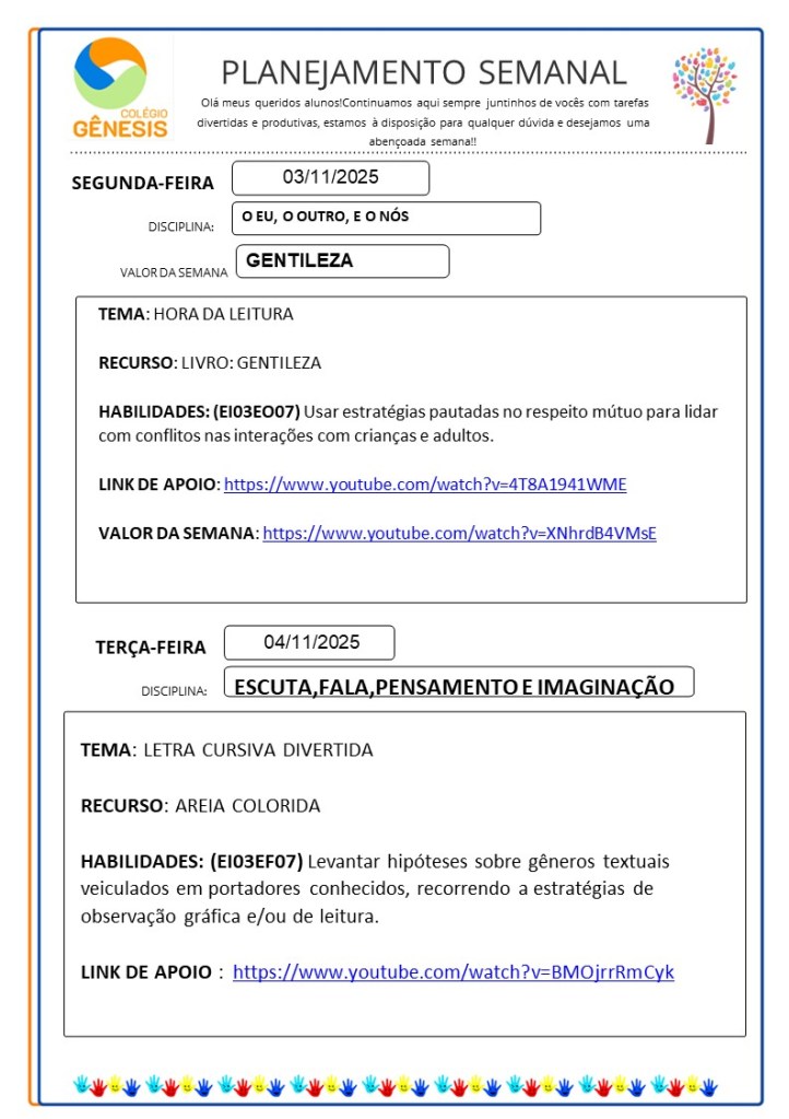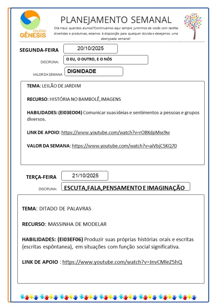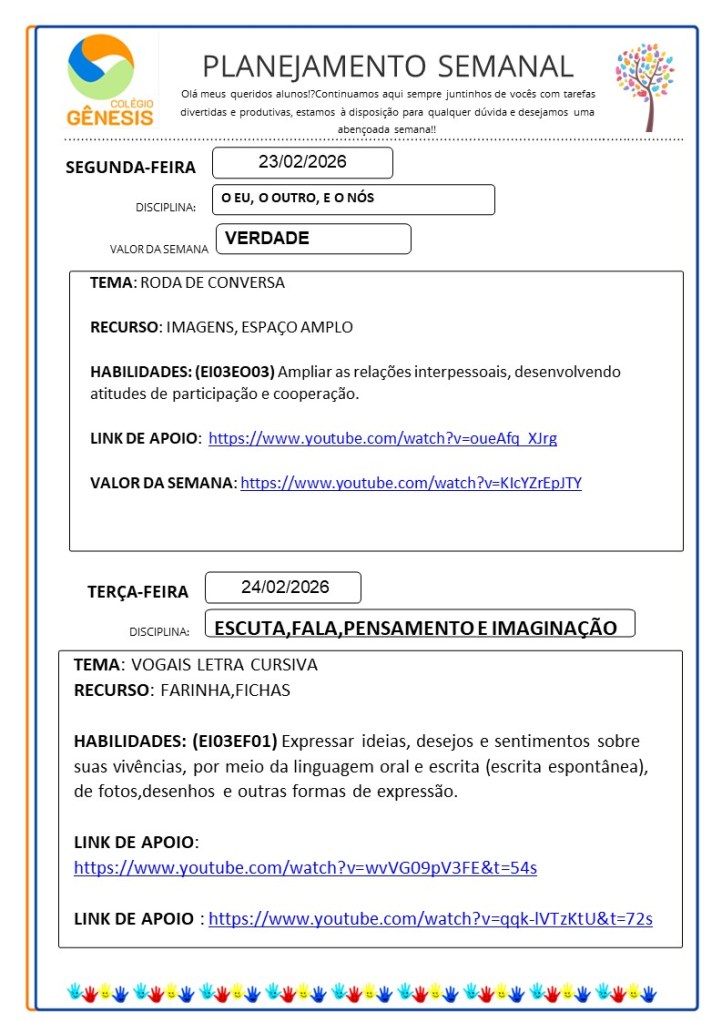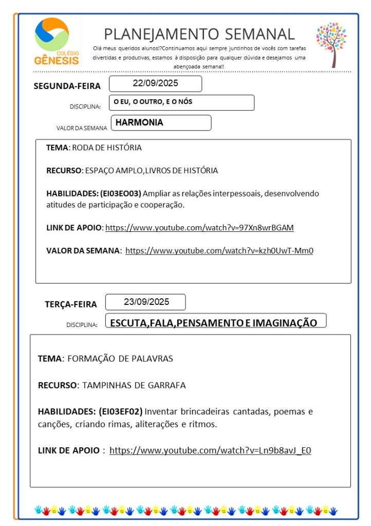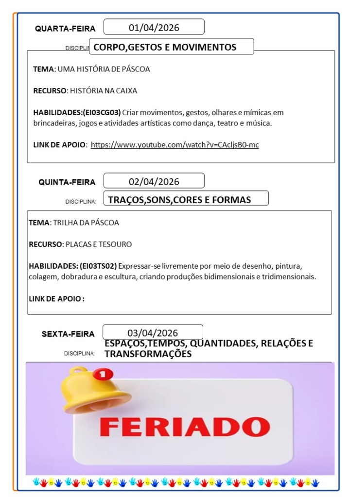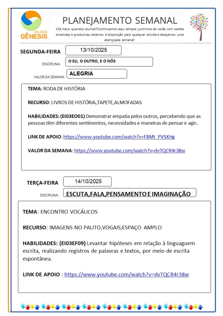 Continuamos aqui sempre juntinhos de vocês com tarefas divertidas e produtivas, estamos à disposição para qualquer dúvida e desejamos uma abençoada semana!!