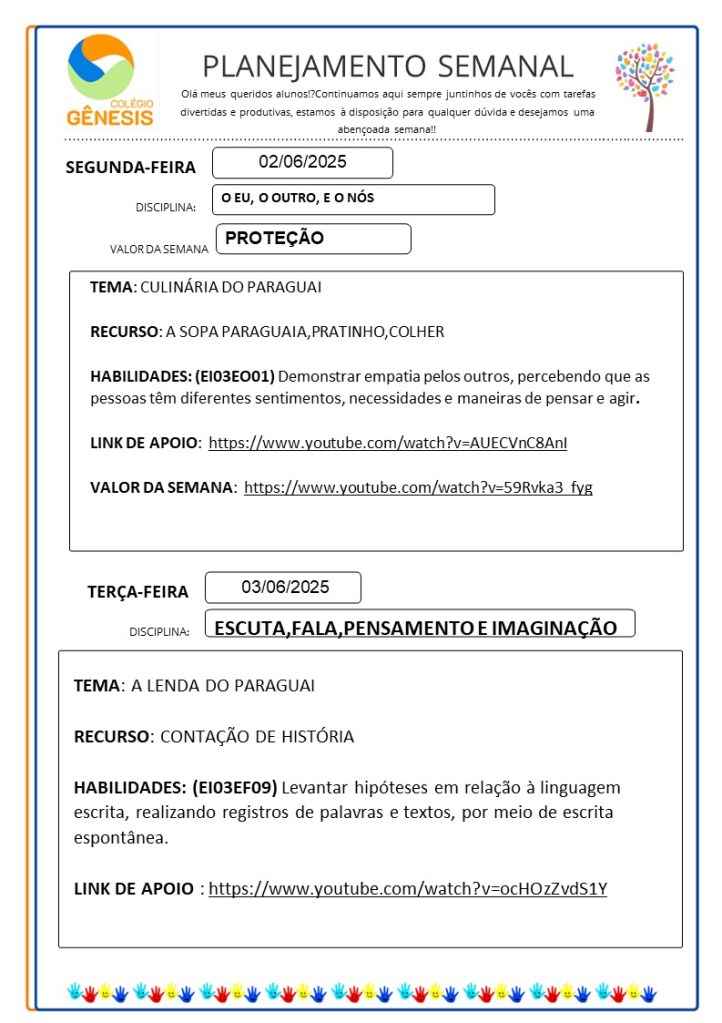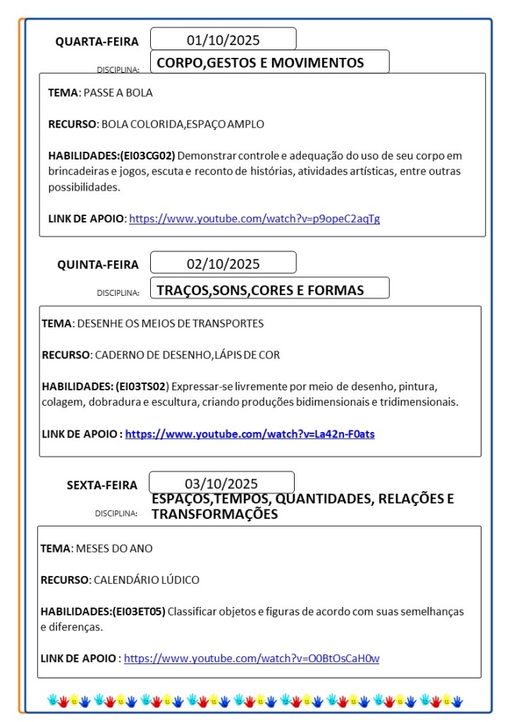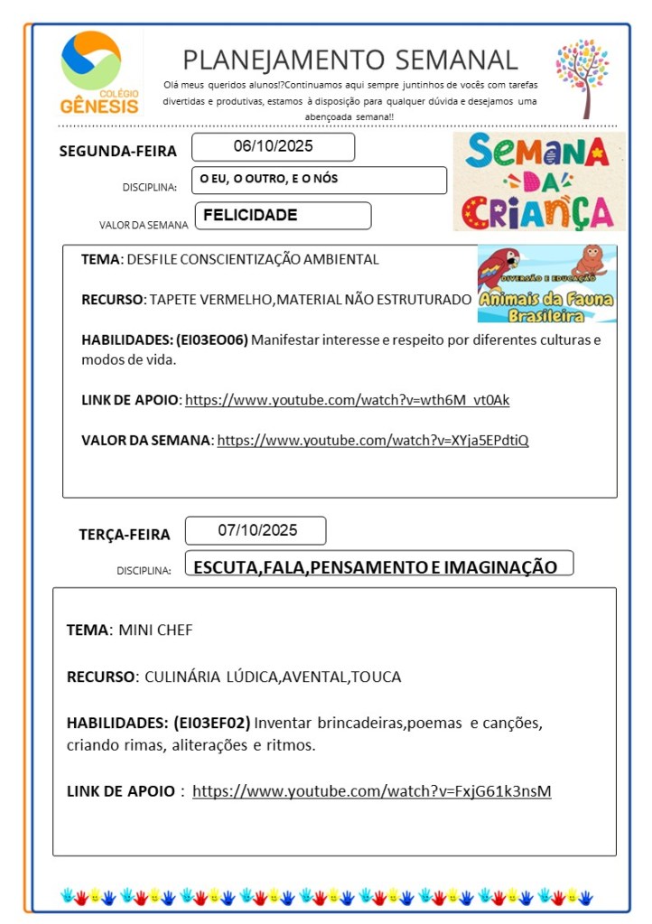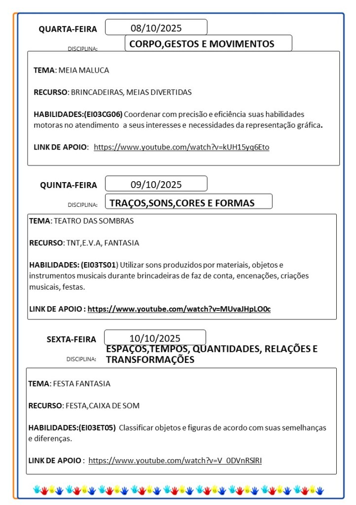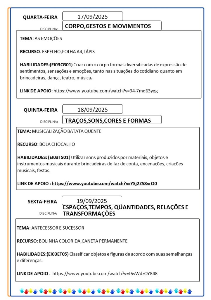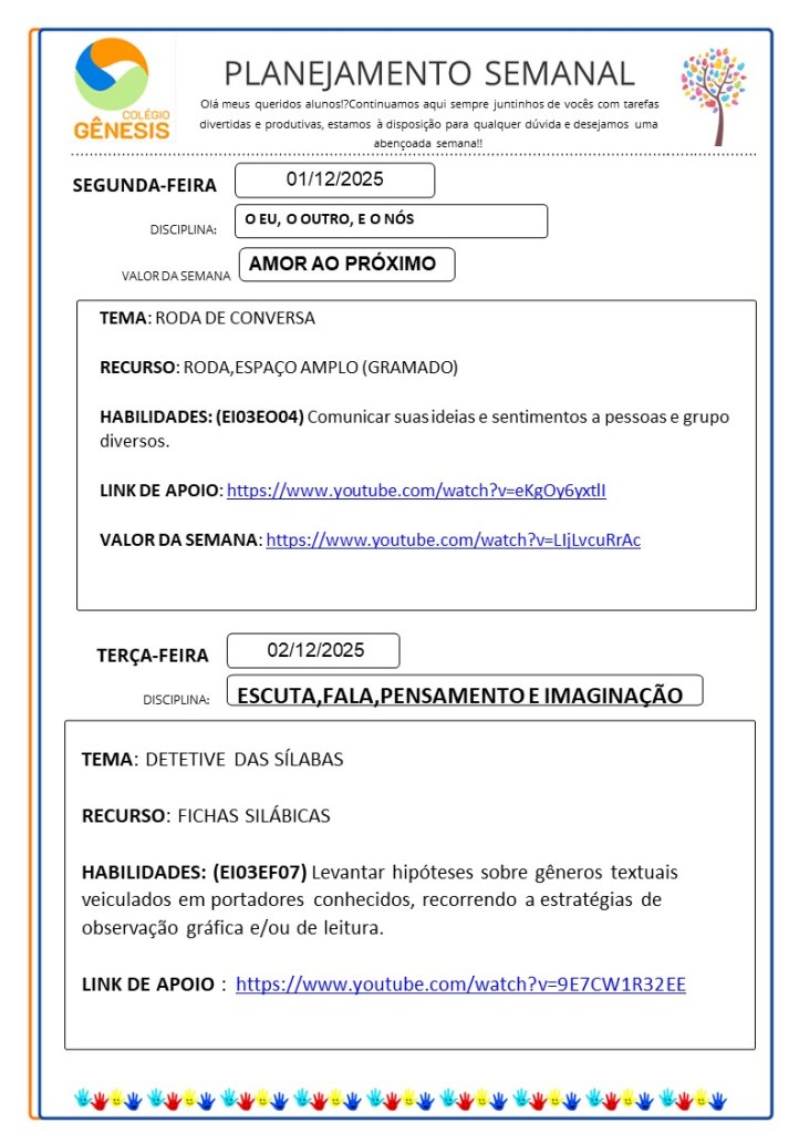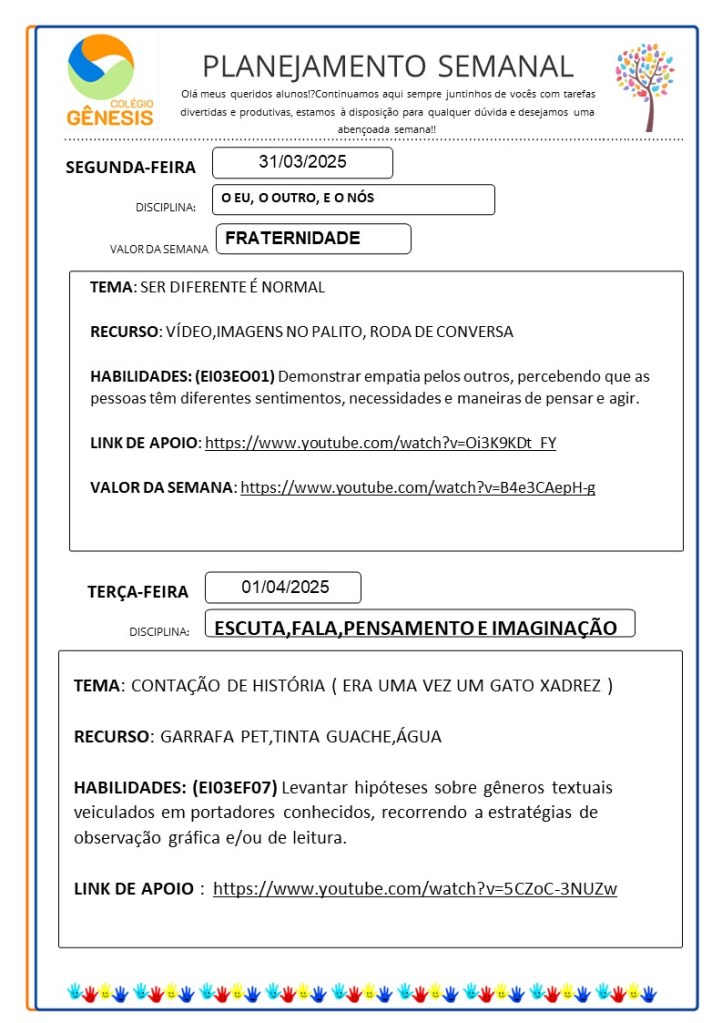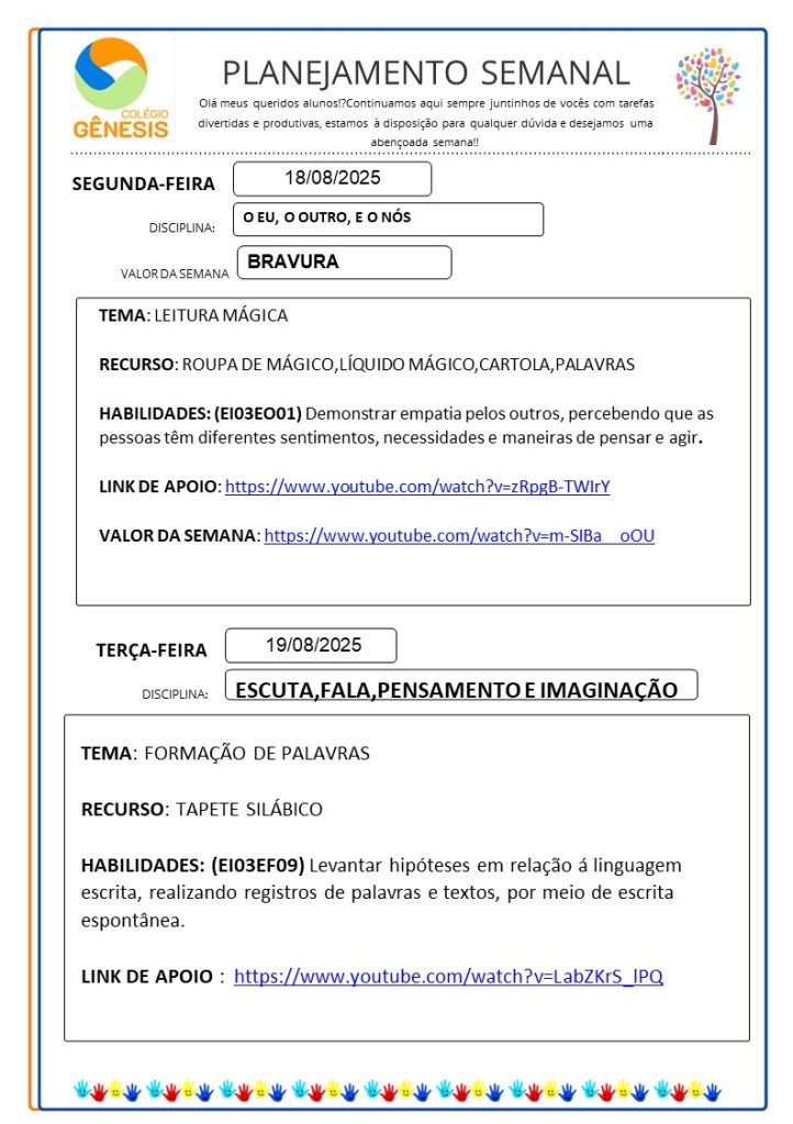 Continuamos aqui sempre juntinhos de vocês com tarefas divertidas e produtivas, estamos à disposição para qualquer dúvida e desejamos uma abençoada semana!!