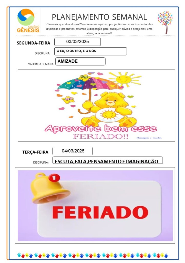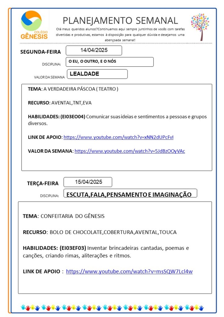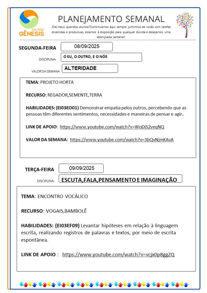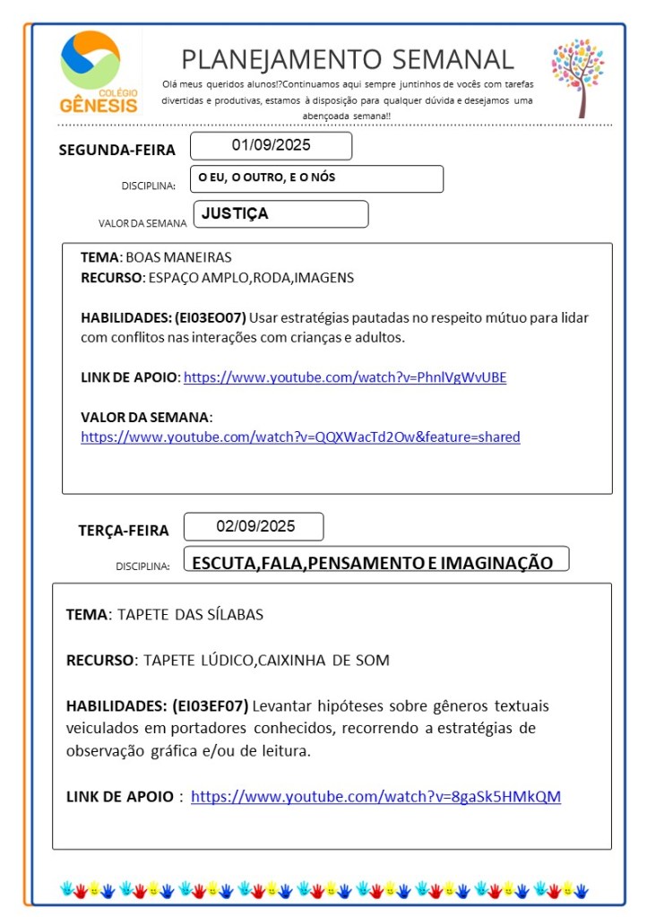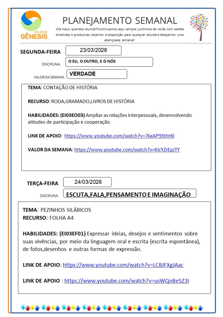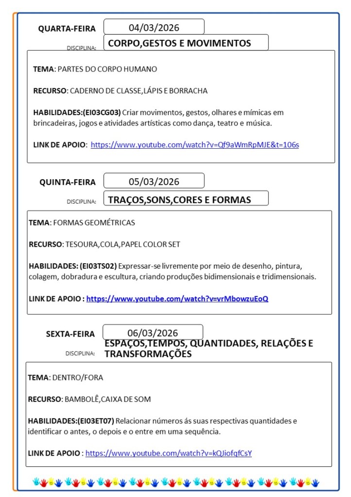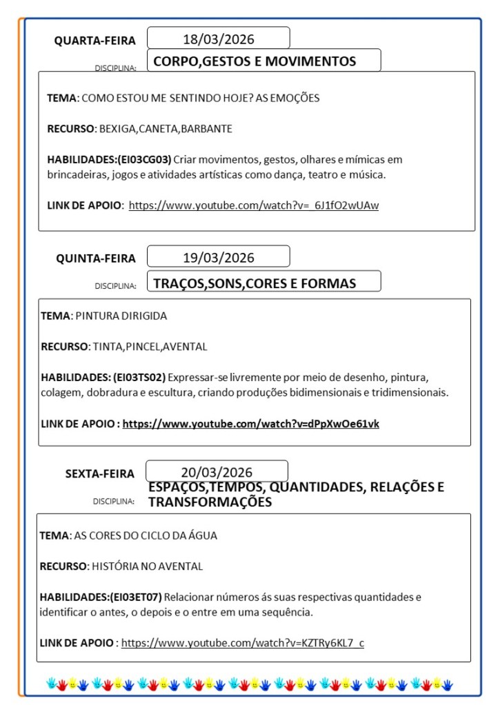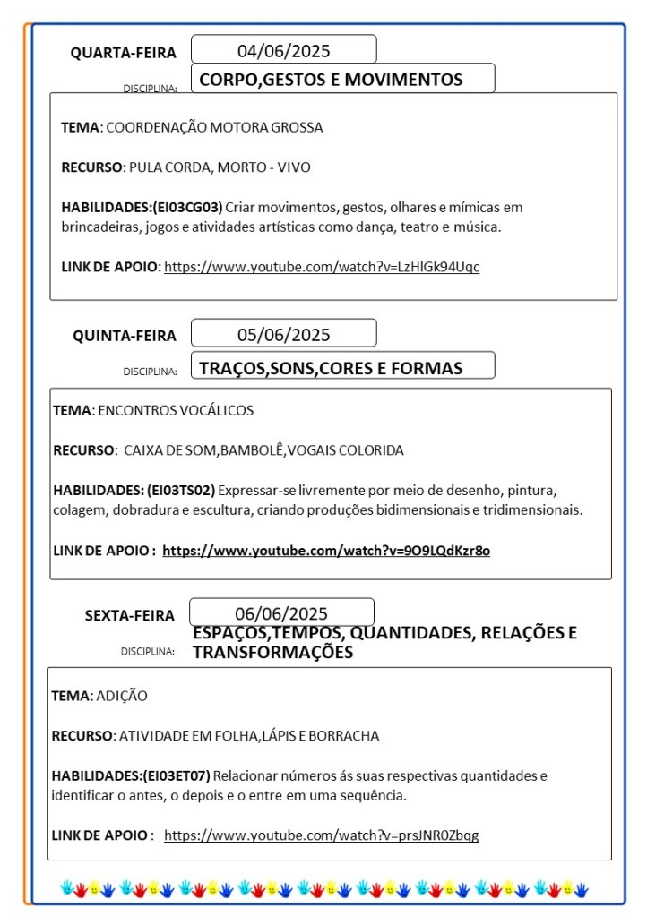 Continuamos aqui sempre juntinhos de vocês com tarefas divertidas e produtivas, estamos à disposição para qualquer dúvida e desejamos uma abençoada semana!!