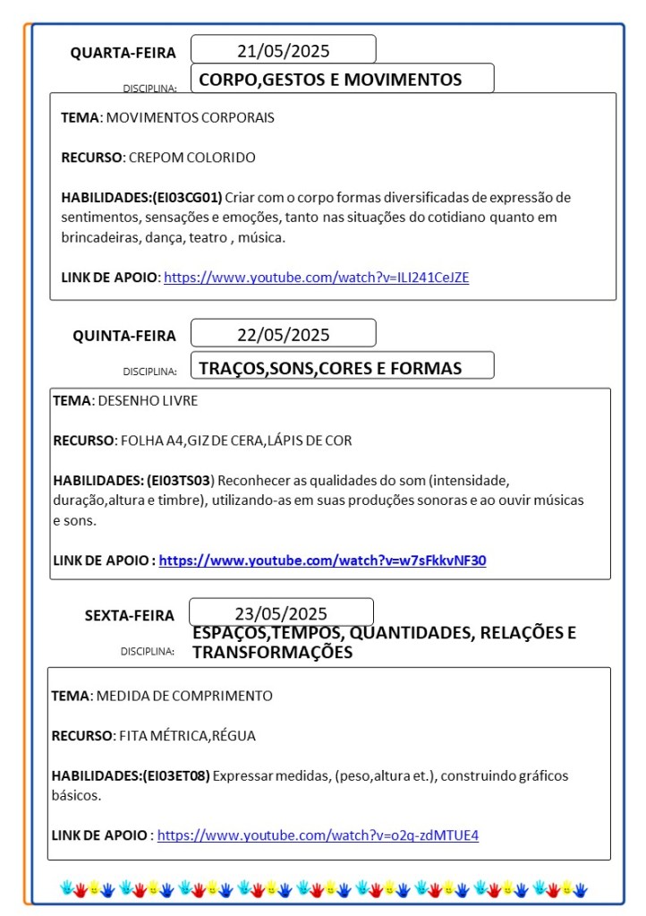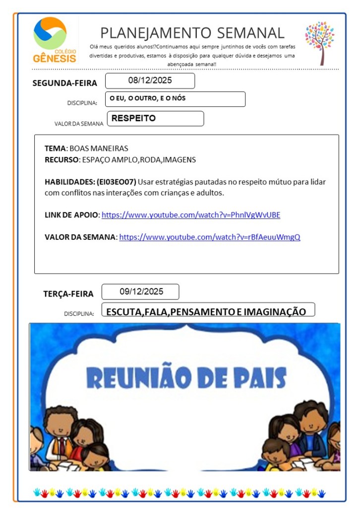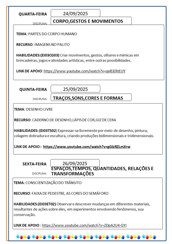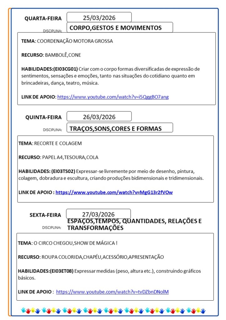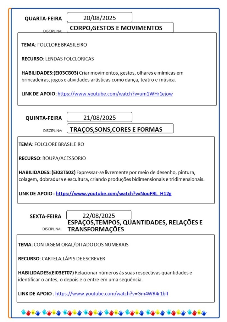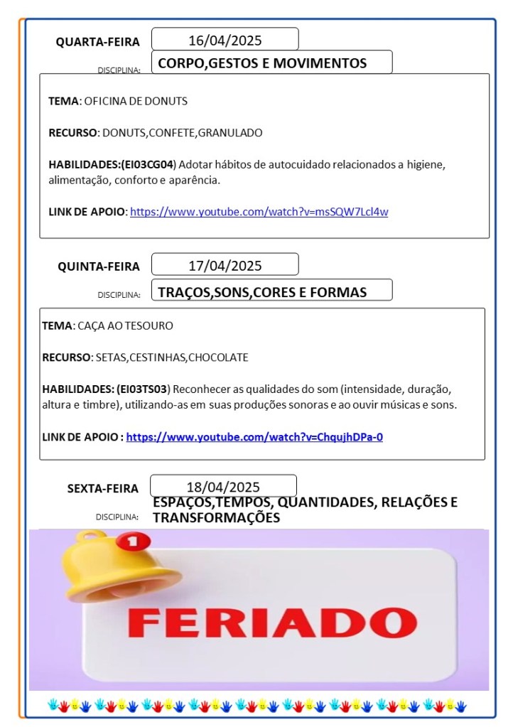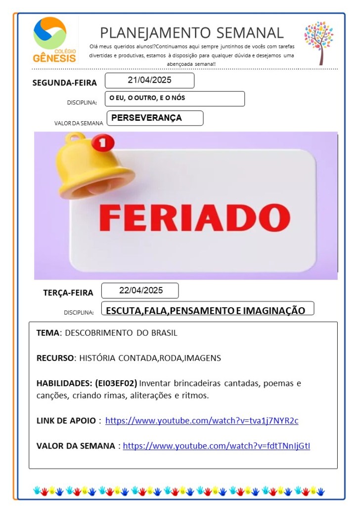 Continuamos aqui sempre juntinhos de vocês com tarefas divertidas e produtivas, estamos à disposição para qualquer dúvida e desejamos uma abençoada semana!!