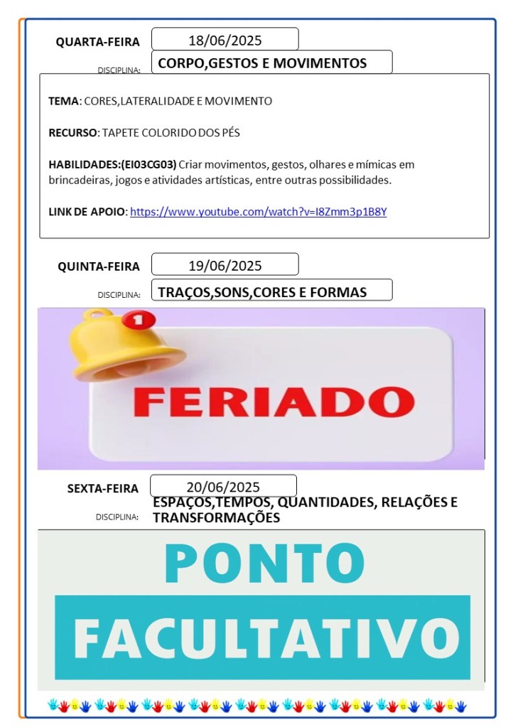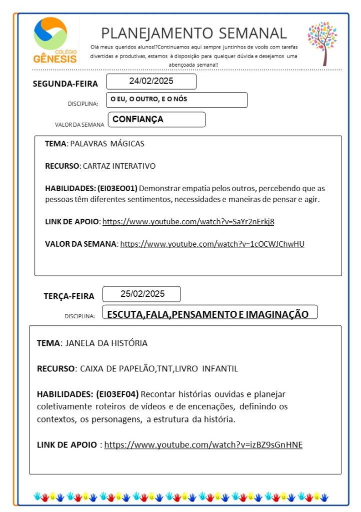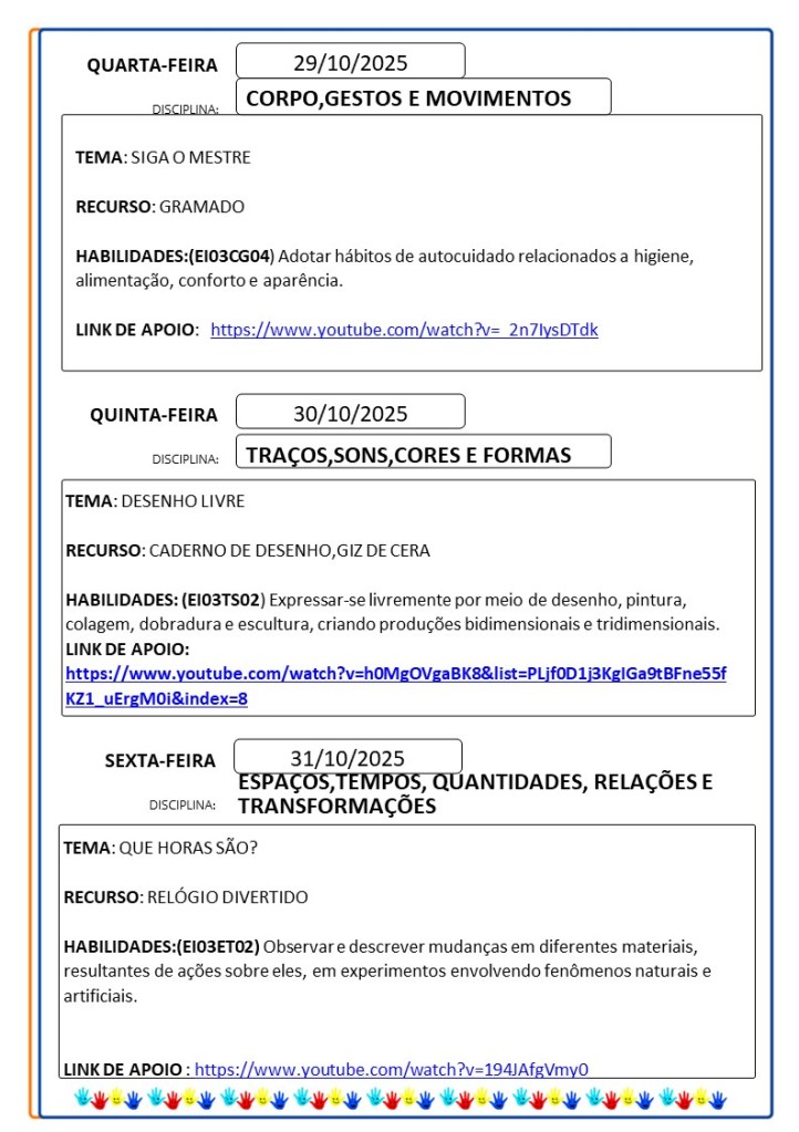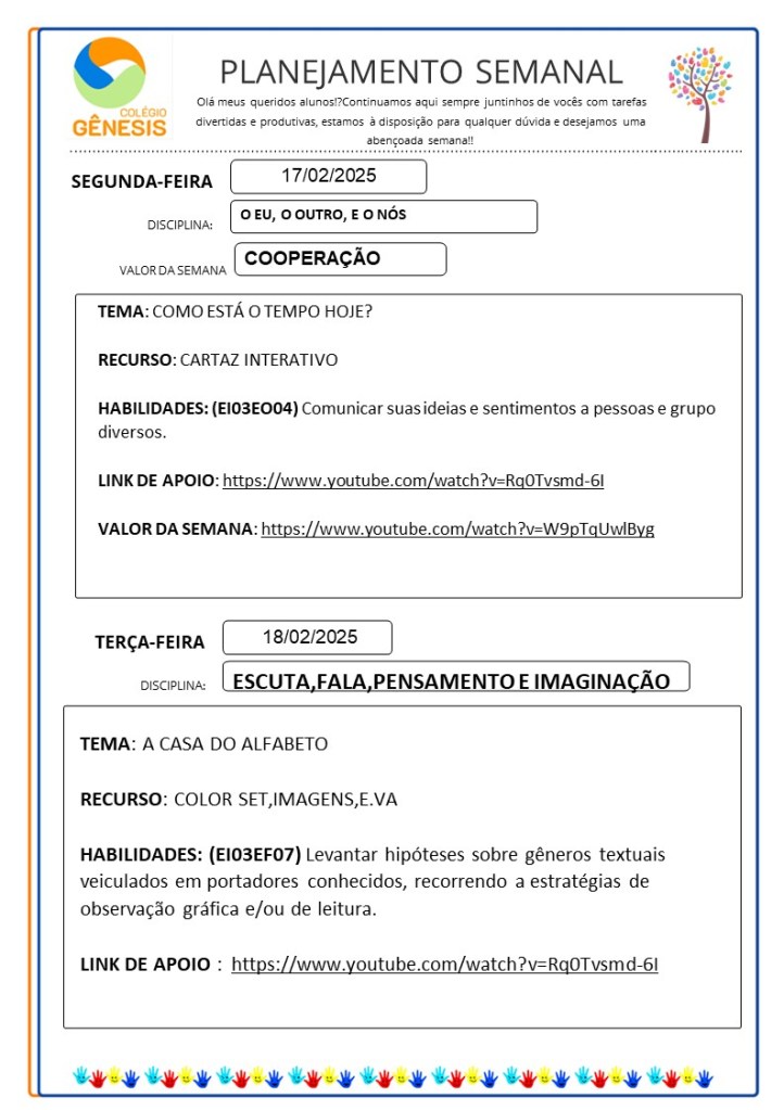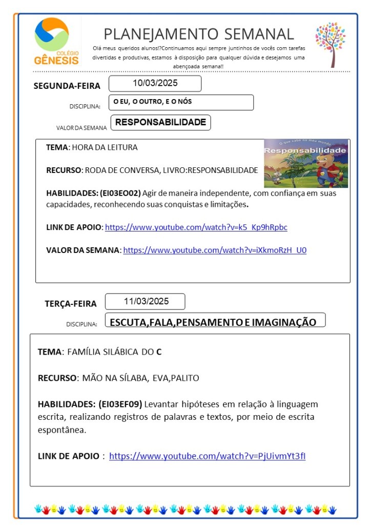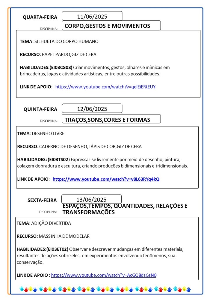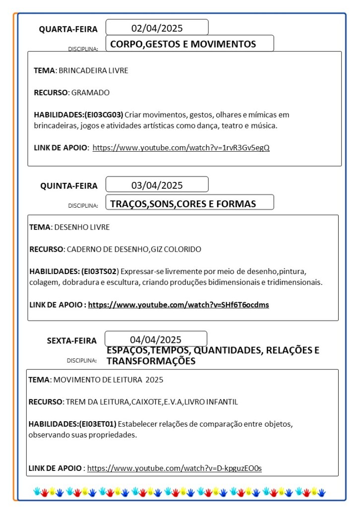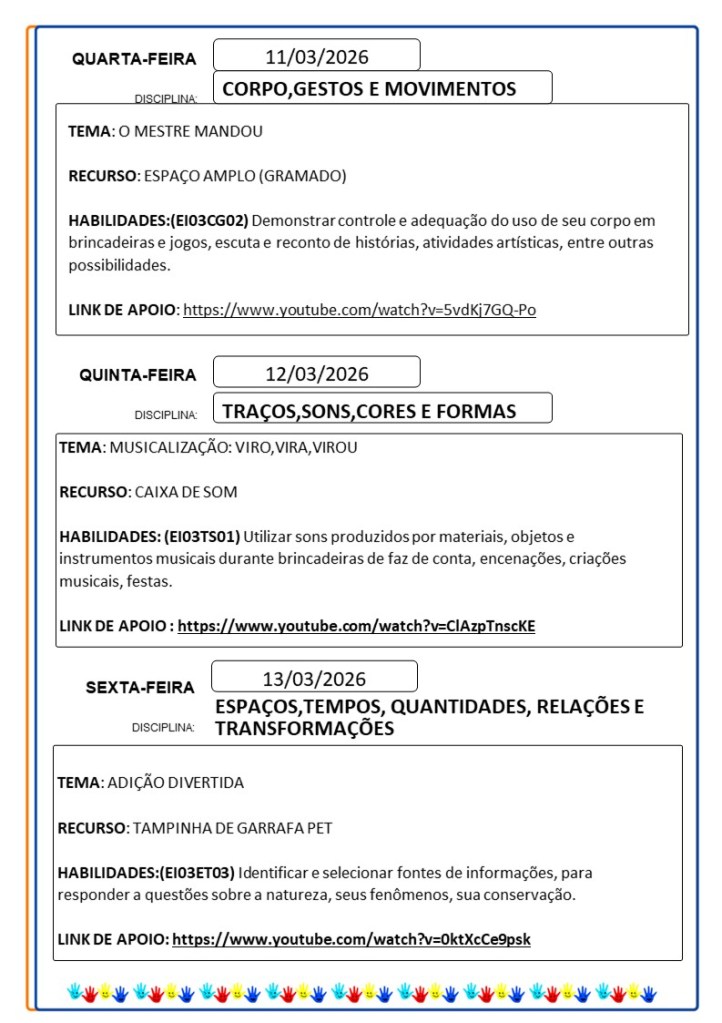 Continuamos aqui sempre juntinhos de vocês com tarefas divertidas e produtivas, estamos à disposição para qualquer dúvida e desejamos uma abençoada semana!!