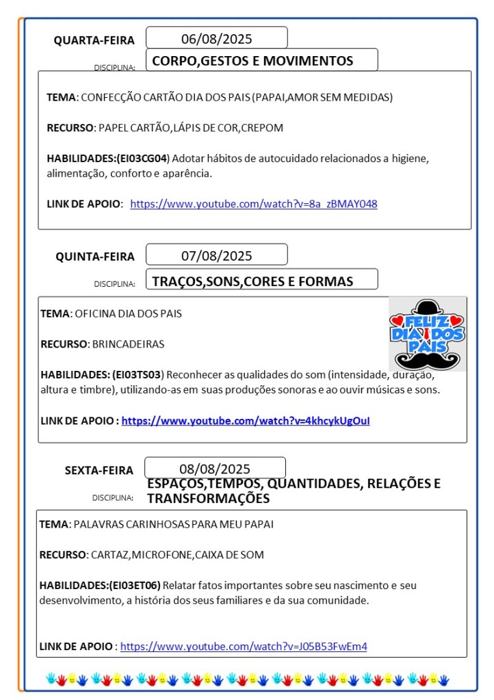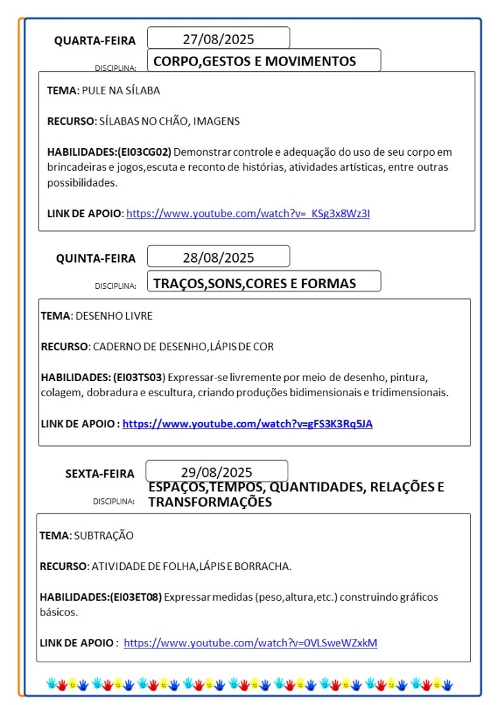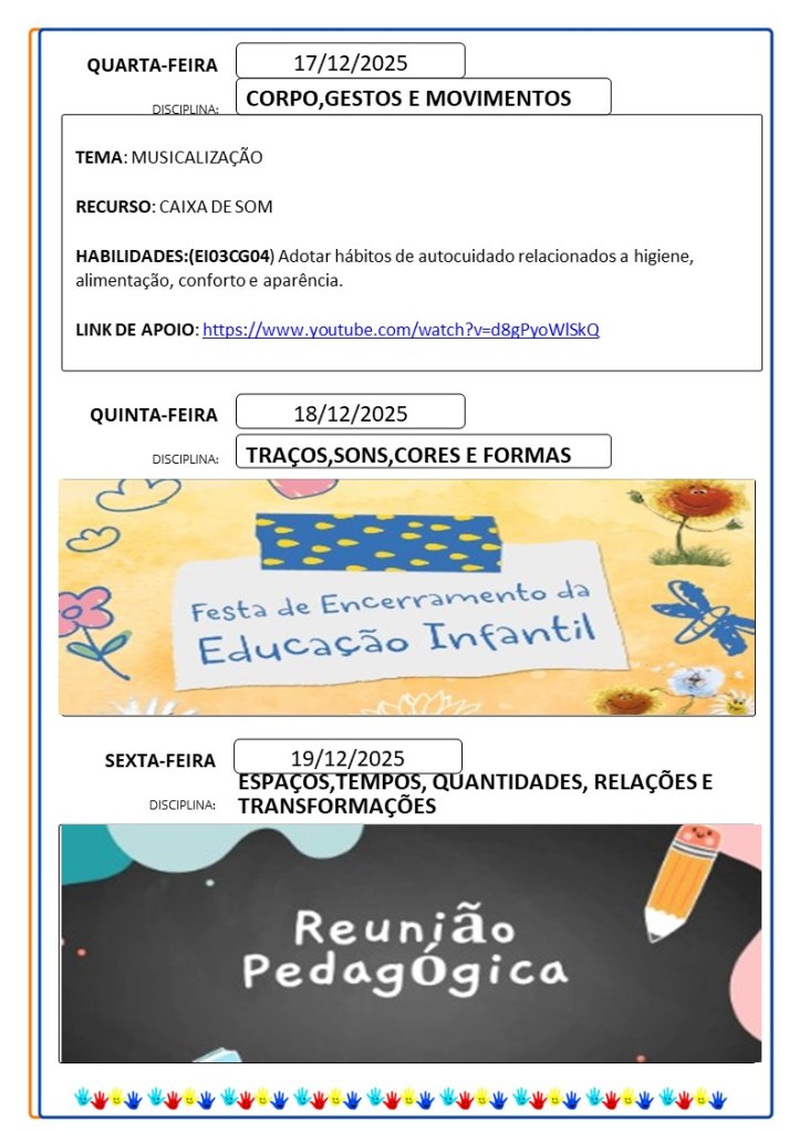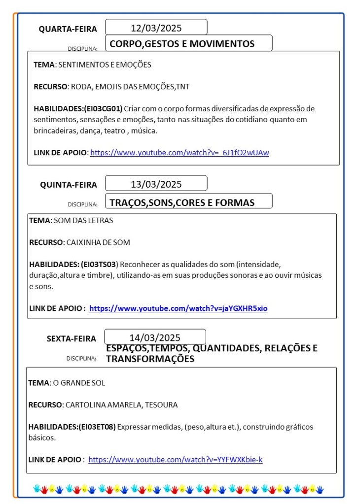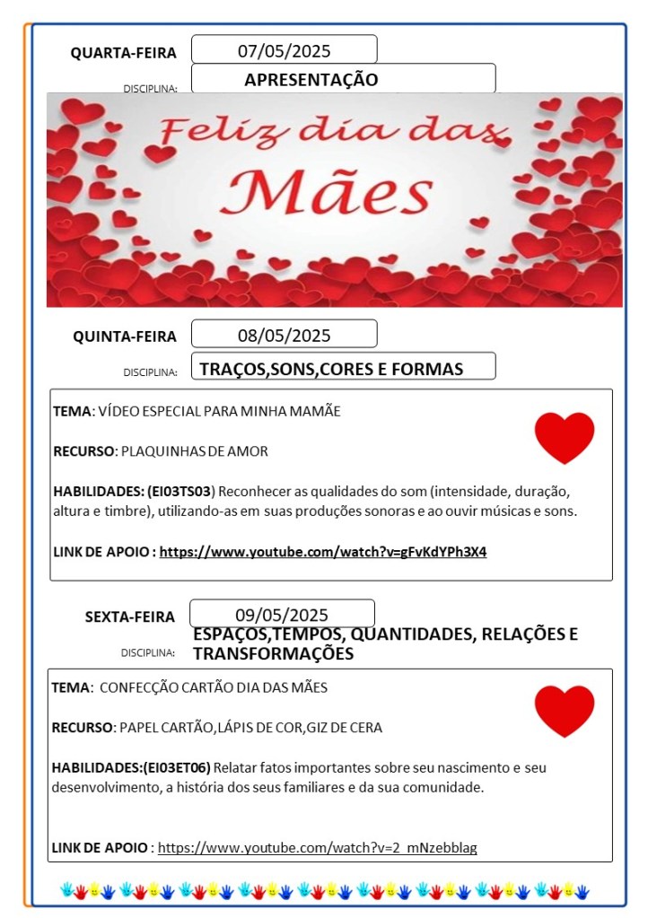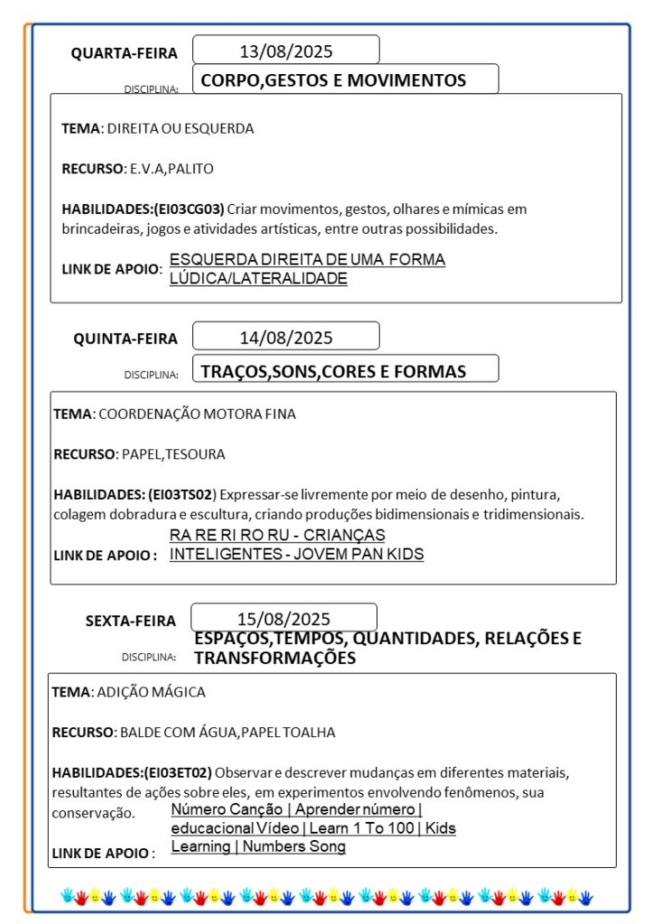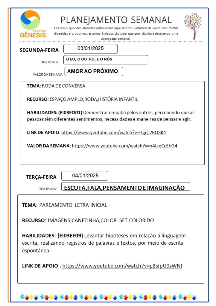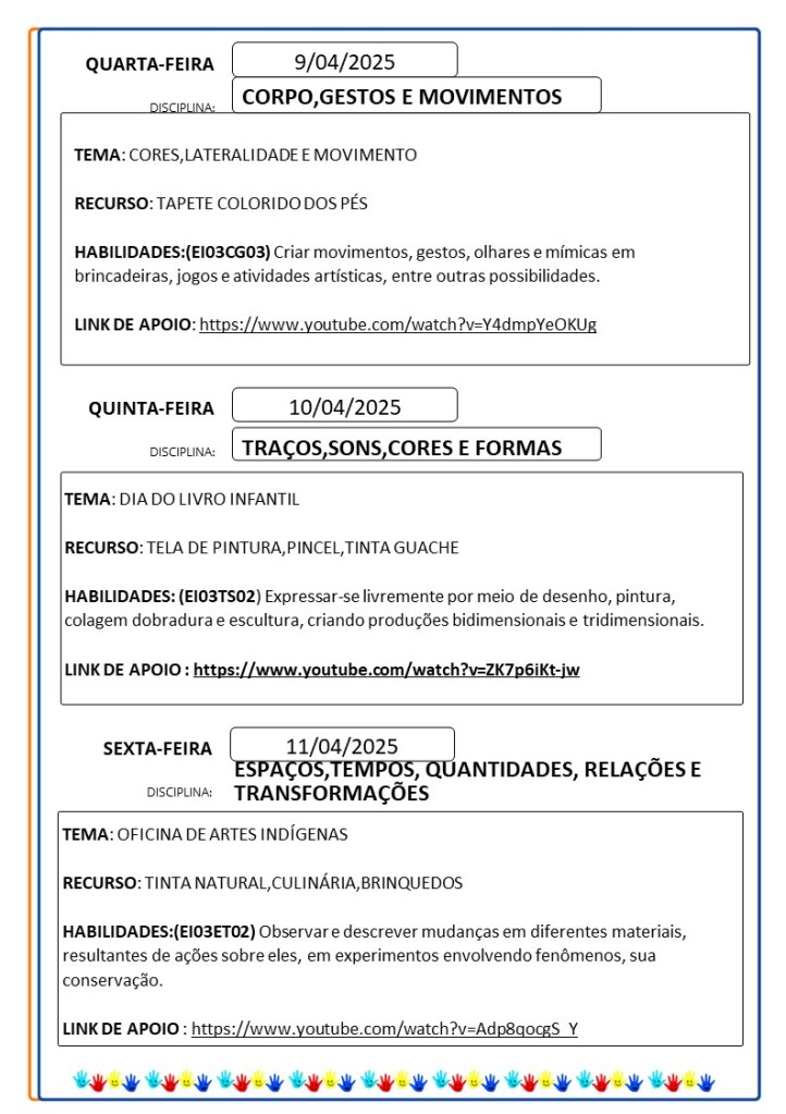 Continuamos aqui sempre juntinhos de vocês com tarefas divertidas e produtivas, estamos à disposição para qualquer dúvida e desejamos uma abençoada semana!!