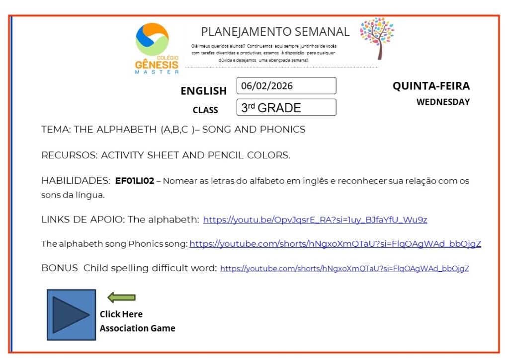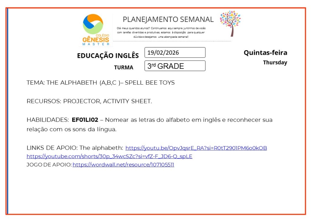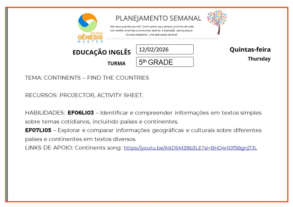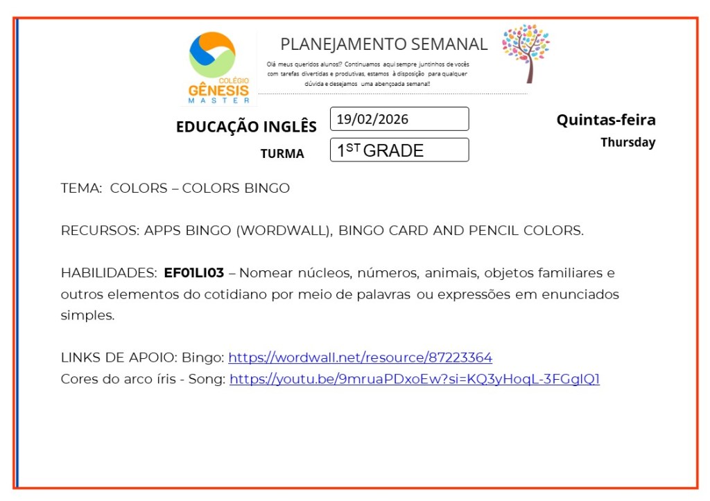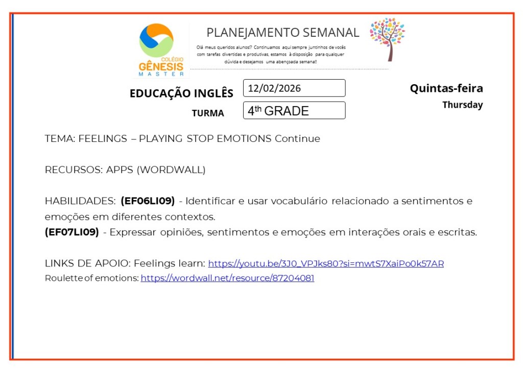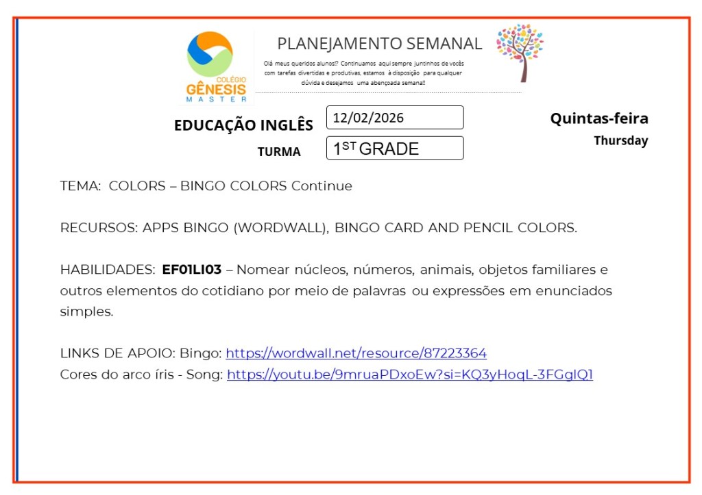 Continuamos aqui sempre juntinhos de vocês com tarefas divertidas e produtivas, estamos à disposição para qualquer dúvida e desejamos uma abençoada semana!!