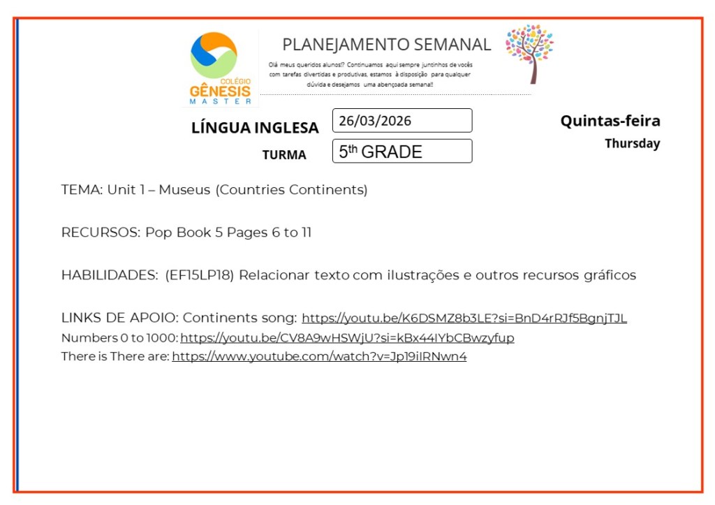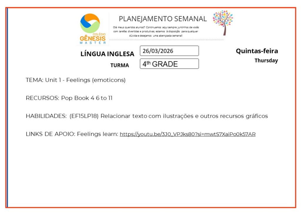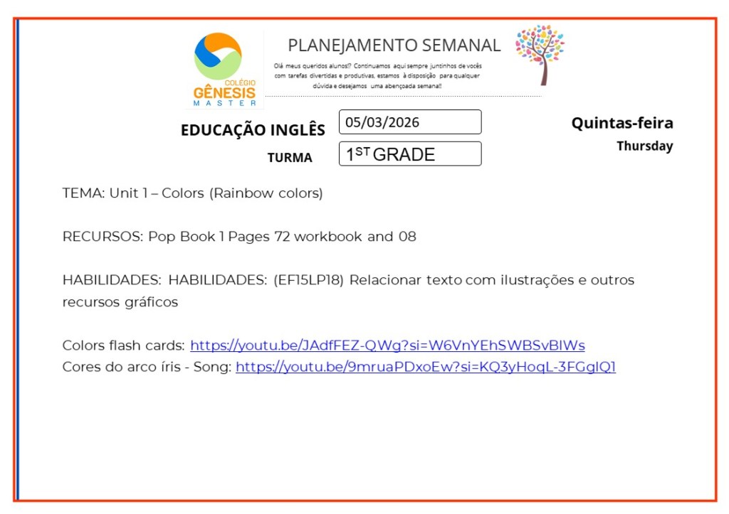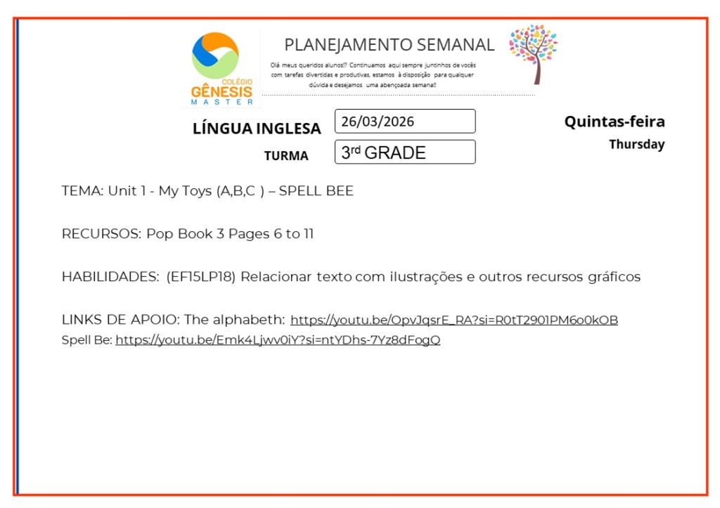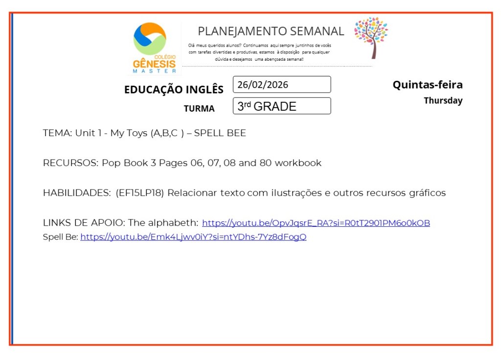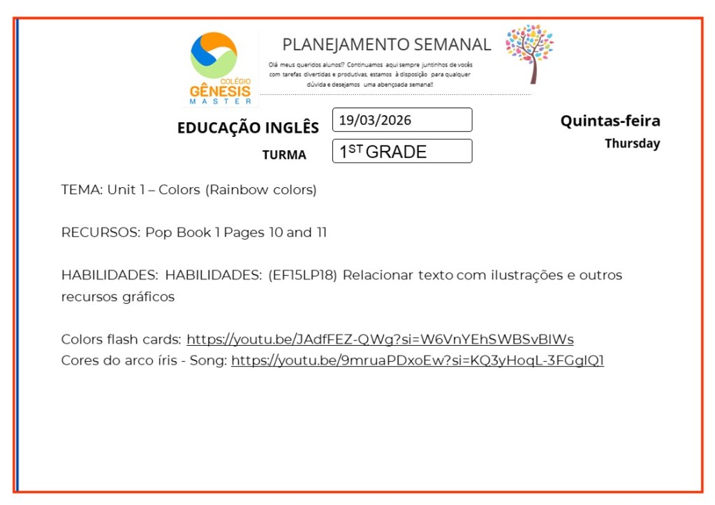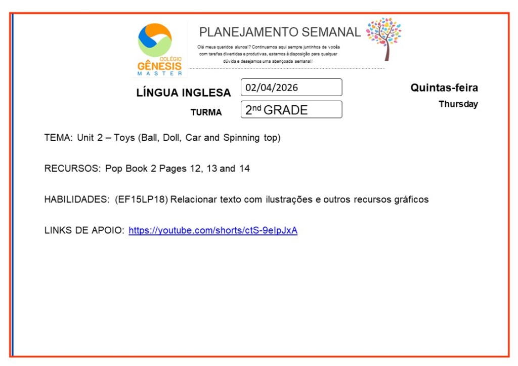 Continuamos aqui sempre juntinhos de vocês com tarefas divertidas e produtivas, estamos à disposição para qualquer dúvida e desejamos uma abençoada semana!!