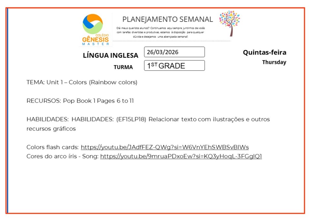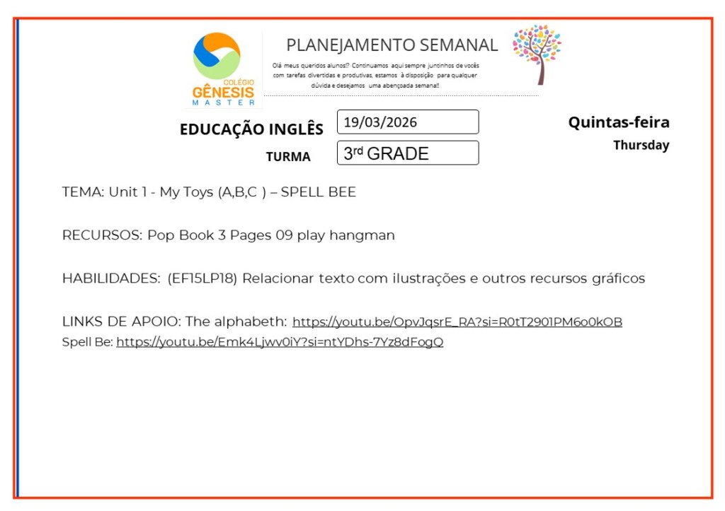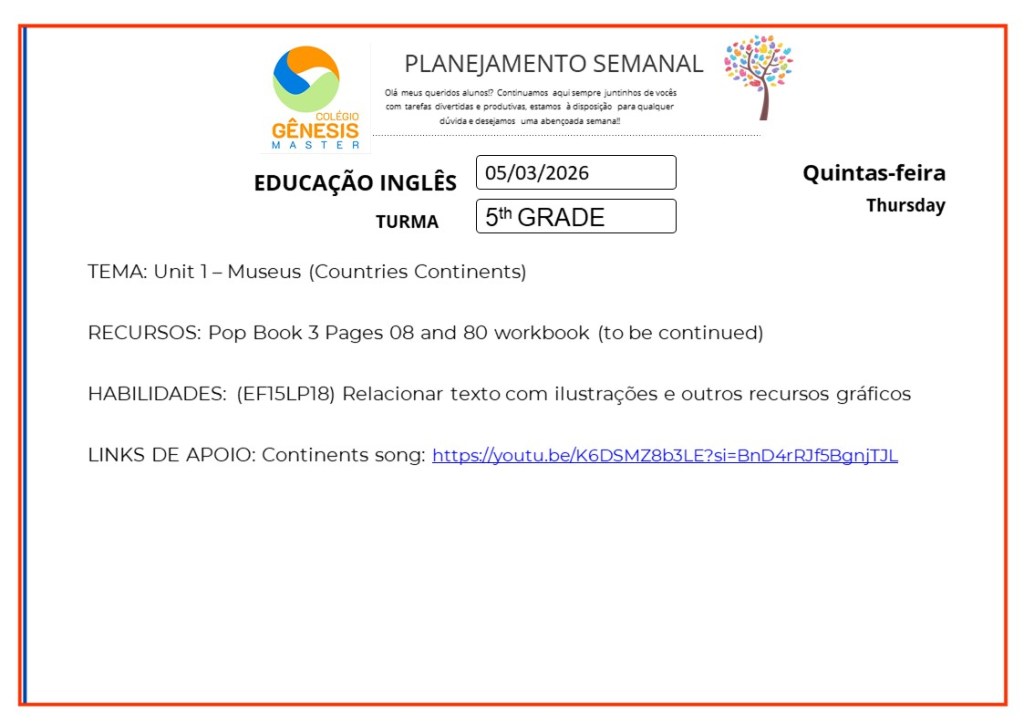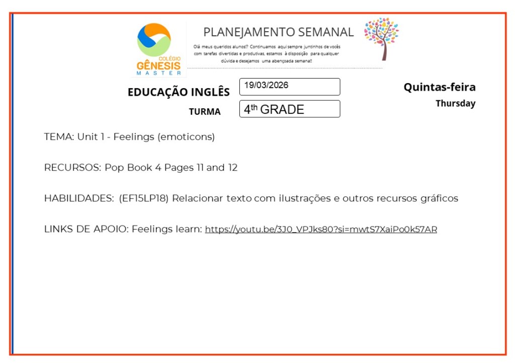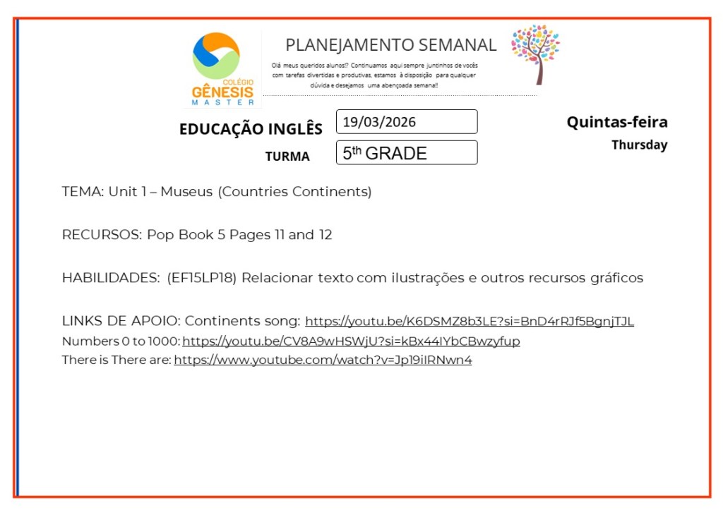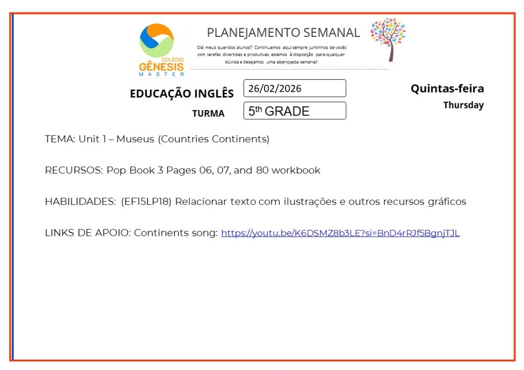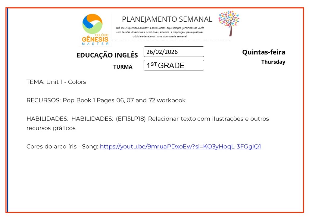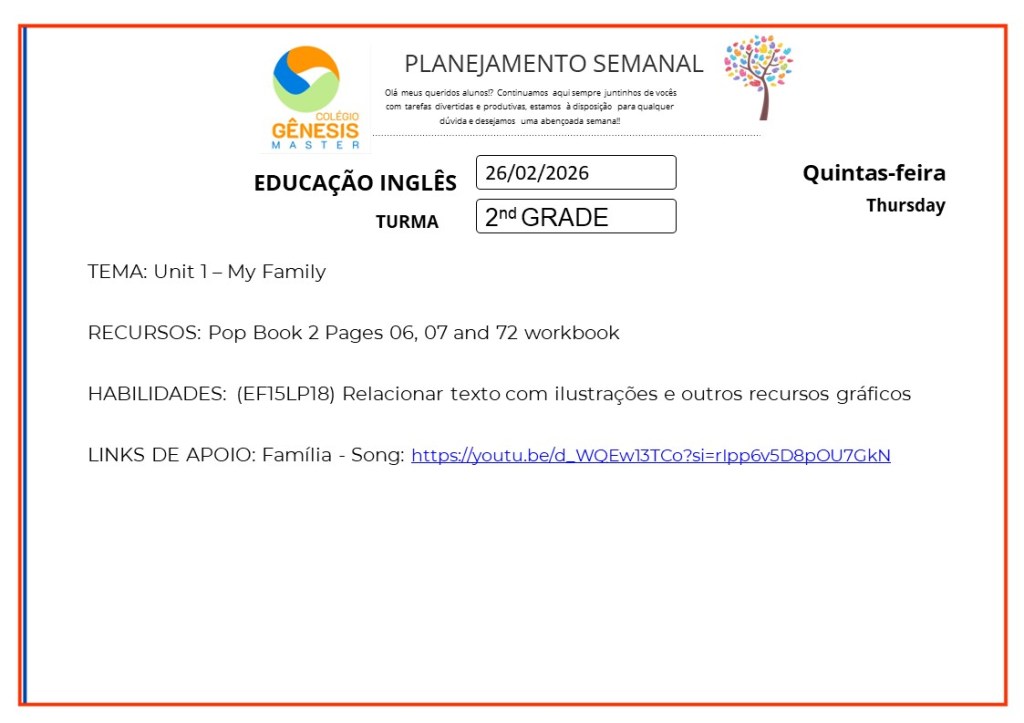 Continuamos aqui sempre juntinhos de vocês com tarefas divertidas e produtivas, estamos à disposição para qualquer dúvida e desejamos uma abençoada semana!!