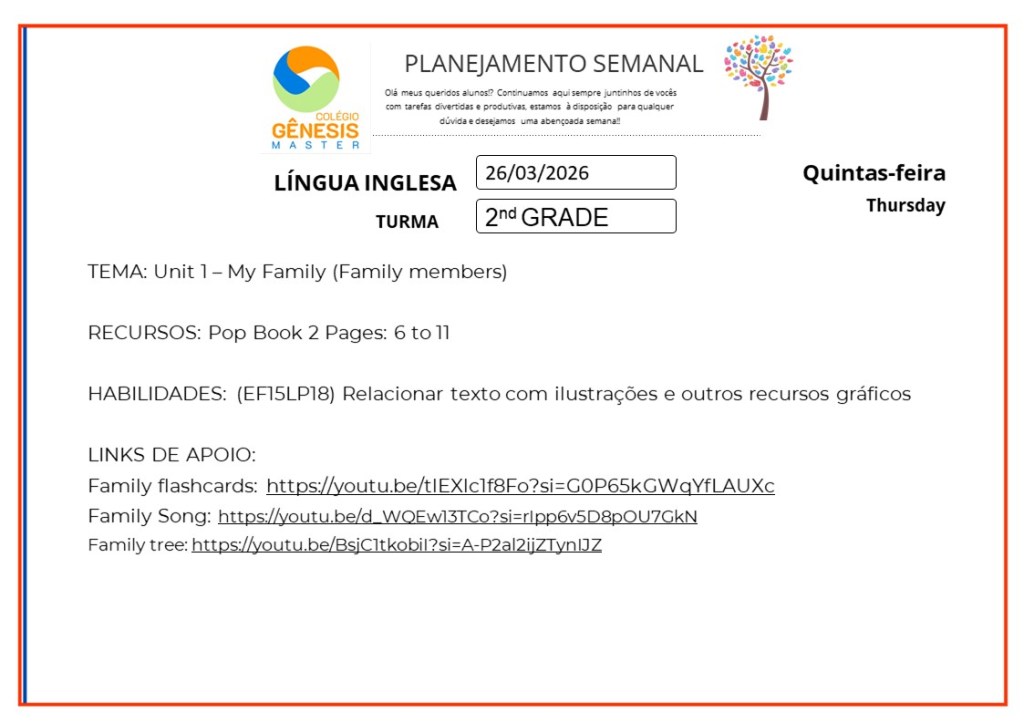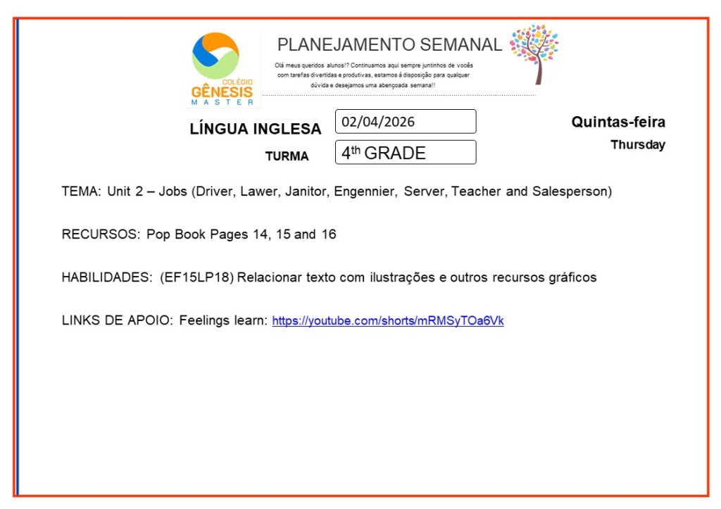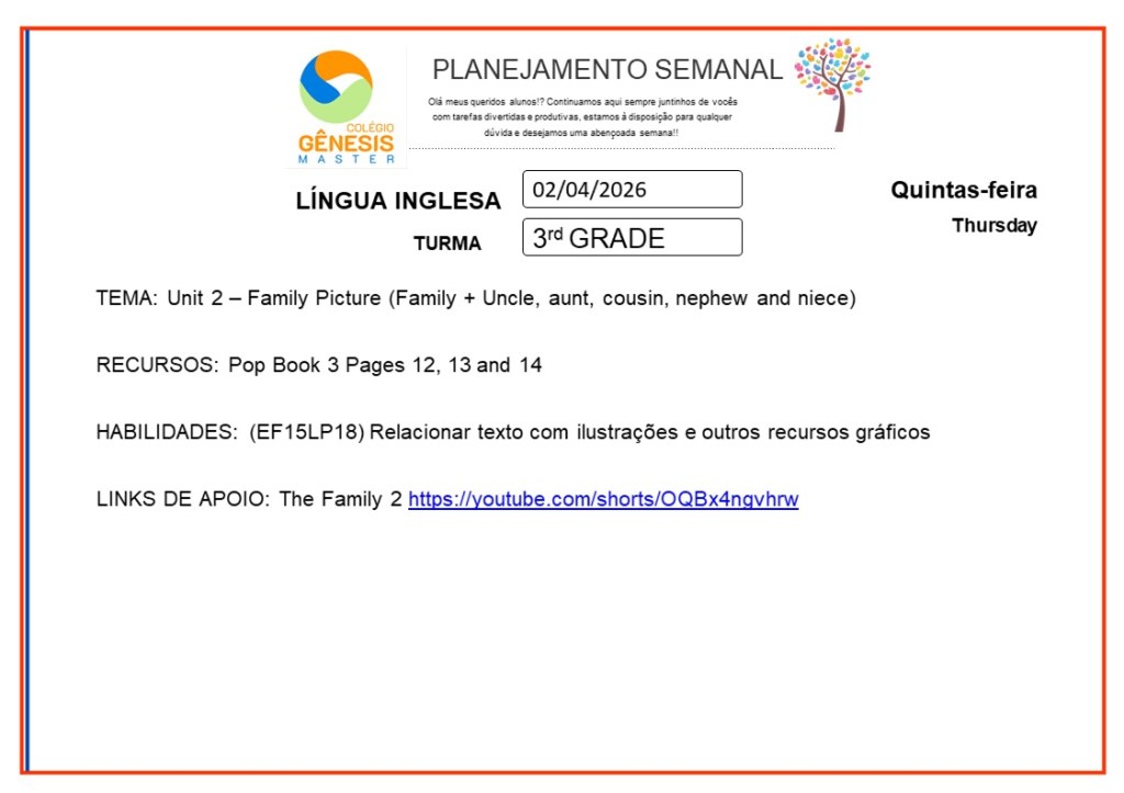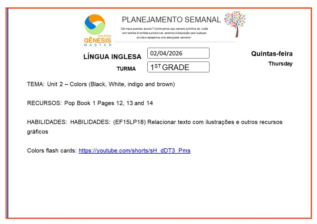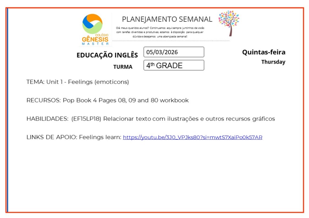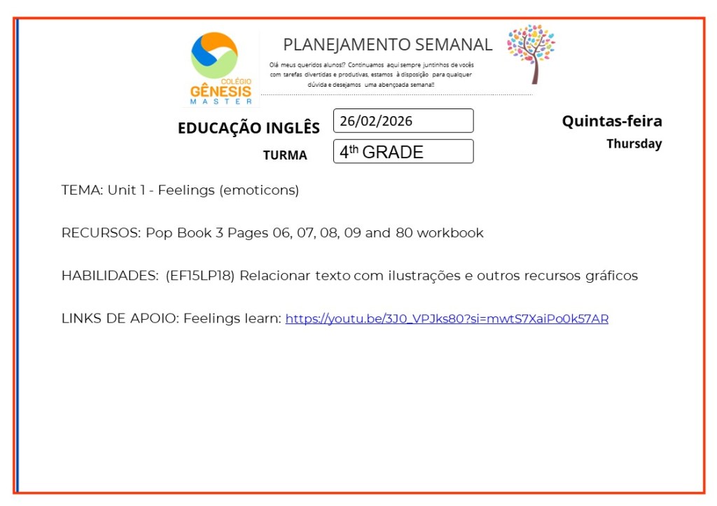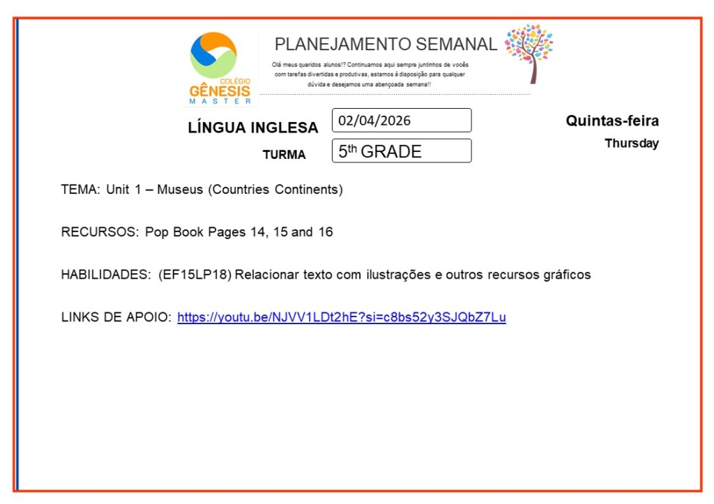 Continuamos aqui sempre juntinhos de vocês com tarefas divertidas e produtivas, estamos à disposição para qualquer dúvida e desejamos uma abençoada semana!!